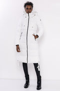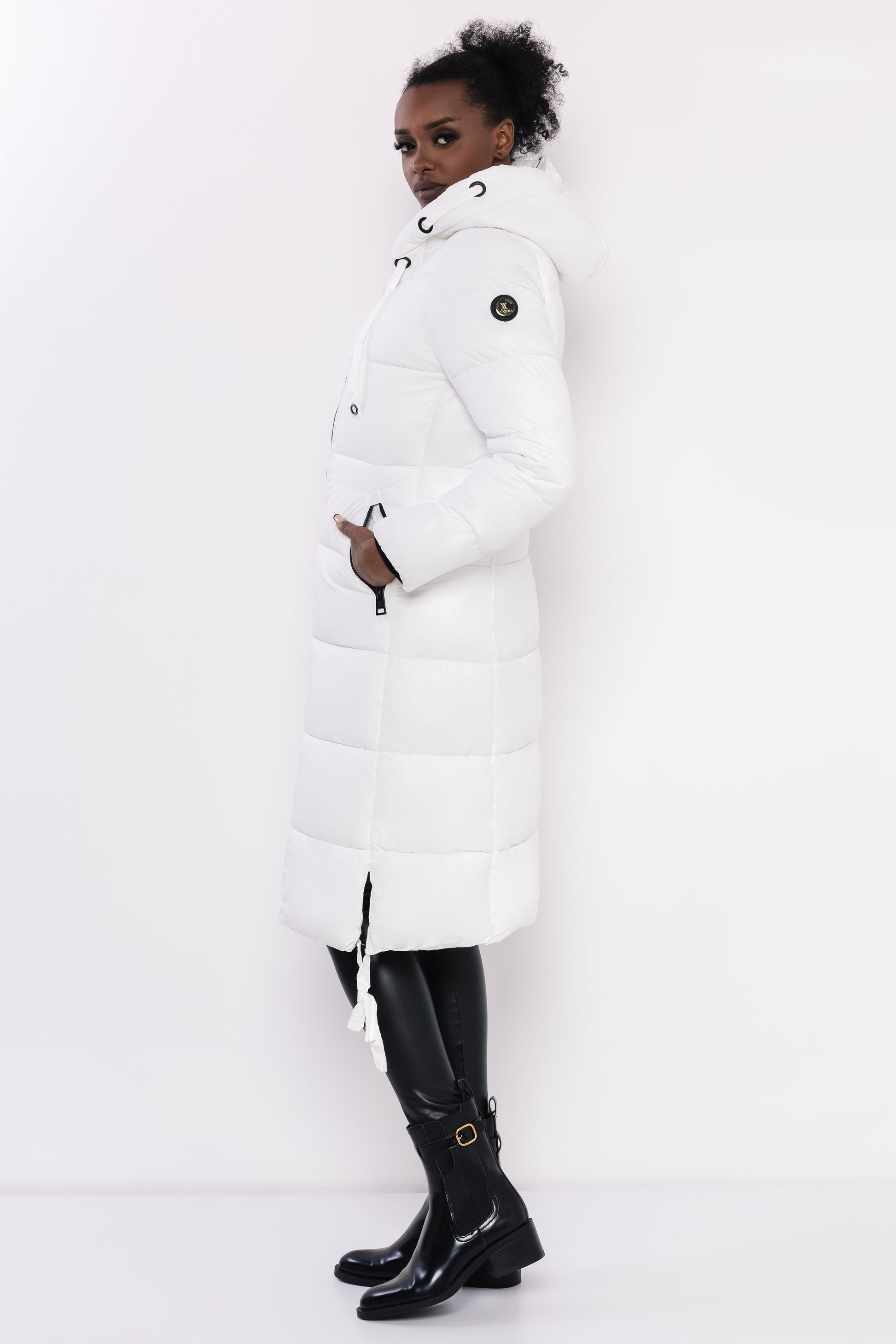 Az AMNESIA Klea kabát a nőies stílus és a praktikum tökéletes ötvözete. A 3/4-es hosszúságú pufikabát kapucnival és az alján összehúzható kialakítással gondoskodik a kényelmes viseletről és a hideg elleni védelemről. Fehér színe modern és letisztult megjelenést biztosít, így bármilyen téli szett elegáns kiegészítője lehet. Egy igazán stílusos és meleg darab a hideg napokra