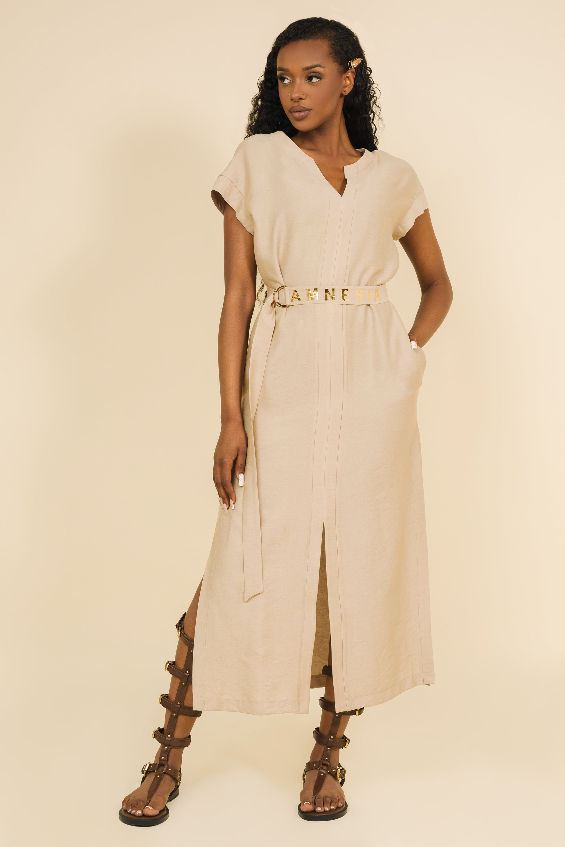 A modern elegancia és a természetes textúrák találkozása az AMNESIA Beth ruha. Egyenes, hosszított fazonja letisztultságot sugároz, miközben a finom len anyag és a nőies részletek – mint a V-kivágás, a felsliccelt szoknya és a megkötős derékrész – gondoskodnak a kényelmes, mégis karakteres megjelenésről. Fekete és bézs mellett már khaki színben is elérhető az amnesia.hu oldalon.