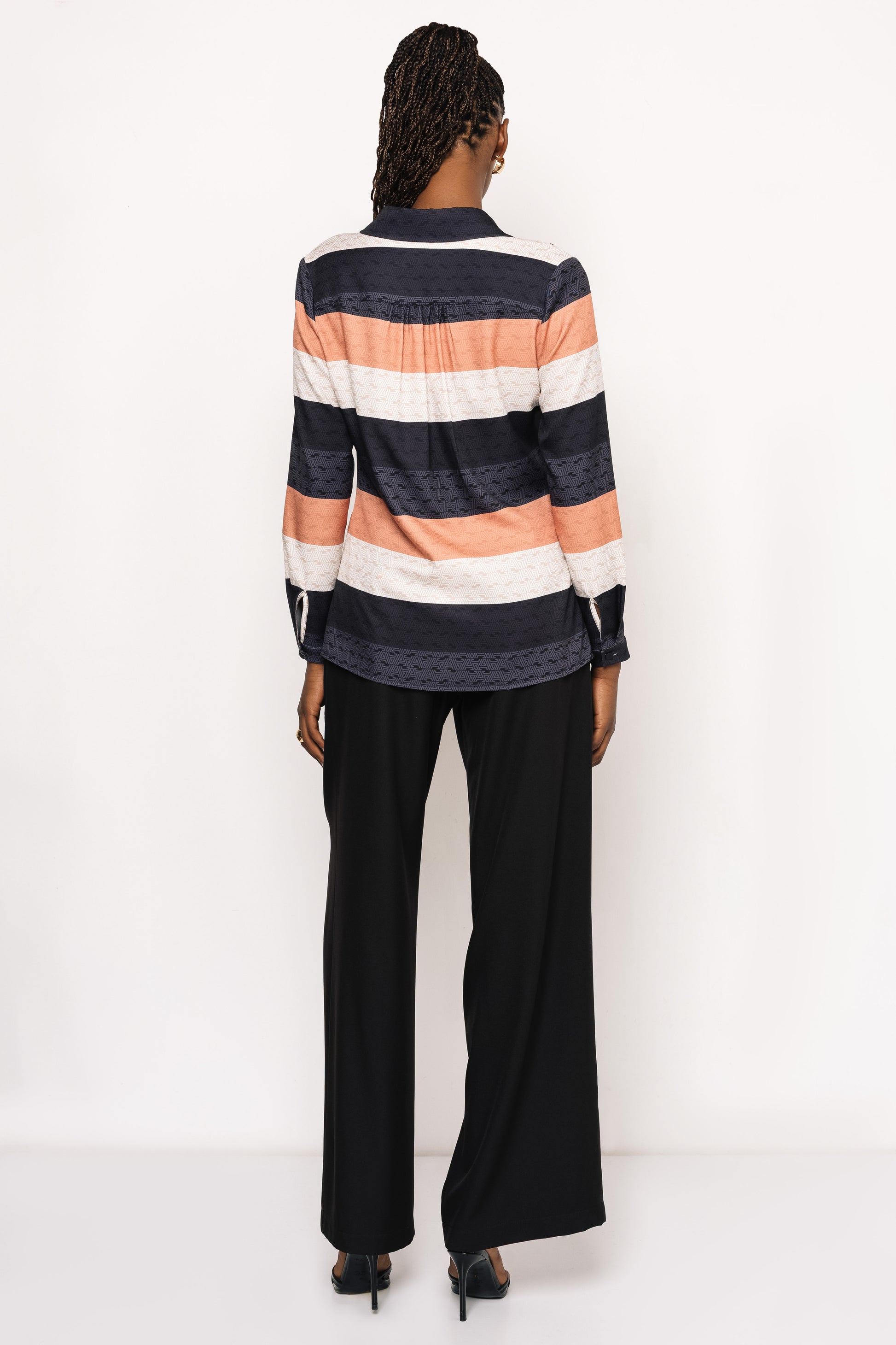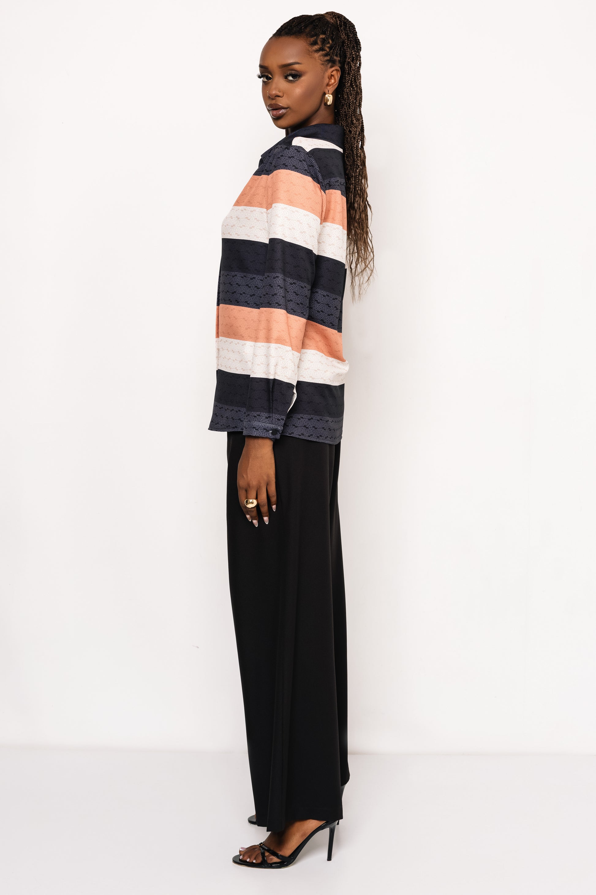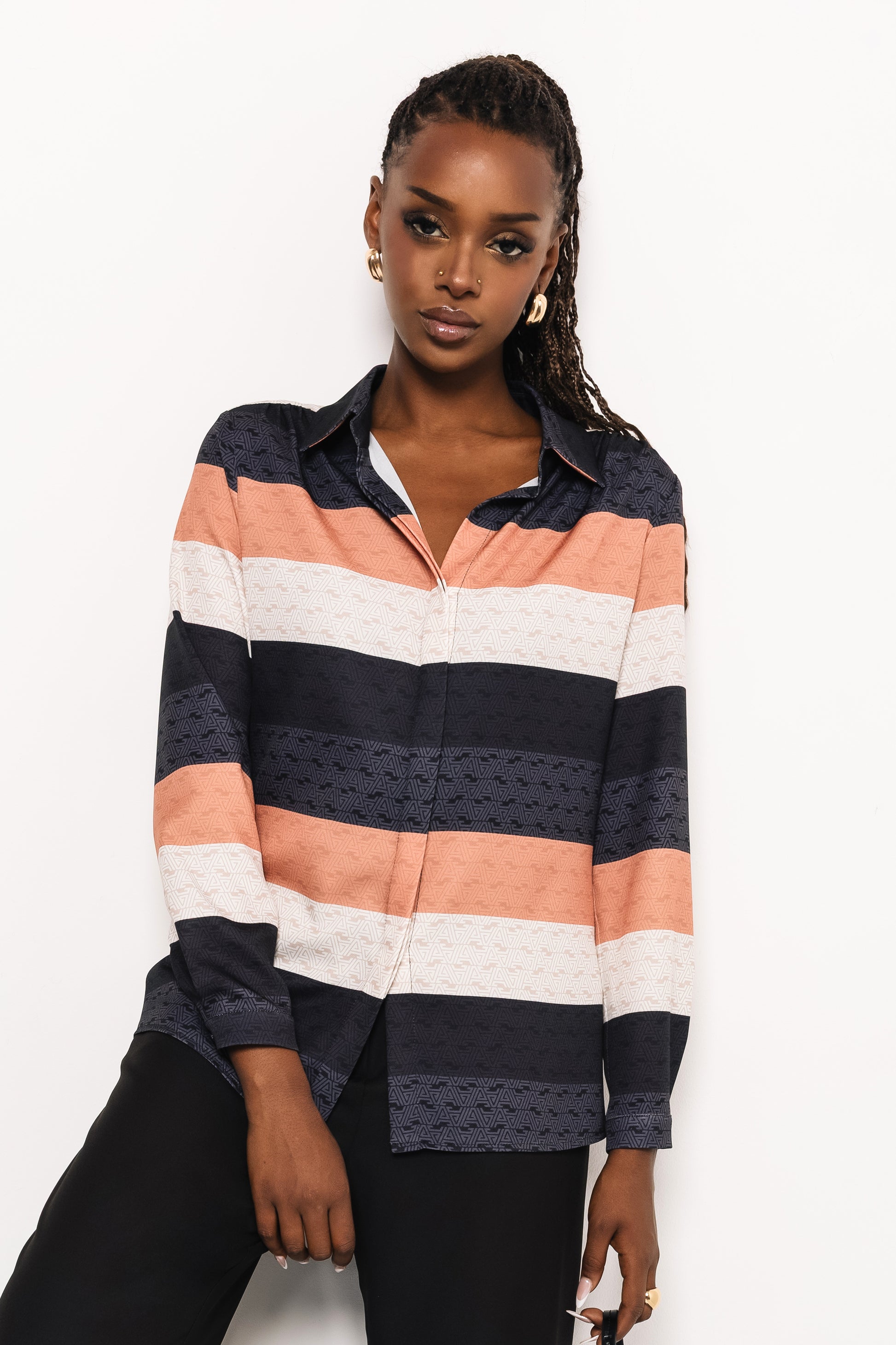 Az AMNESIA Mia blúz a klasszikus ingek világát ötvözi a modern részletek eleganciájával. A különleges, saját tervezésű logómintás csíkos anyag ősz-téli kollekciónk egyik újdonsága, amely finoman játszik a színekkel és textúrákkal. A latina anyag lágy esése és kellemes tapintása kényelmes viseletet biztosít, miközben letisztult, stílusos megjelenést nyújt. A hosszú ujj és az inggallér időtálló karaktert ad a darabnak, míg a logóval díszített gombok a részletgazdag kidolgozást hangsúlyozzák. Kényelmes szabása minden alkaton jól mutat, a csíkozás pedig optikailag nyújtja a sziluettet, így igazi gardróbkedvenc lehet a szezonban. Viseld elegáns nadrágokkal vagy szoknyával az irodában, de akár farmerrel is párosíthatod a hétköznapokban. Az AMNESIA Mia blúz a modern nő ruhatárának egyik nélkülözhetetlen darabja. Két méretben érhető el: S és M. Ez a méretezés biztosítja, hogy különböző testalkatokon is kényelmesen és előnyösen mutasson, miközben megőrzi a fazon jellegzetes vonalait és elegáns esését. Rendeld meg online az amnesia.hu-ról, és tedd teljessé a gardróbod!