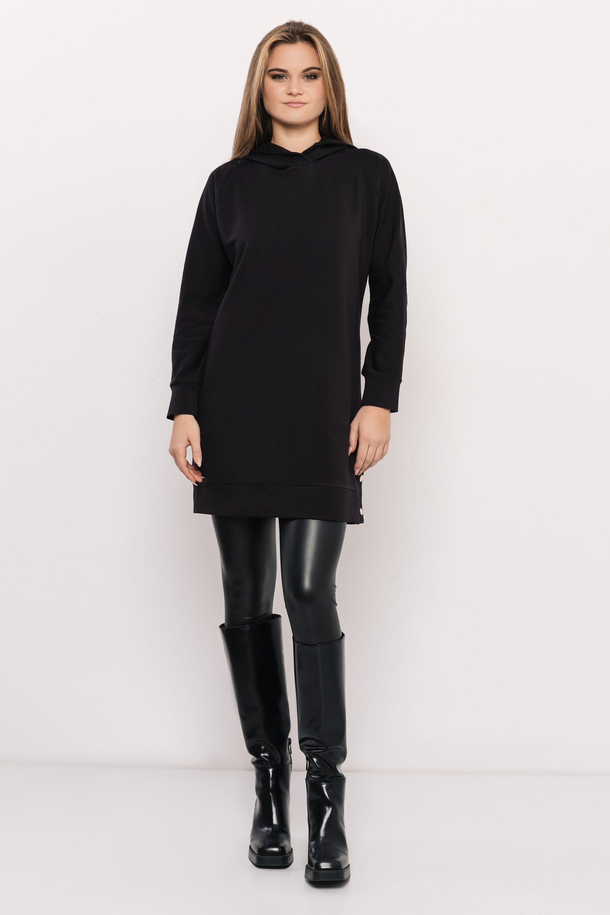 Az AMNESIA Bagen tunika azoknak szól, akik szeretik a laza, mégis nőies darabokat, amelyeket elég csak felkapni, és máris kész a napi outfit. A csoki, bordó és fekete szín mind más hangulatot ad—visszafogott, karakteres vagy elegánsan alapdarab. Puha futterből készült, így meleg, kényelmes és tökéletes a hidegebb napokra. A fazon enyhén A-vonalú, finoman követi a testet anélkül, hogy szűk lenne, az oldalán lévő patentok pedig feldobják a sportosabb vonalat. Két méretben érhető el (S–M, L–XL), így könnyű megtalálni a számodra megfelelőt. Viseld leggingsszel, farmerrel vagy akár vastag harisnyával — minden esetben modern, laza hatást kelt. Tedd kosárba a kedvenc színedet az amnesia.hu webshopon, amíg elérhető!