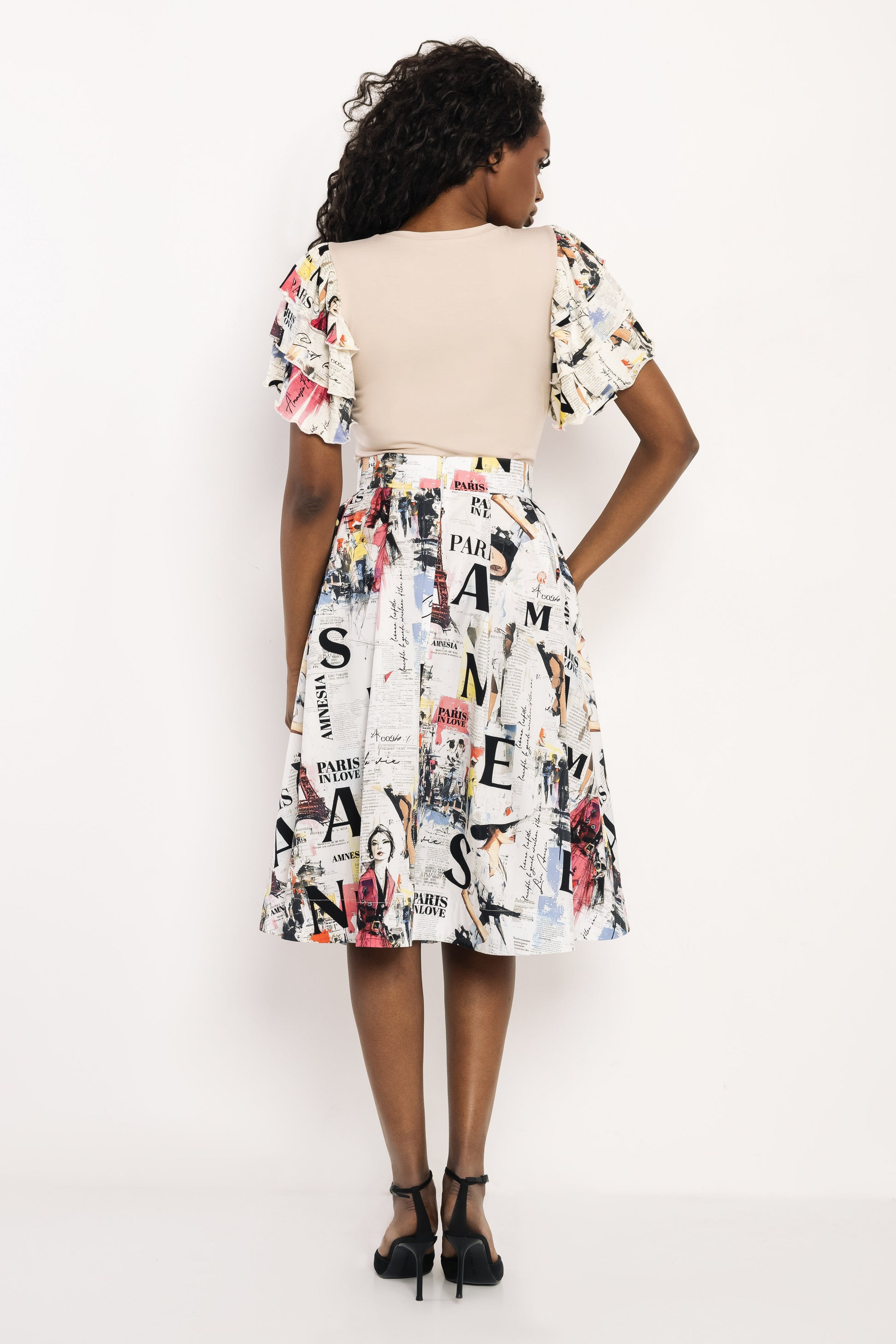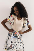 Az AMNESIA Bertina felső egy különleges, csinos darab, amely a párizsi magazin mintát nőies szabással és látványos ujjakkal ötvözi. A fodros ujjak játékos mozgást adnak a megjelenésnek, míg az egyszínű felsőrész szépen kiegyensúlyozza az összhatást. Vékony punto és puplin anyag kombinációjából készült, amely rugalmas, mégis tartást ad a fazonnak. A könnyű anyagoknak köszönhetően kényelmes viselet, miközben a különleges ujjak igazán egyedivé teszik. Bézs-párizsi magazin minta kombinációjában érhető el egyméretben. Viseld a hozzá illő AMNESIA Ginatra szoknyával egy igazán látványos szettben, vagy kombináld egyszerű nadrággal a visszafogottabb megjelenésért. Szerezd be az amnesia.hu webshopon, amíg elérhető!