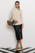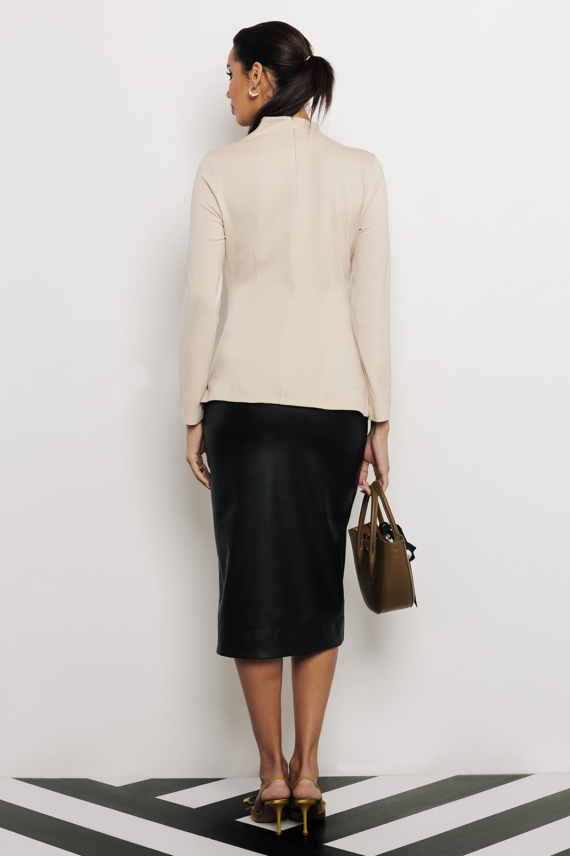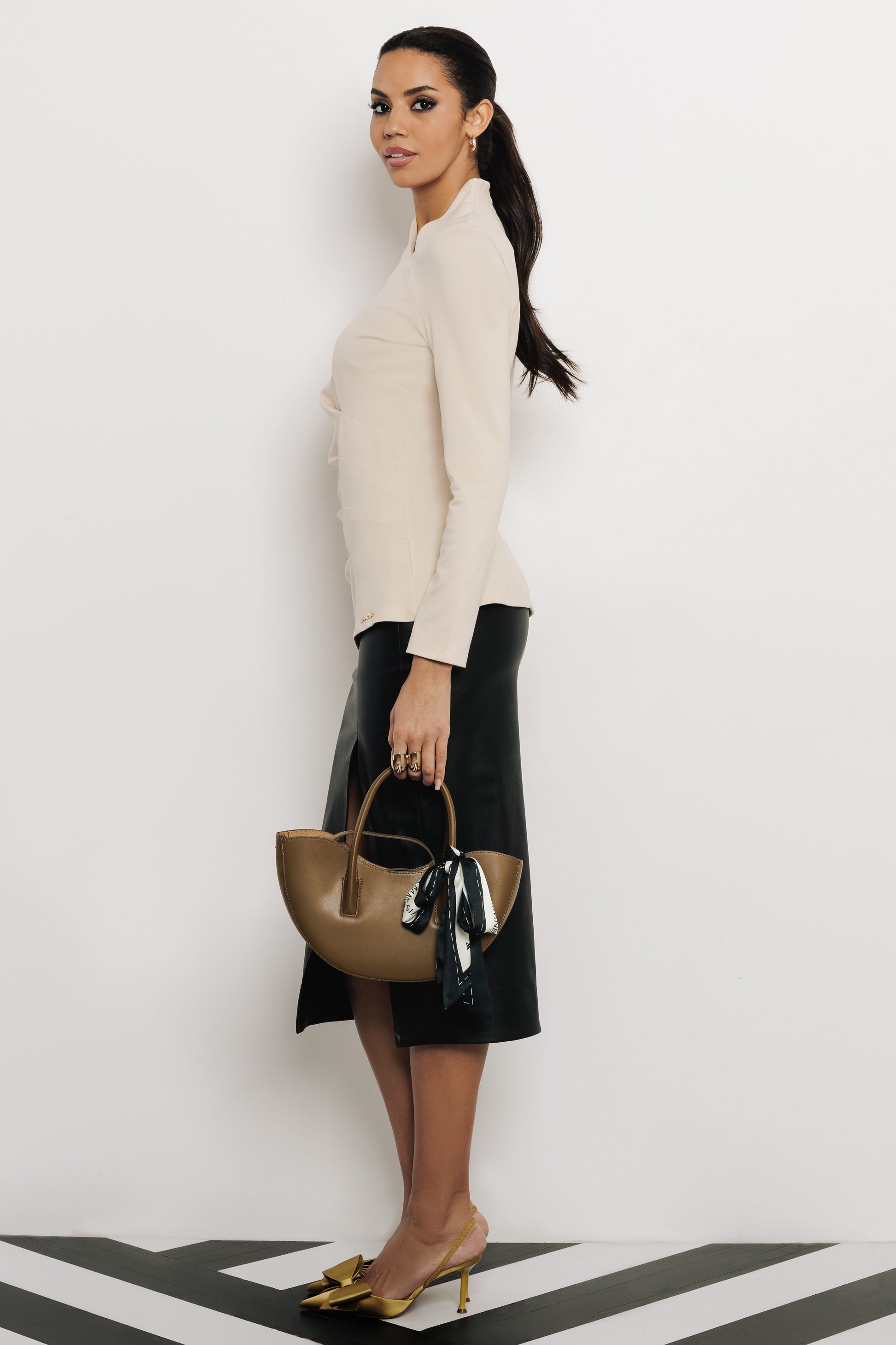 Az AMNESIA Hiroto felső letisztult, mégis karakteres darab, amely finoman emeli a megjelenést anélkül, hogy túlzó lenne. Aszimmetrikus nyakkivágása különleges részlet, ami önmagában is érdekessé teszi a szettet, miközben könnyen beilleszthető a mindennapi ruhatárba. A tavaszi AMNESIA kollekció részeként olyan felső, amely egyszerre elegáns és jól kombinálható. Punto anyagból készült, ami kellemes tapintású, rugalmas és szépen simul a testhez. Az egyméretes fazon univerzális, nem feszül és nem gyűrődik, hordás közben végig megőrzi letisztult vonalait. A hosszított szabás miatt nadrággal és szoknyával egyaránt viselhető. Viseld bőrhatású szoknyával vagy elegáns nadrággal irodai környezetben, de farmerrel párosítva egy lazább, városi szett részeként is megállja a helyét. Letisztult kiegészítőkkel nappali programokra, finom ékszerekkel akár esti alkalmakra is ideális.