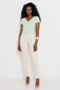 Az AMNESIA Mangó felső friss, nőies alapdarab, ami önmagában is elég ahhoz, hogy a szetted ne legyen „túl sima”. A V-kivágás és a mellrészen lévő finom ráncolás szépen hangsúlyozza a dekoltázst, a rövid ujj pedig kényelmes, könnyen viselhetővé teszi. Ideális választás, ha olyan felsőt keresel, ami jól áll farmerrel, szoknyával és elegánsabb nadrággal is. Vékony punto anyagból készült, ami finom tapintású, rugalmasan követi a mozgást és szépen simul a testen. Alma, bézs és ekrü színben érhető el, egyméretben, mely több alkaton is jól mutat. Viseld az AMNESIA Tullia nadrággal együtt egy modern, hétköznapi szetthez, vagy az AMNESIA Vina szoknyával, ha nőiesebb lookot szeretnél. Ekrüben letisztult, almában kifejezetten friss hatású, bézsben pedig könnyen rétegezhető. Szerezd be az amnesia.hu webshopon, amíg elérhető!