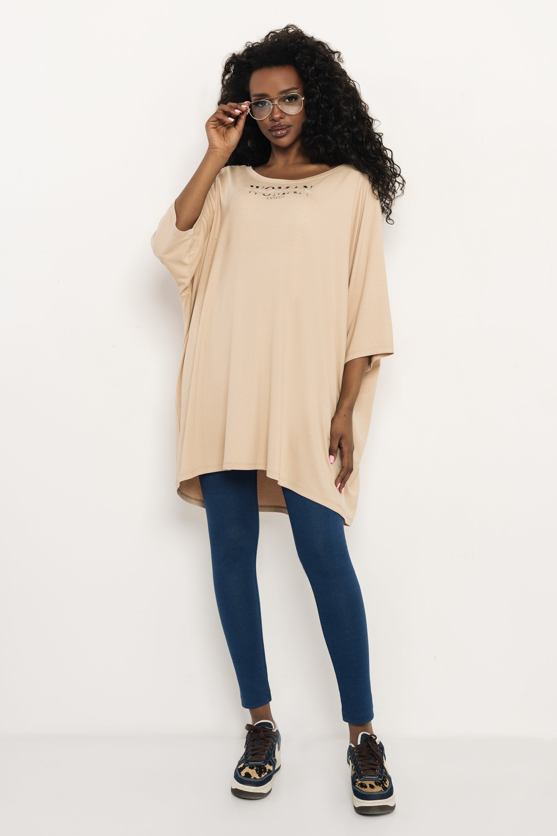Az AMNESIA Tuag tunika egy lezser, modern darab, amely a komfortos viseletet stílusos megjelenéssel ötvözi. A bővebb fazon és a széles nyakkivágás laza, mégis nőies hangulatot ad, miközben a mellrészen elhelyezett AMNESIA felirat karakteres részletként jelenik meg. Viszkóz anyagból készült, amely puha tapintású, könnyű és kellemes viselet egész nap. A hosszabb és laza fazon leggingsszel vagy szűk nadrággal is jól működik. Fekete, bézs, piros és farmerkék színekben érhető el egyméretben. Viseld farmerrel vagy leggingsszel egy sportosan elegáns, kényelmes összeállításhoz. Szerezd be az amnesia.hu webshopon, amíg elérhető!