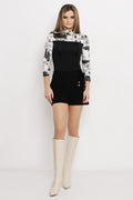 Az AMNESIA Veldon felső letisztult szabását logós városminta egészíti ki, amely meghatározó darabbá teszi a tavaszi AMNESIA kollekcióban. A fekete alap és a mintás rész kontrasztja modern, határozott összképet ad, miközben a fazon könnyen kombinálható marad. Olyan felső, amely markáns stílust képvisel. Kimo anyagból készült, amely sima felületű és egységes megjelenést biztosít. Egyméretes kialakítása több alkaton is jól mutat, a szabás tiszta vonalvezetésű, a hosszú ujjú fazon pedig kiegyensúlyozott sziluettet ad. Az anyag és a minta együttese karakteres hatást kelt. Egyszínű nadrággal vagy szoknyával viselve kerül igazán fókuszba, de rétegezve is jól működik. Ajánlott városi programokra, nappali eseményekre vagy olyan alkalmakra, amikor a határozott, trendi megjelenés a cél.