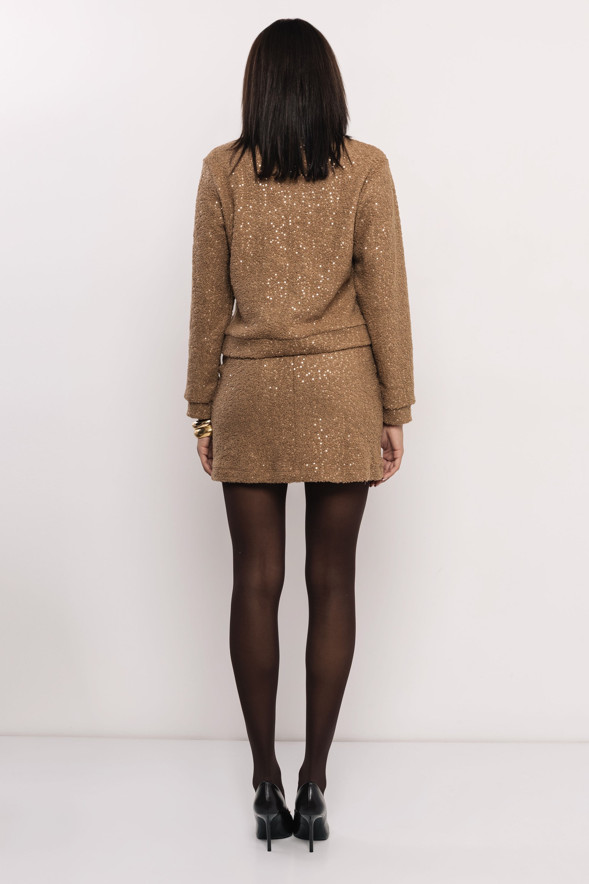 Az AMNESIA Goni szoknya az a darab, amitől egy pillanat alatt ünnepi hangulatba kerülsz: finoman csillogó, mégis letisztult – pont az a vibe, amit az alkalmi szezon megkíván. A flitteres buklé anyag puha, rugalmas és szépen követi a vonalakat, miközben megtartja a miniszoknya játékos fazonját. Egyméretű kialakítása rugalmas derékkal és kellemes tapintású anyagával kényelmessé teszi a viselést egész estére. A drapp árnyalat különlegesen elegáns, és szépen harmonizál feketével, arannyal vagy akár kontrasztos, mélyebb tónusokkal is. Magas sarkúval és a hozzáillő AMNESIA Fenil felsővel igazán alkalmi összeállítás. Tedd a kosárba az amnesia.hu webshopon, és indulhat az ünnepi szezon ragyogása!