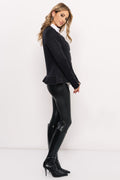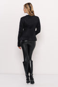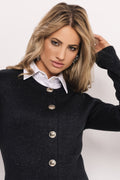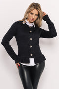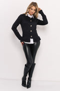 Az AMNESIA Hogja kardigán tökéletes választás, ha egy elegáns, finoman fénylő, mégis praktikus réteget keresel a hétköznapokra. A lurexes kötött anyag puha és rugalmas, ami könnyű, kényelmes viseletet ad. A fazont kerek nyakkivágással és enyhén karcsúsított szabással alakítottuk nőiessé. Az alsó rész finom fodros peplum-hatású megoldása nőies, rendezett sziluettet ad, amely szépen mutat nadrággal és szoknyával is. A nagyobb, fémhatású gombok modern, karakteres részletei a darabnak. Fekete színben érhető el, ez pedig könnyen kombinálható bármilyen alapdarabbal. Hordhatod klasszikus fehér ing fölé — ahogy a fotón is látszik — vagy egyszerű basic pólóval és bőrhatású nadrággal a hétköznapokra. Egy ceruzaszoknyával pedig irodai összeállításként is működik. Tedd a kosaradba az amnesia.hu webshopon, és legyen egy kardigánod, ami minden alkalommal biztos választás lesz!