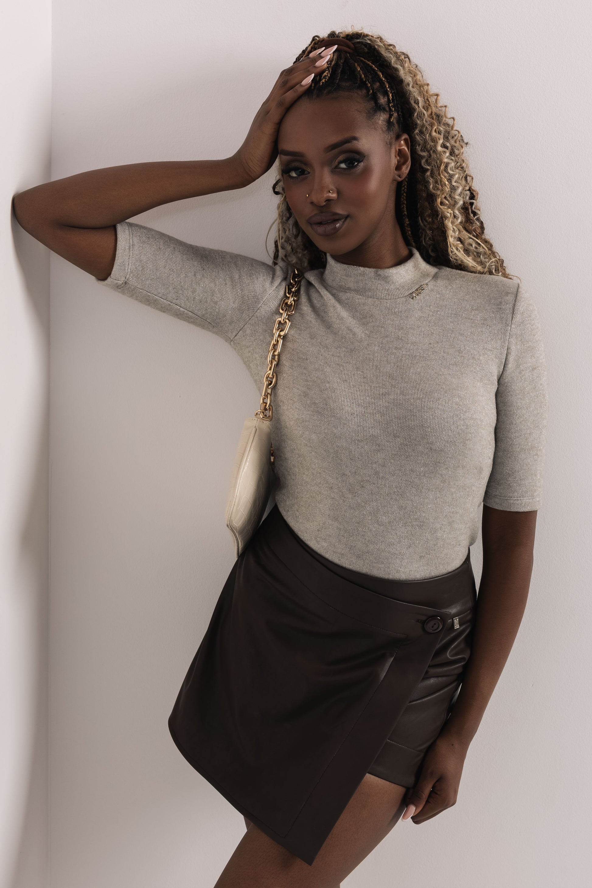 Az AMNESIA Polona felső tökéletes választás, ha elegáns és kényelmes darabot keresel. Csillogó lurexes anyagból készült, amely finom ragyogást kölcsönöz, miközben nőies fazonja kiemeli az alakot. Ekrü, szürke, bézs és fekete színekben is elérhető, így könnyedén illesztheted bármilyen szettbe. Egy stílusos alapdarab, amely minden alkalmat különlegessé tesz!