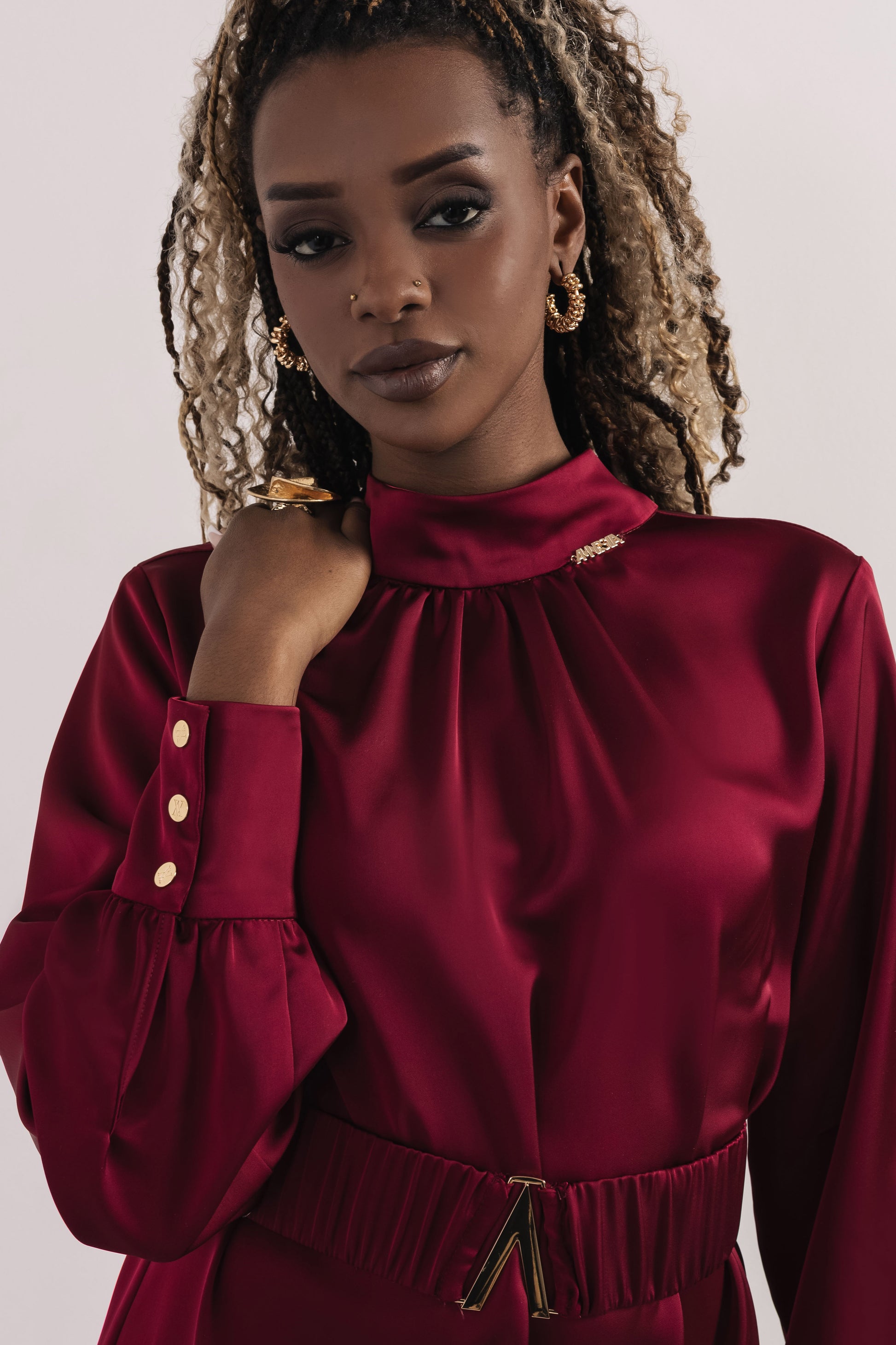 Az AMNESIA Larina ruha azonnal ünnepi hangulatba hoz a finoman fénylő szatén anyagával – egy olyan darab, amihez elég felvenni egy hangsúlyos ékszert, és máris kész a megjelenés. A lágyan omló szatén elegáns fényt ad a ruhának, miközben a magas nyakrész és az apró berakások finoman keretezik az arcot. A rugalmas derékrész szépen formáz, a hosszú ujj pedig könnyed, nőies vonalat visz a fazonba. Magas sarkúval alkalmivá teheted, de laposabb cipővel is tökéletes választás egy stílusos naphoz. Szerezd be az AMNESIA Larina ruhát az amnesia.hu webshopon, amíg elérhető!