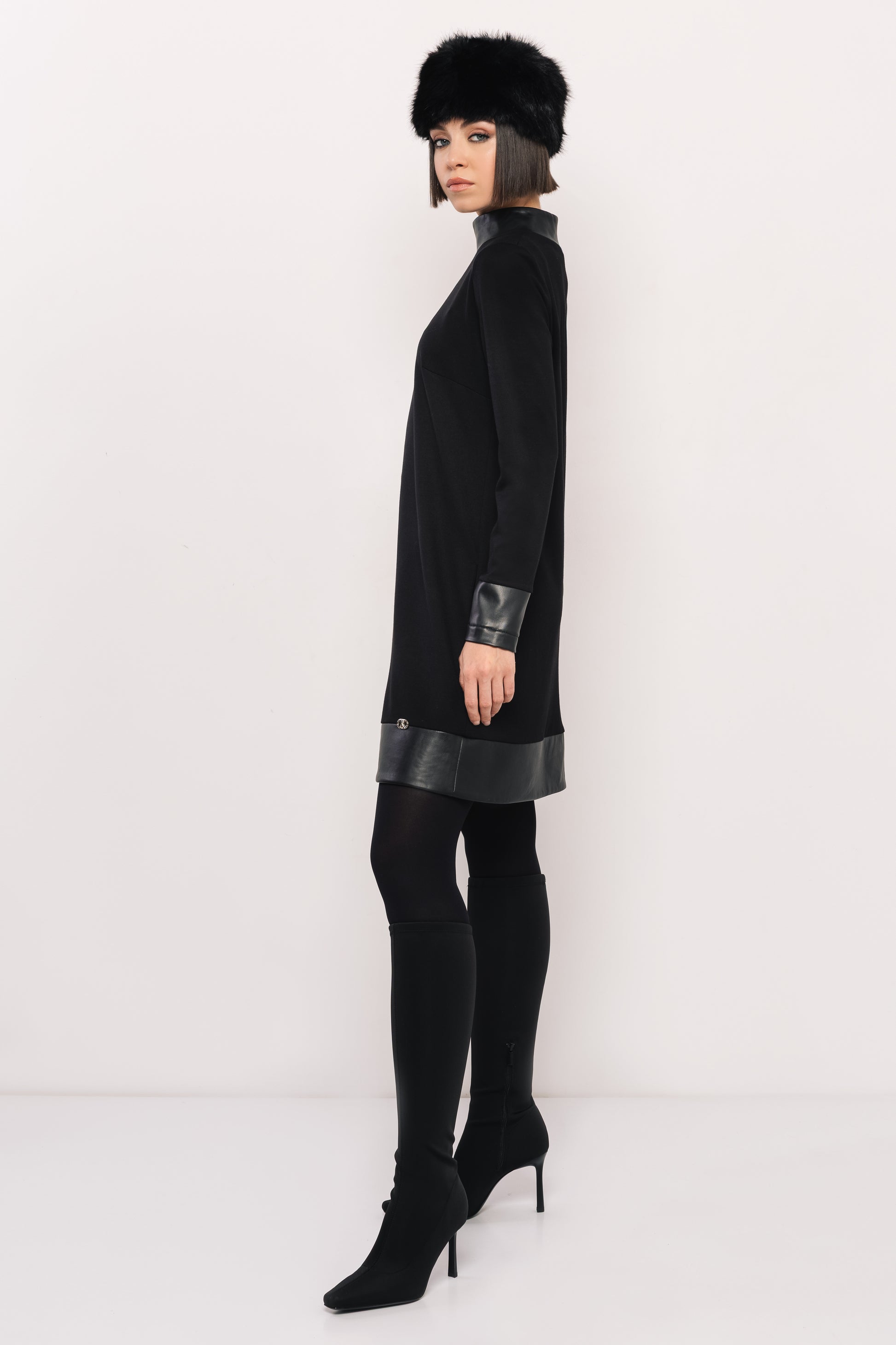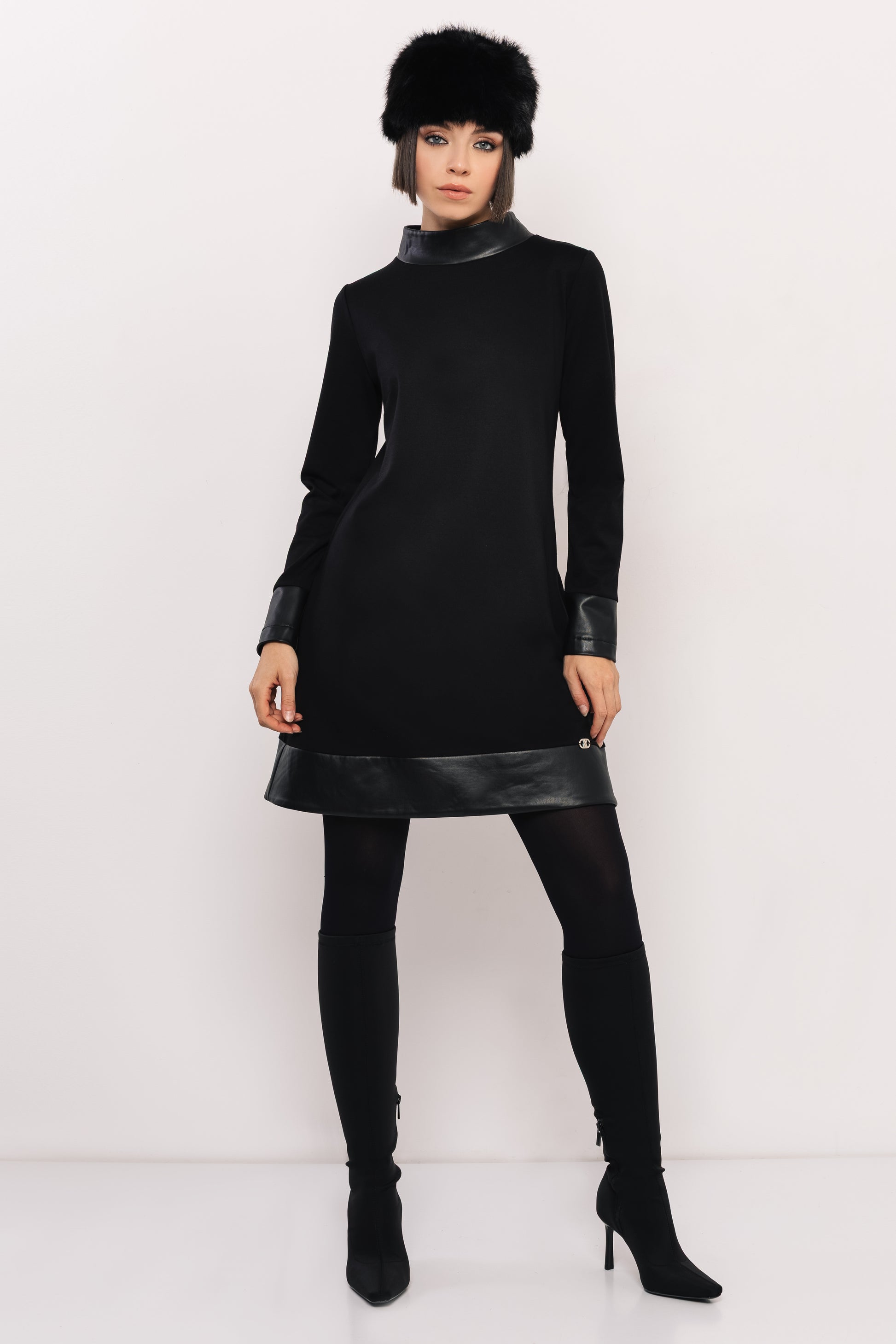Az AMNESIA Morella ruha azoknak szól, akik szeretik az egyszerű, de hatásos darabokat. A nőies fazon és a műbőr részlet együtt adja azt a friss, modern hangulatot, amitől ez a ruha gyorsan a kedvenceddé válik. A punto alap kényelmes és rugalmas, amit jól kiegészítenek a műbőr betétek. Ezek együtt adják a ruha modern jellegét, miközben a fazon nőies és letisztult. Fekete színben érkezik, ami minden alkalomra elegáns választás. Magas szárú csizmával, harisnyával vagy bokacsizmával is jól működik. Ha egy megbízható, szuper ruhára vágysz, rendeld meg az amnesia.hu webshopon!