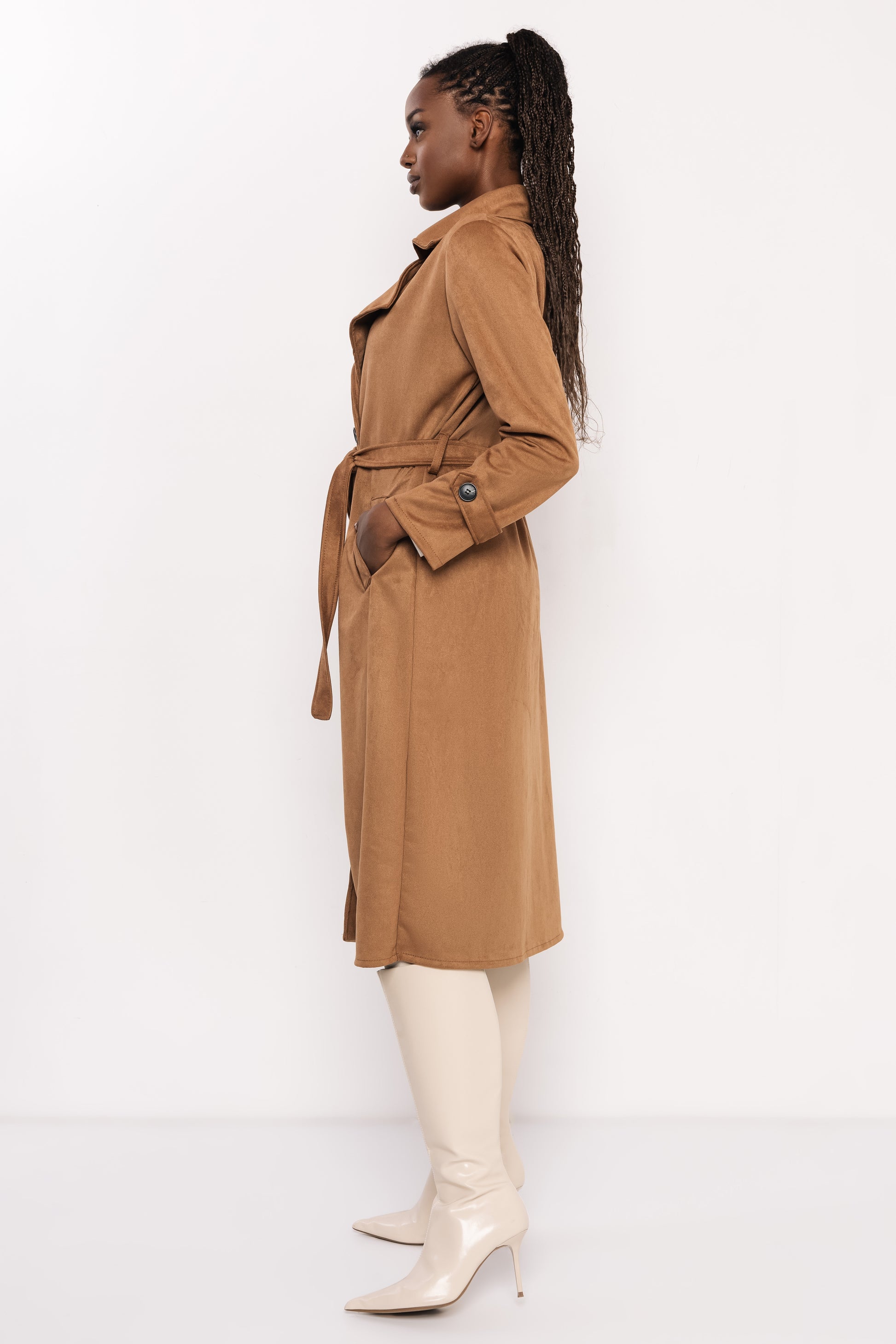 Az AMNESIA Drina művelúr kabát klasszikus ballonkabát fazonját idézi meg, széles hajtókával, dupla gombsorral és övvel a derékrészen, amely kiemeli a nőies sziluettet. A puha művelúr anyag elegáns megjelenést és kényelmes viseletet biztosít, miközben a színek széles palettája – a feketétől és khakitól a camel, sötétbarna, burgundi és vaj árnyalatig – lehetővé teszi, hogy mindenki megtalálja a stílusához leginkább illőt. Egyméretben elérhető, így univerzális darabja lehet gardróbodnak. A klasszikus camel változat tökéletes világos csizmákkal és letisztult kiegészítőkkel, a fekete verzió pedig elegáns alapdarabként funkcionálhat. A burgundi vagy khaki szín merészebb választás, amely az őszi-téli szetteket teszi igazán különlegessé. Akár elegáns ruhák fölé, akár farmer és pulóver kombinációjához viseled, a Drina kabát mindig modern és stílusos külsőt kölcsönöz. Ne hagyd ki ezt a gardrób alapdarabot – rendeld meg kedvenc árnyalatodat az amnesia.hu webshopról, és tedd teljessé az őszi outfited!