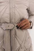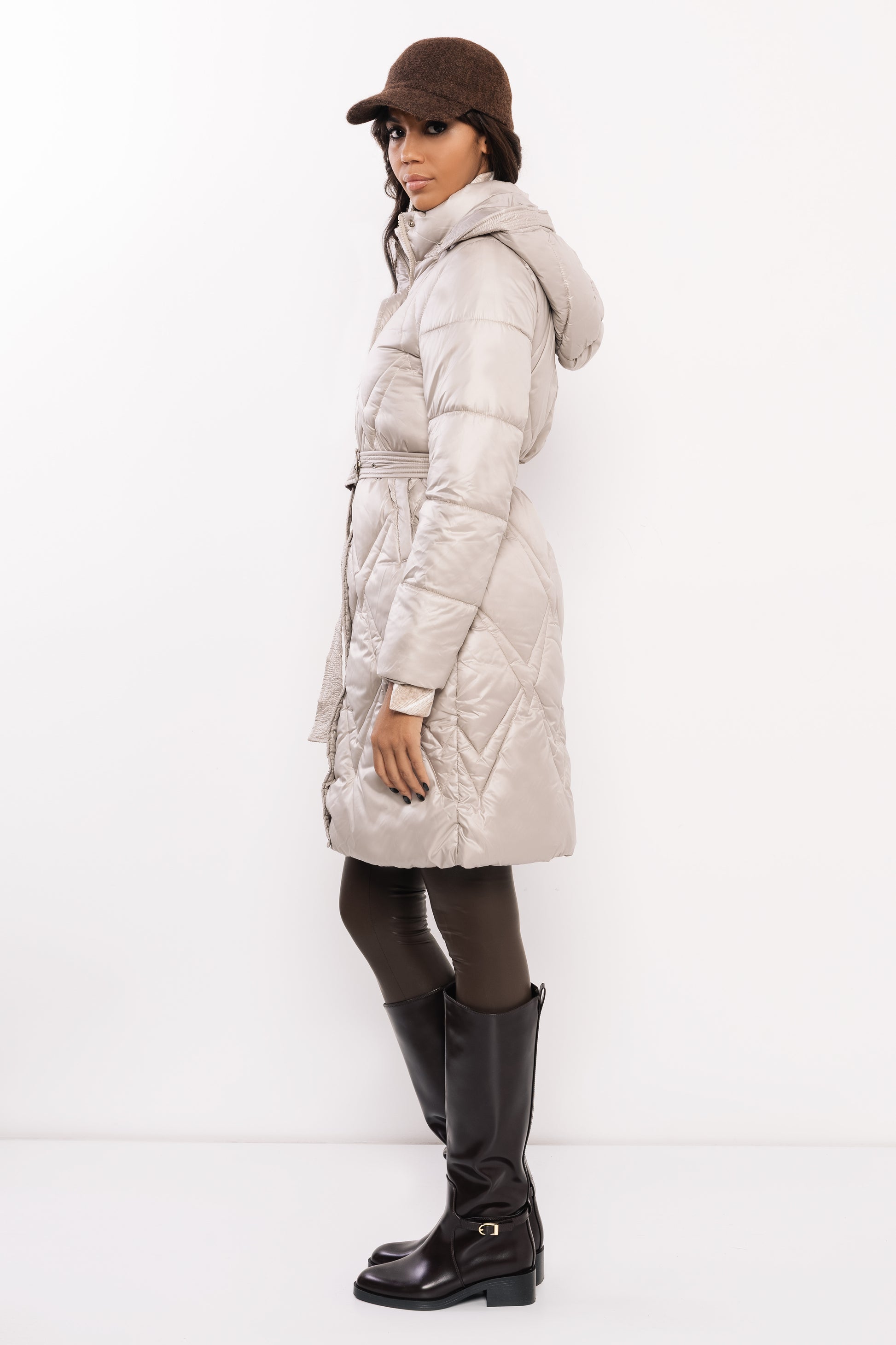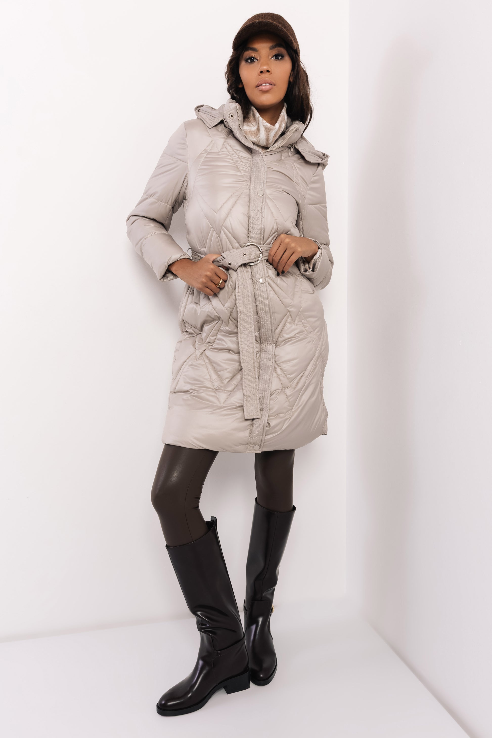 Az AMNESIA Léna rombusz steppelt kabát a hideg napok igazi kedvence: hosszított, öves fazonja és a steppelt mintázata egyszerre nőies és praktikus. A kapucni, a díszített övcsat és a puha, meleg bélés minden részletében a kényelmet és az eleganciát szolgálja. Viseld bőrhatású nadrággal és csizmával, vagy farmerrel és kötött sapkával a hétköznapi, városi stílusért. A fekete és pezsgő árnyalatban elérhető kabát bármely téli ruhatárba könnyen beilleszthető. Ha egy stílusos, mégis időtálló télikabátot keresel, a Léna a tökéletes választás – rendeld meg most az amnesia.hu webshopon, és légy felkészült a szezonra!
