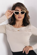 Az AMNESIA Opli felső nőies, kifinomult darab, amely a részletek eleganciájával hódít. A puha, rugalmas viszkóz anyag finoman simul a testre, míg a mellrészen futó csipkebetét és az apró arany logógomb különleges karaktert ad a megjelenésnek. A klasszikus, kerek nyakkivágás és a hosszú ujjak letisztult, mégis sikkes összhatást teremtenek. Fekete és bézs színekben elérhető, sokoldalúan kombinálható darab: viseld ceruzaszoknyával vagy elegáns nadrággal az irodában, de hétvégén is tökéletes választás farmerrel és bőrdzsekivel. A nőies részleteknek köszönhetően könnyen a gardróbod egyik alapdarabjává válik. Emeld ki a stílusod az AMNESIA Opli felsővel, és fedezd fel, milyen könnyedén ötvözi a kényelmet és az eleganciát! Tedd kosárba az amnesia.hu webshopon, amíg elérhető!