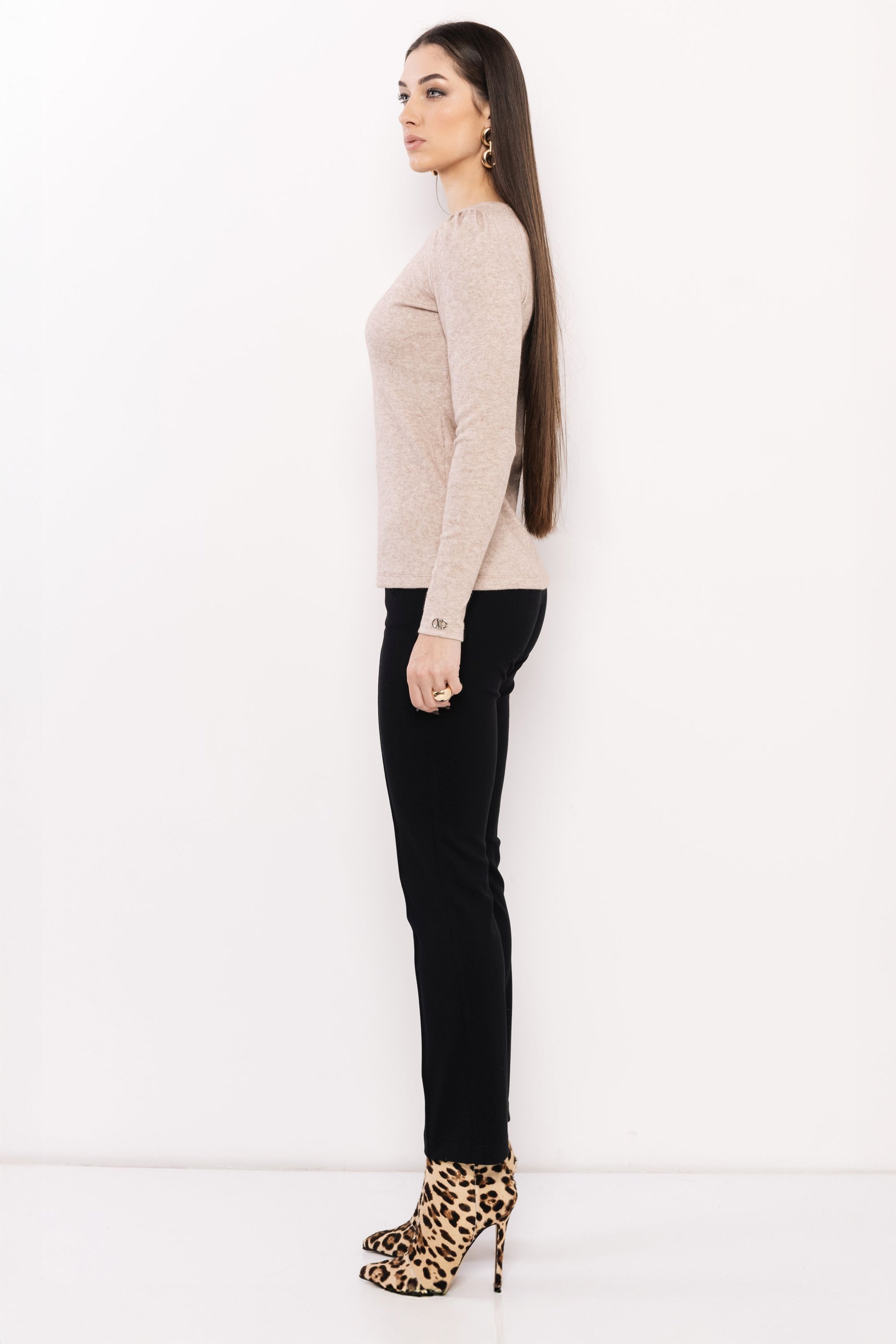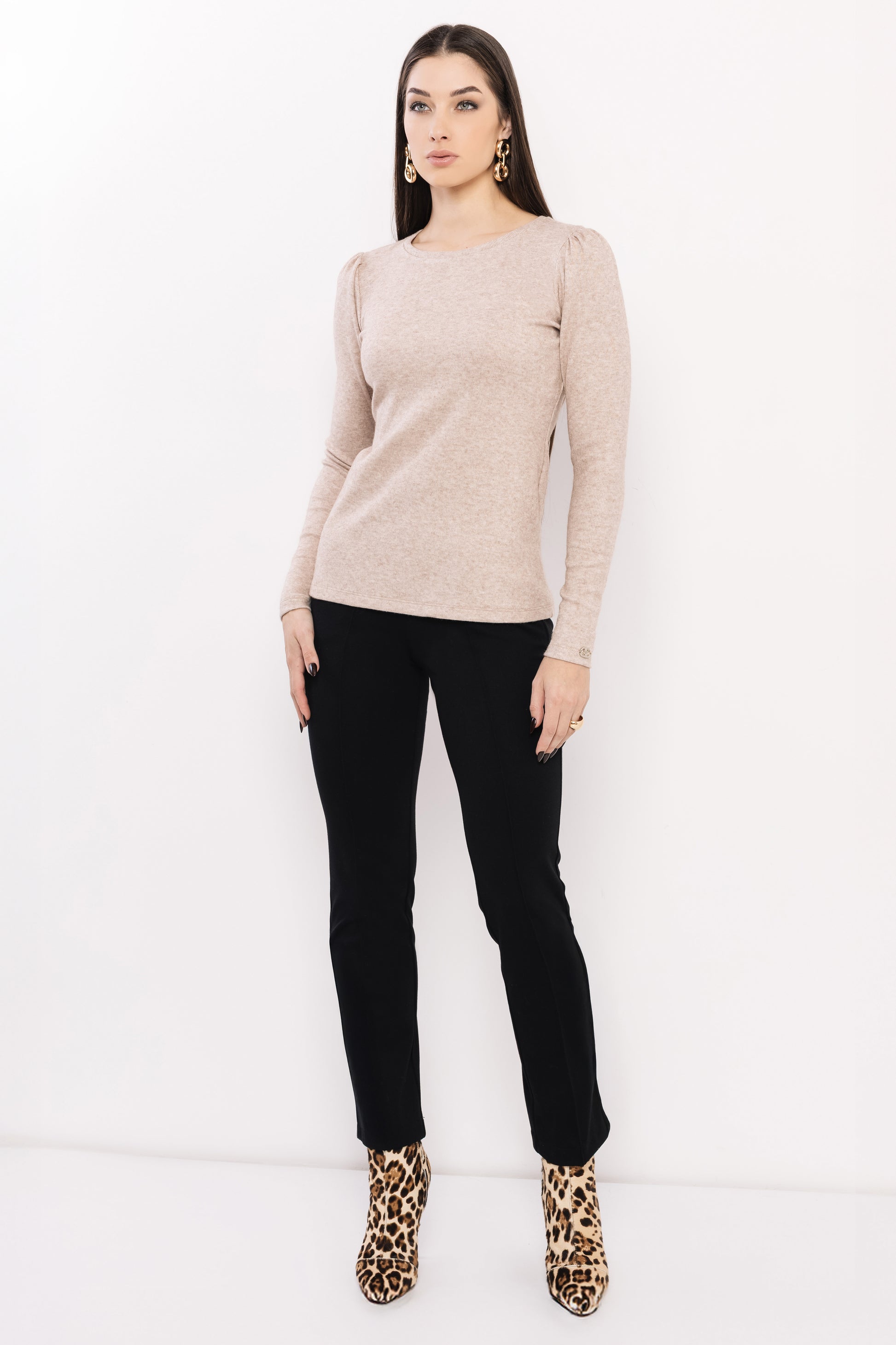 Az AMNESIA Reata felső a finom, vékony kötött anyagból készült. Enyhén puffos vállmegoldása és kerek nyakkivágása nőies karaktert ad, miközben a testhez simuló fazon kiemeli az alakot. Egyszerű eleganciájával sokoldalúan viselhető: kombináld bőrhatású nadrággal és magassarkúval egy estére, vagy farmerrel és kabáttal a hétköznapokra. Ekrü és bézs árnyalatban is elérhető, így könnyen megtalálhatod a stílusodhoz illőt. Ha szereted a letisztult, mégis karakteres darabokat, ne hagyd ki – válaszd ki kedvenc színed, és rendeld meg az amnesia.hu webshopon!