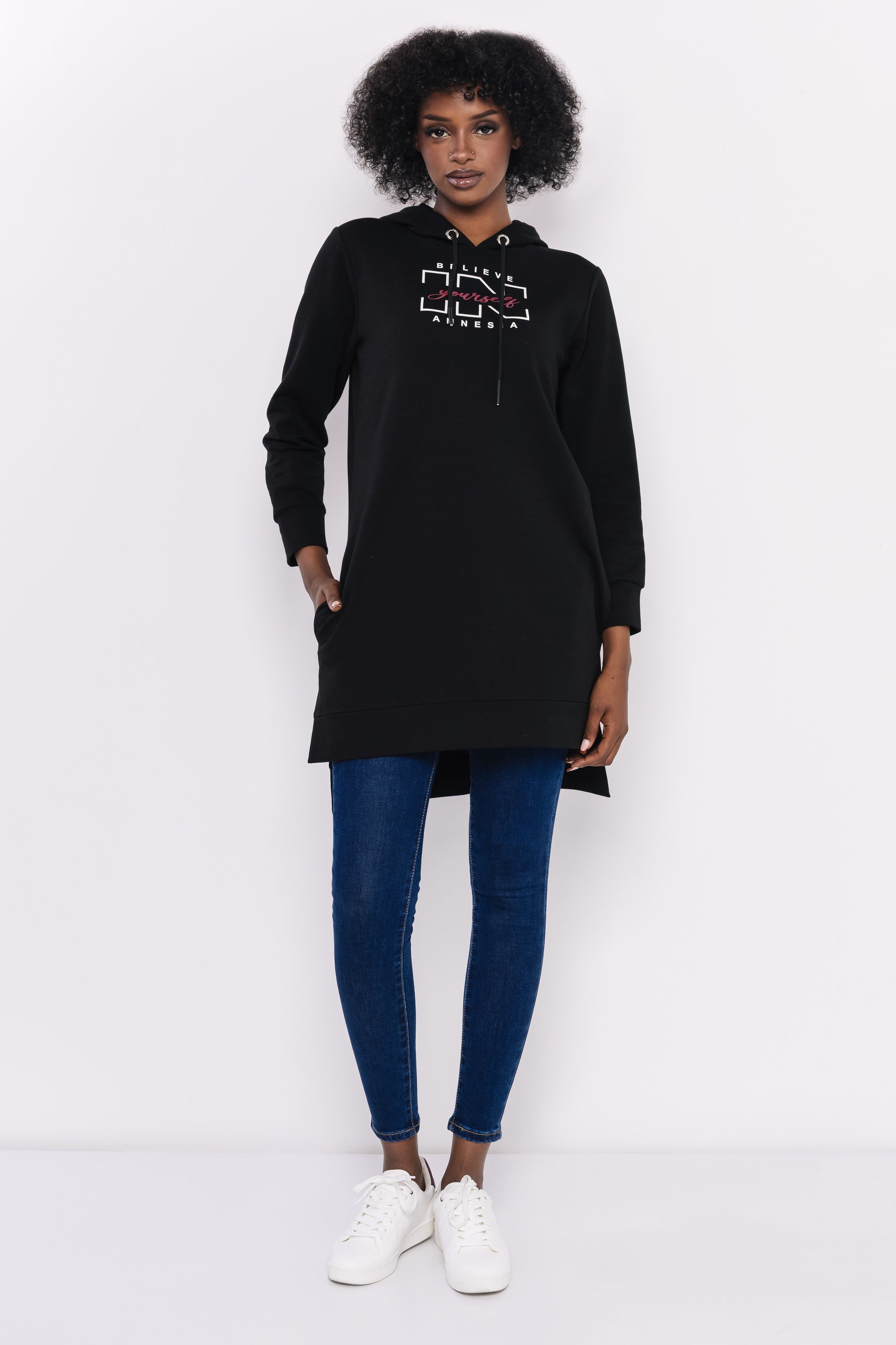 Az AMNESIA Csőre 2 tunika sportos, mégis nőies fazonjával a lezser elegancia megtestesítője. Klasszikus, enyhén A-vonalú szabása, hosszított háta és oldalhasítékai kényelmet biztosítanak, míg a kapucni és a logónyomás modern, karakteres részletként teszi teljessé az összhatást. A puha futter anyag tökéletes választás a hűvösebb napokra – meleg, mégis jól szellőzik, így ideális városi rohanós napokra vagy hétvégi pihenéshez is. Válaszd kedvenc árnyalatodban: bézs, csoki, fekete vagy bordó színben, hogy a hangulatodhoz és gardróbodhoz igazíthasd. Viseld bőrszoknyával és csizmával, ha vagány nőies stílust keresel, vagy leggingsszel és sportcipővel a mindennapi kényelmes szettekhez. Szerezd be kedvenc színedben az amnesia.hu webshopon, amíg elérhető!