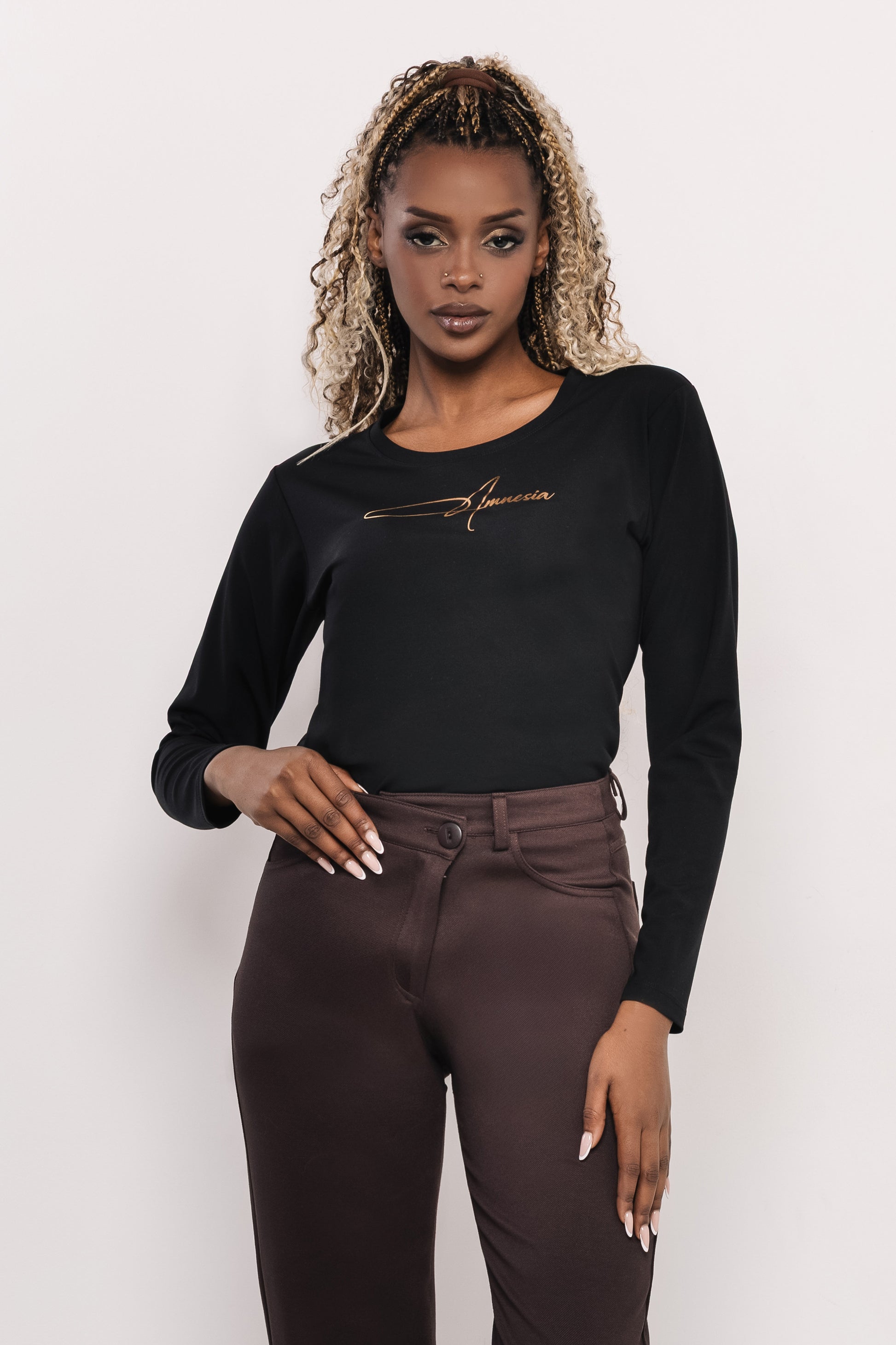 Az AMNESIA hosszú ujjú T-póló egy igazi alapdarab, amihez bármikor nyúlhatsz – letisztult és nőies. A vékony punto anyag rugalmas, puha és szépen követi a vonalakat, így kényelmesen hordható akár egy hosszú nap során is. Az egyméretes fazon több alkaton is jól működik, a visszafogott logó pedig finom AMNESIA stílust ad a szetthez. Viseld farmerrel, bőrszoknyával vagy elegáns nadrággal – ez a felső mindig beilleszthető egy klassz outfitbe. Szerezd be az amnesia.hu webshopon, amíg elérhető!