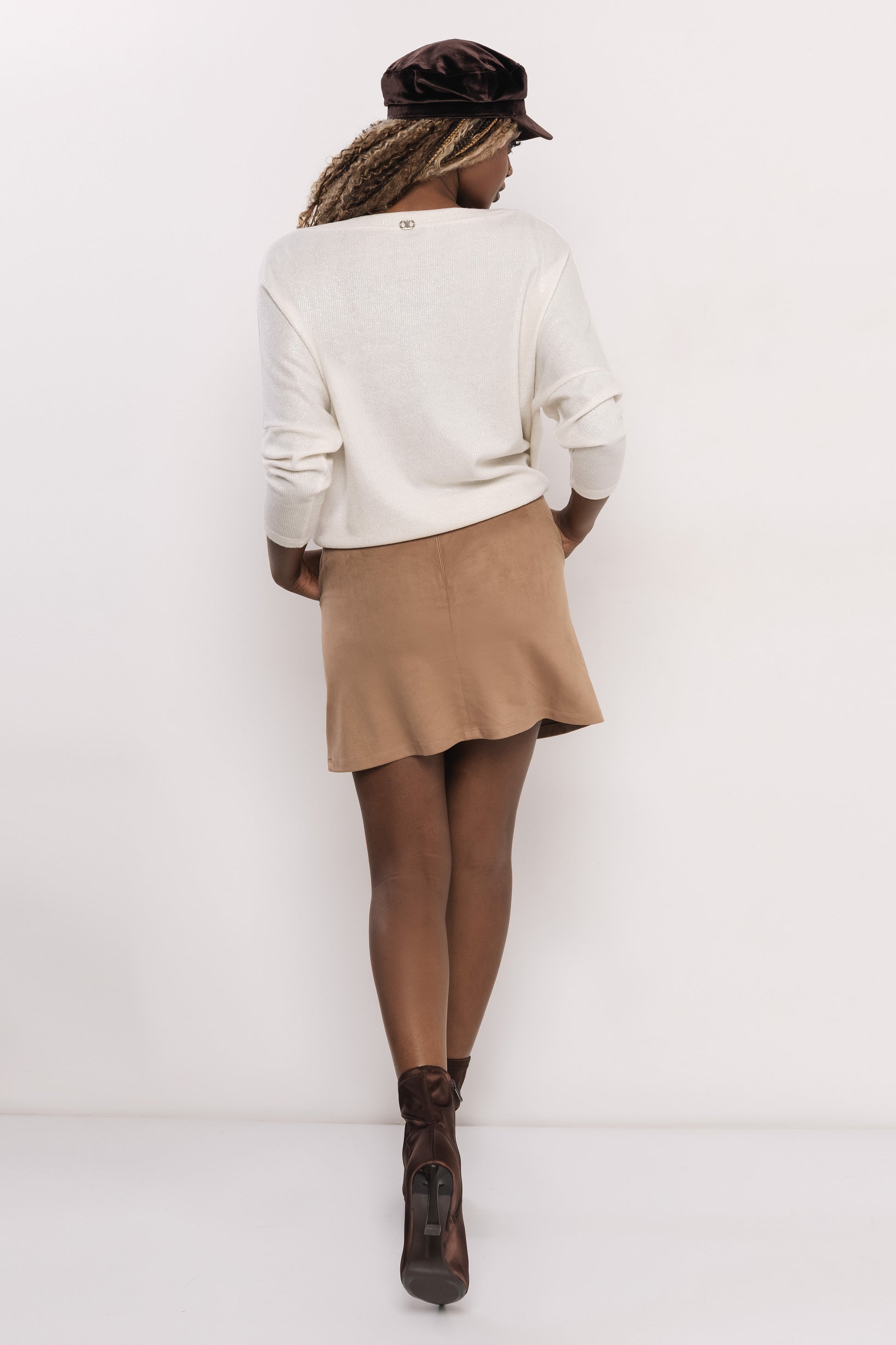 Az AMNESIA Iklar felső letisztult, finoman fényes darab, ami egyszerre visszafogott és nőies. A lazább szabás és a puha esés miatt könnyed hatást kelt, miközben a finom csillogás elegánssá teszi az összképet. Lurexes kötött anyagból készült, ami kellemes tapintású és rugalmas. Egyméretes kialakítása szépen alkalmazkodik az alakhoz. Az ekrü szín világos, friss megjelenést ad, jól kombinálható világos és sötétebb alsókkal is. Szettben különösen jól működik világos nadrággal vagy bézs szoknyával, de egy sötétebb színnel is elegáns kontrasztot ad. Irodai viseletként és alkalmi szettekben is könnyen használható. Szerezd be az amnesia.hu webshopon, amíg elérhető!