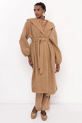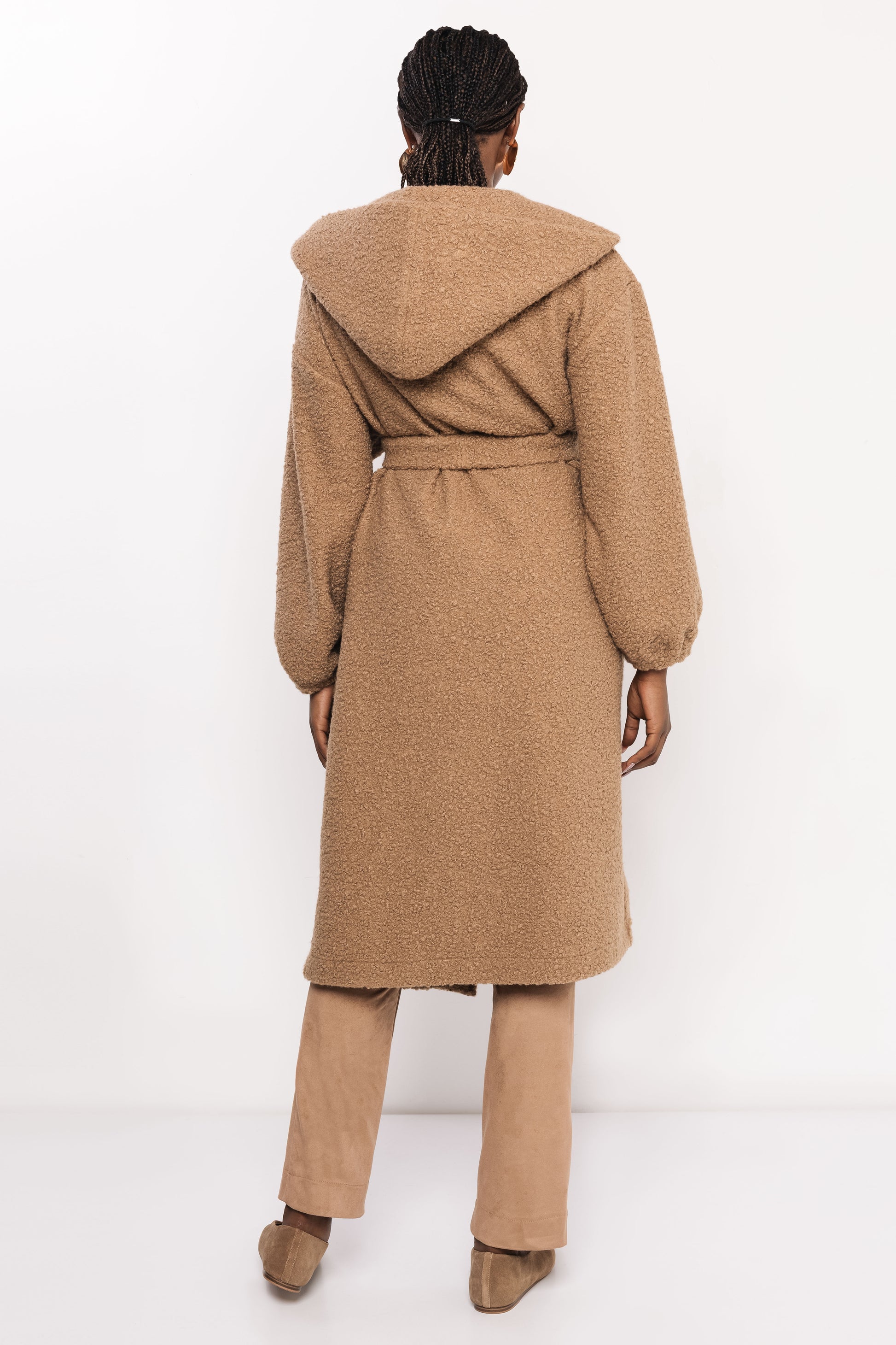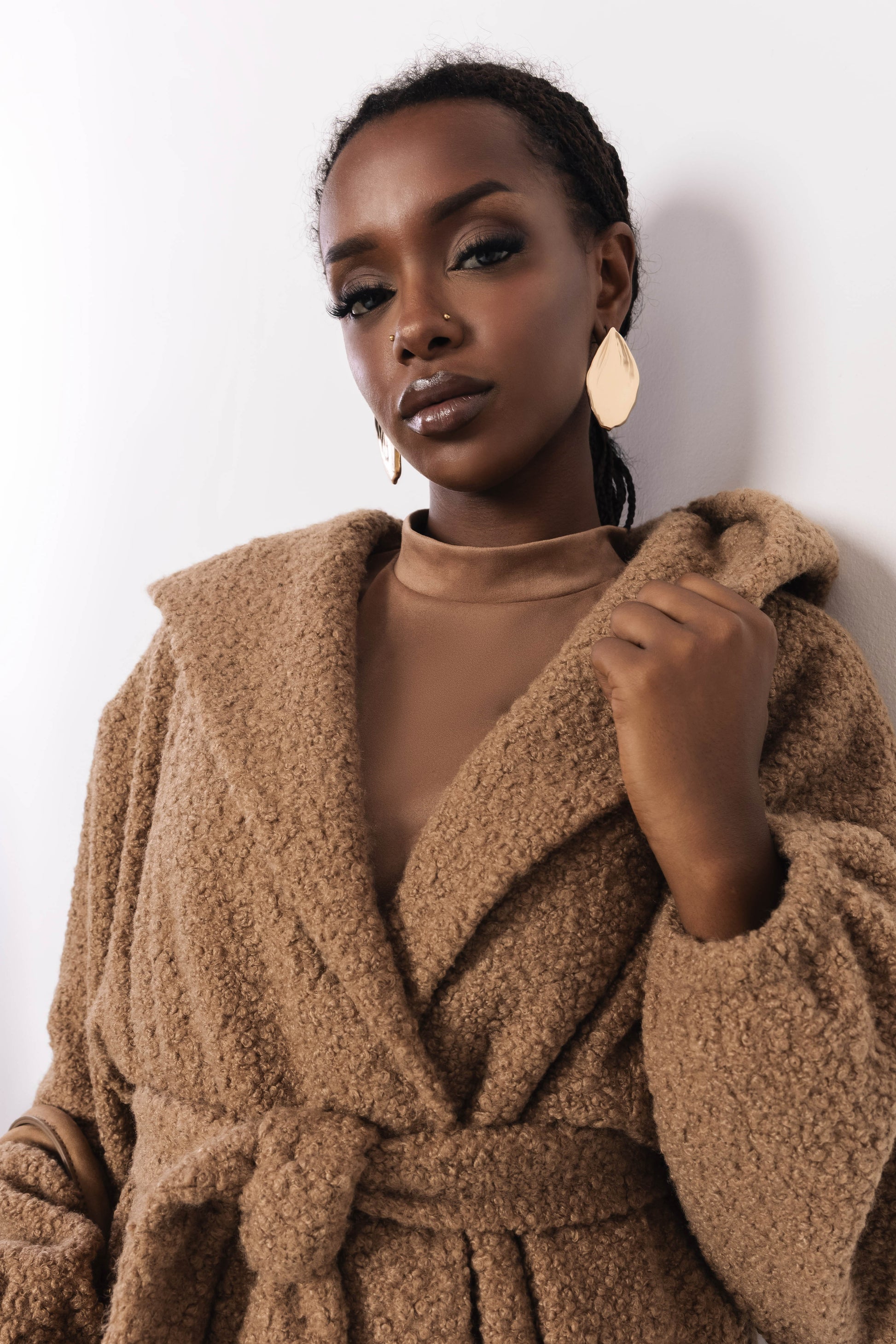 Az AMNESIA Nivers kabát buklé anyagból készült, amely puha, texturált felületével azonnal melegséget és eleganciát sugall. A térdig érő, oversize fazon, és a praktikus kapucni kényelmet biztosít, míg a deréknál megköthető öv nőies sziluettet ad a megjelenésnek. Az egyméretű szabás több alkaton is jól mutat, a camel, krém és fekete színek pedig időtlen, könnyen kombinálható árnyalatok. Ez a kabát sokoldalúan beépíthető az őszi ruhatárba: viselheted elegáns nadrággal vagy szoknyával, ahogy a képen is látható, de akár farmerrel is hétköznapi szettekhez. A buklé textúrája extra stílust ad, miközben kellemes meleget biztosít a hűvösebb napokon. Tedd különlegessé az őszi megjelenésed az AMNESIA Nivers kabáttal, és szerezd be most az amnesia.hu webshopon, amíg elérhető!