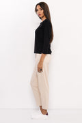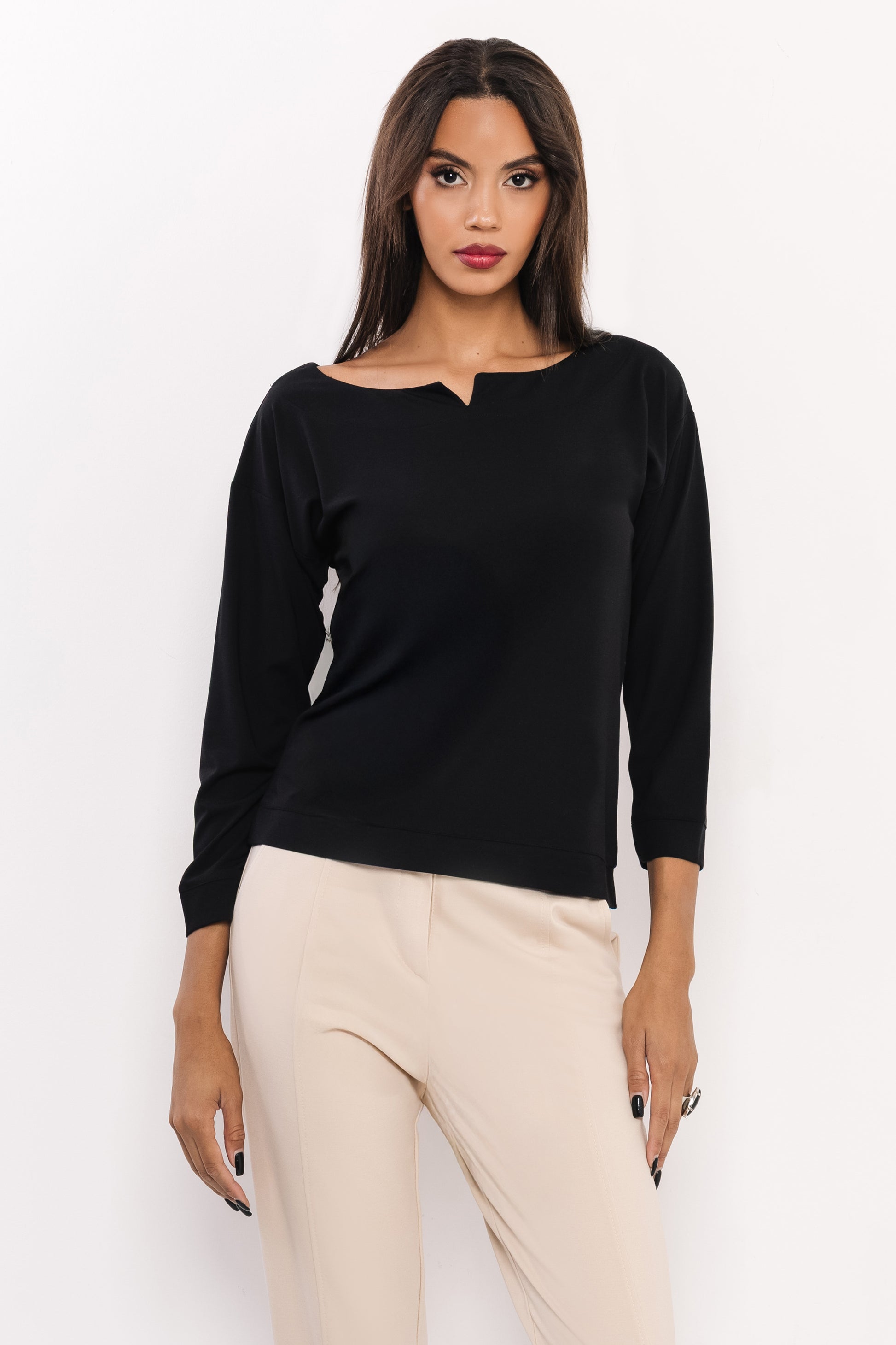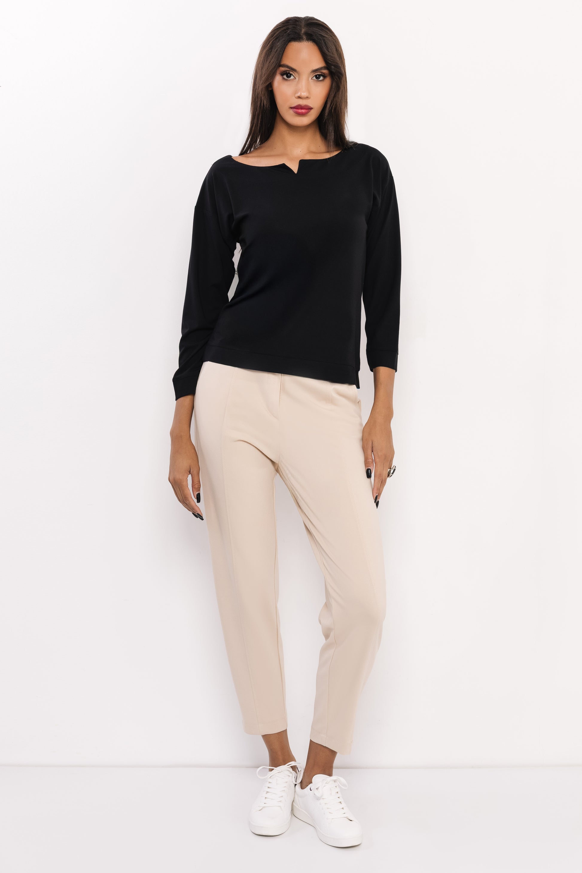 Az AMNESIA Olin felső egy igazi alapdarab, amely letisztult stílusával bármely ruhatárban megállja a helyét. A vékony punto anyag könnyed esésének és finom tapintásának köszönhetően légies viselet, amit egész nap szívesen hordhatsz. A modern nyakkivágás apró részlete különleges karaktert ad ennek a visszafogott, mégis stílusos darabnak. A fekete és bézs színváltozatok klasszikus eleganciát sugallnak, így könnyedén beilleszthetők az irodai megjelenéstől kezdve a hétköznapi szettekig. Az egyméretes fazon biztosítja a laza, komfortos illeszkedést, miközben a szabásvonalak nőies sziluettet teremtenek. Kombináld az AMNESIA Olin felsőt nadrágokkal vagy szoknyákkal szettben: válaszd például az AMNESIA Bloss nadrágot a letisztult összhatáshoz, vagy egy elegáns szoknyát, ha nőiesebb megjelenést szeretnél. Szerezd be az amnesia.hu webshopon, amíg elérhető!