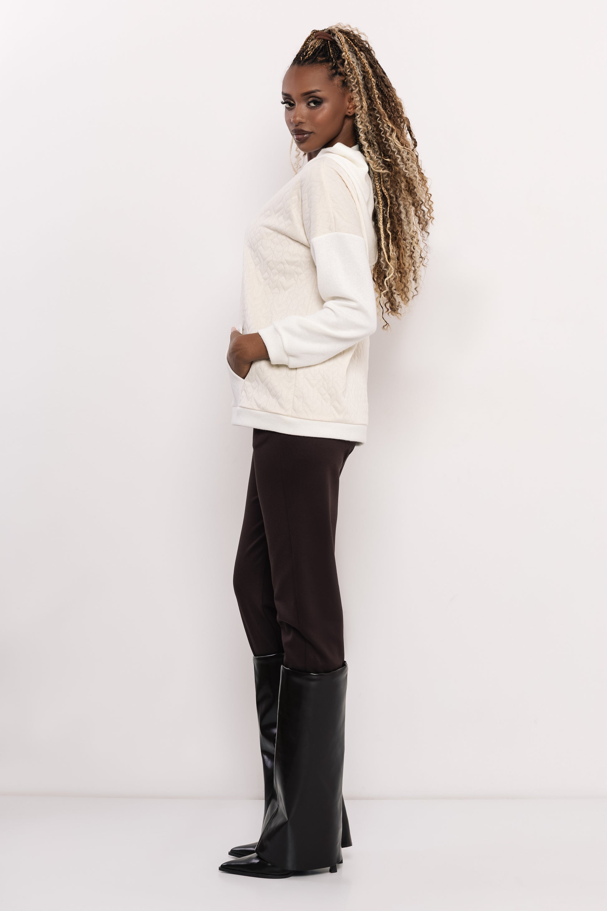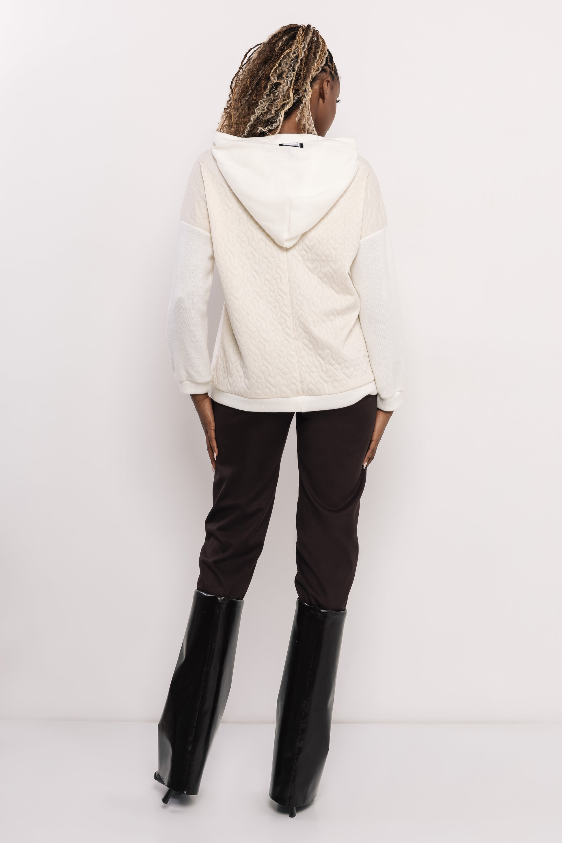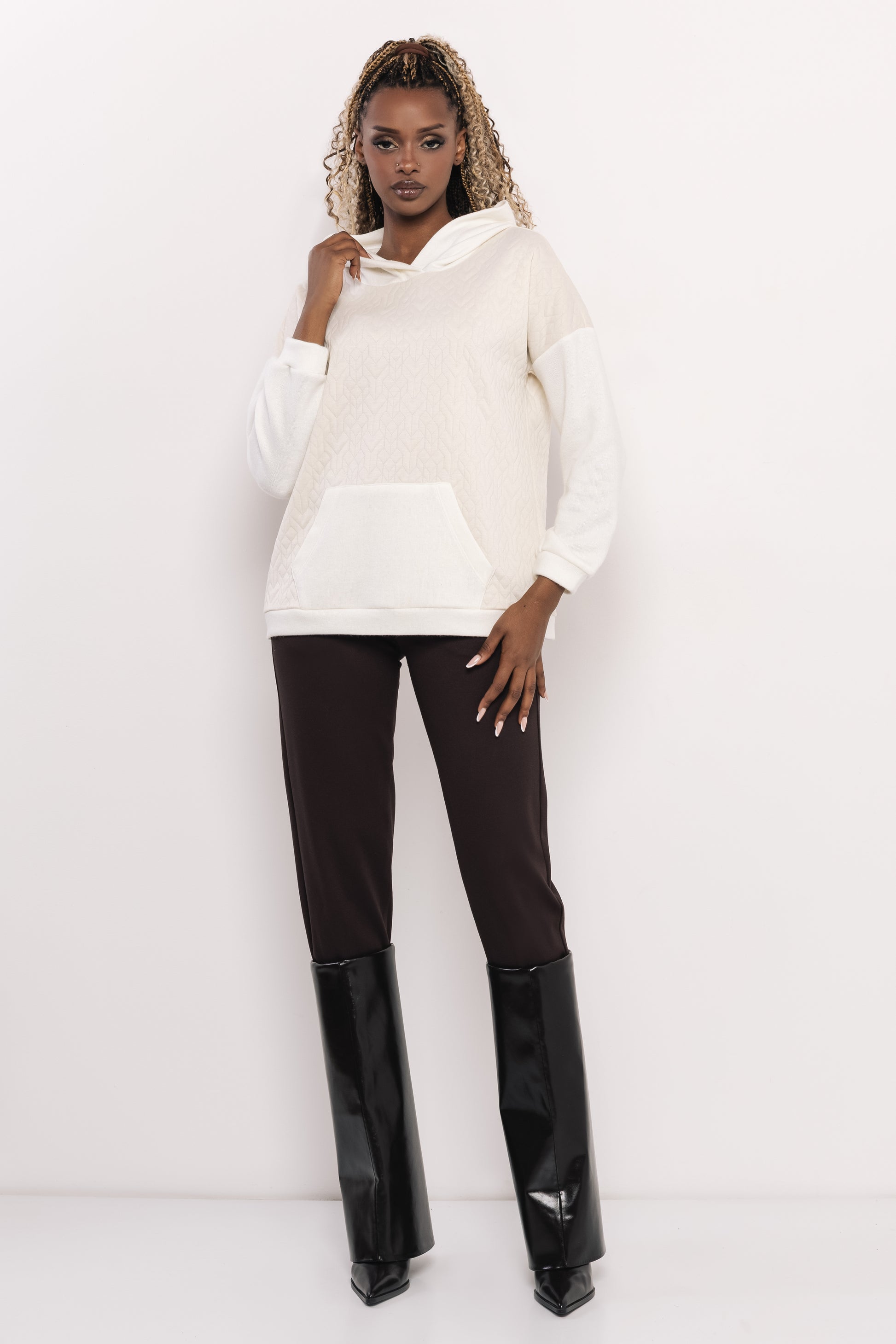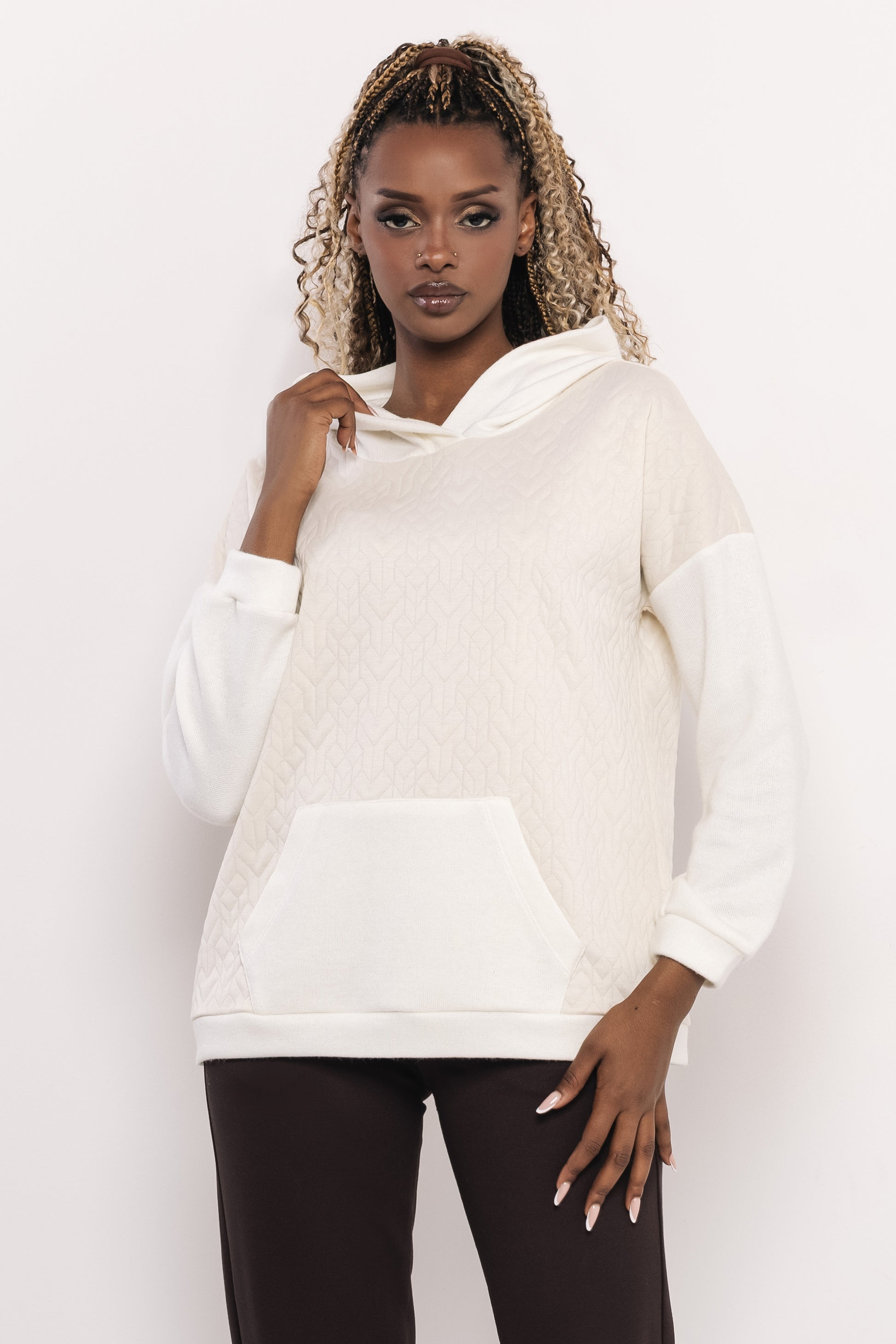 Az AMNESIA Oven pulóver a kényelmes, puha téli darabok egyik legjobb válassztása: sportos, mégis nőies, és nagyon szerethető a steppelt részleteivel. A viszkóz alapú anyag kellemes tapintású, a steppelt textúra pedig különlegessé teszi anélkül, hogy hivalkodó lenne. Az egyméretes fazon kényelmesen áll több alkaton, a kapucni és az elülső zseb pedig praktikus és stílusos egyszerre. Dobd fel farmerrel vagy bőrhatású nadrággal – ez az a pulcsi, amit biztosan sokszor fogsz viselni. Szerezd be az amnesia.hu webshopon, amíg elérhető!