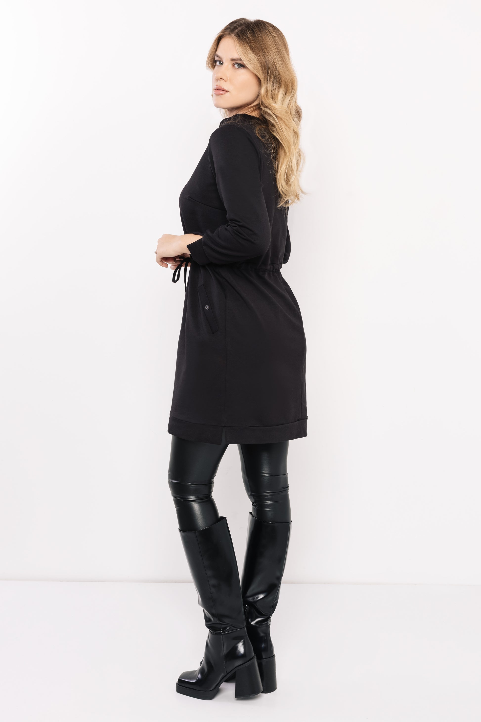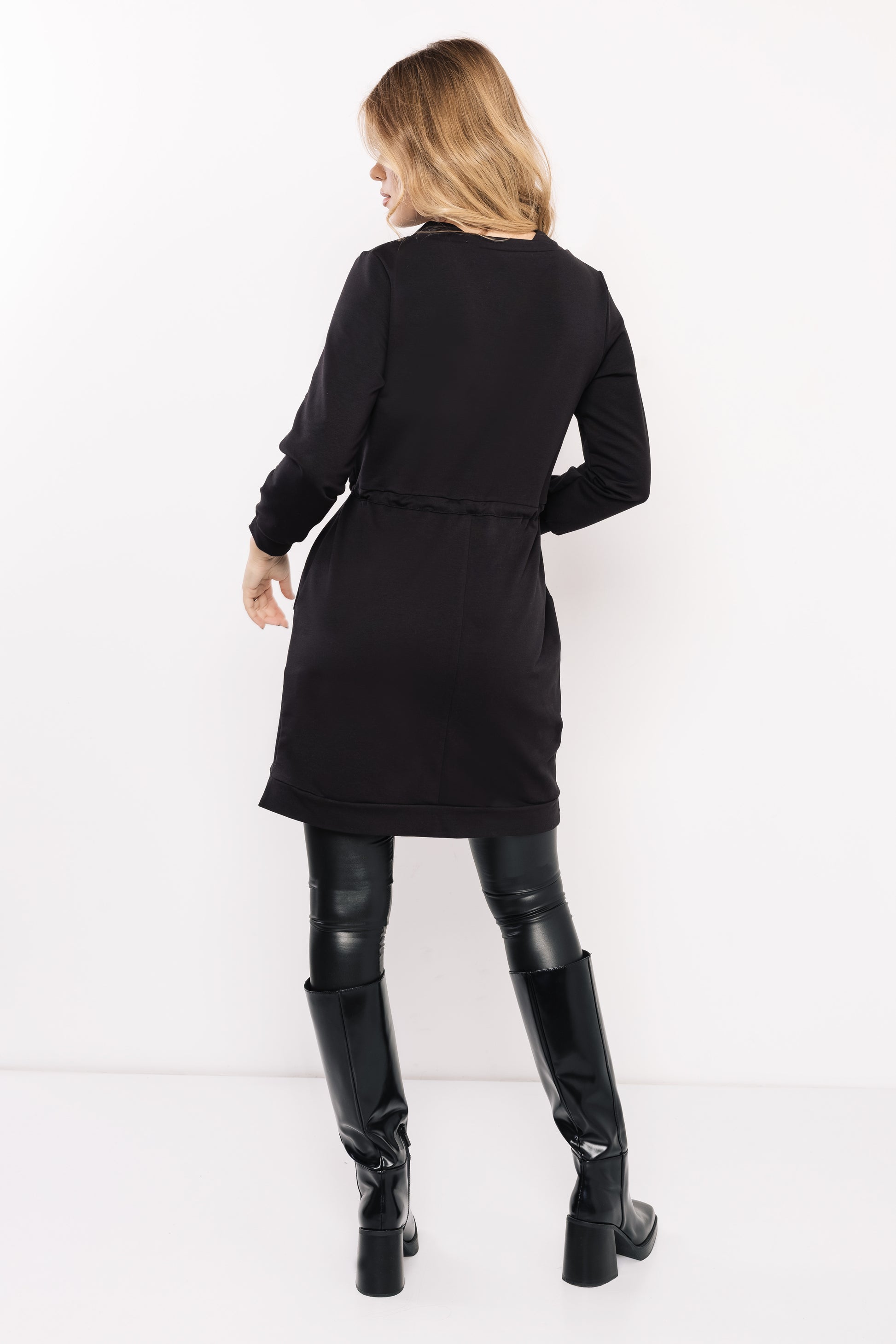 Az AMNESIA Ozin ruha igazi hétköznapi kedvenc: puha futter anyaga és sportosan nőies részletei miatt gyorsan bekerül azok közé a darabok közé, amelyeket újra és újra felveszel. Könnyed, modern és pont annyira laza, amennyire a rohanós napok megkívánják. A fazon egyenes vonalvezetésű, a derékrészen húzózsinórral állítható — így szépen formázza a sziluettet. A magas, letisztult nyakkivágás és a háromnegyedes ujj sportos, mégis csinos hatást ad. Puha futter anyaga kellemesen meleg, jól tartja az alakot, ugyanakkor kényelmes mozgást biztosít. A ruha bordó, fekete és csoki árnyalatban is elérhető. Styling tipp műbőr legging-szel és magas szárú csizmával igazán nőies, míg egyszerű fehér sneakerrel lazább, hétköznapi összeállításban is működik. Fedezd fel a számodra legszebb árnyalatot, és tedd a kosaradba az amnesia.hu webshopon, amíg még elérhető!