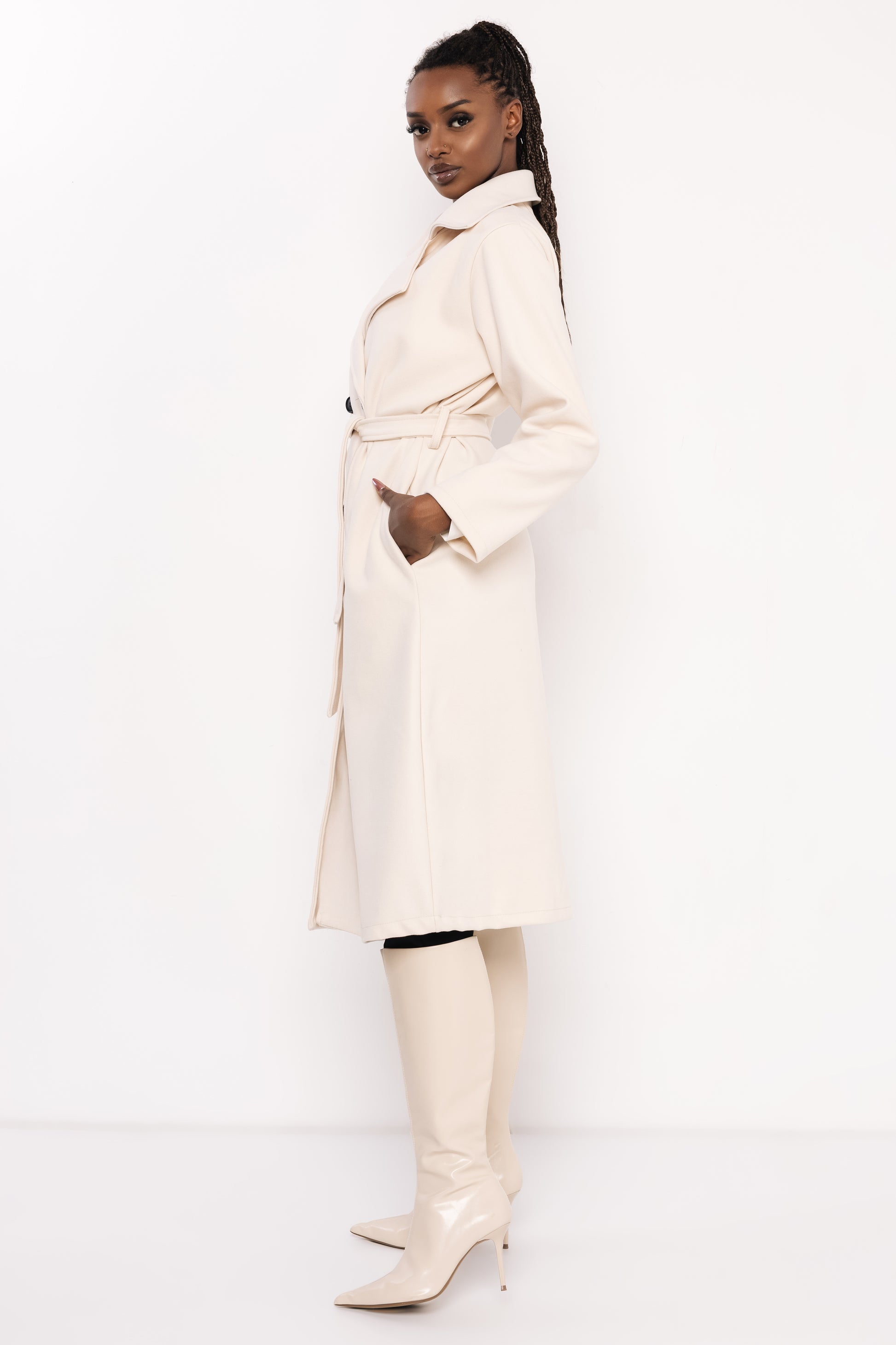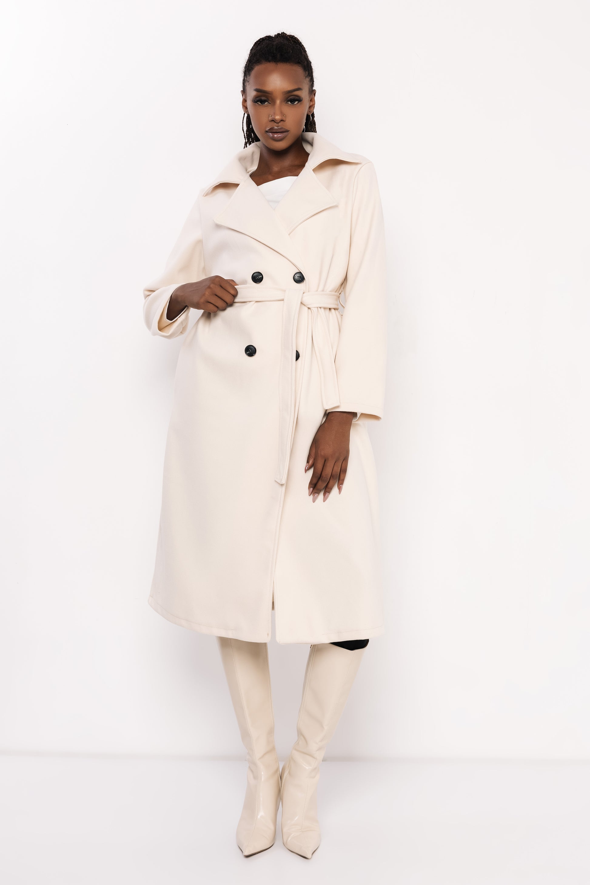 Az AMNESIA Poma kabát elegáns, időtálló darab, amely a klasszikus szövetkabát vonalait követi. Egyenes szabása, dupla soros gombolása és széles, sima gallérja letisztult megjelenést kölcsönöz, míg a derékrészen található öv kiemeli a nőies vonalakat. Praktikus hosszának és sokoldalúságának köszönhetően könnyedén kombinálható elegáns vagy hétköznapi szettekhez is. A kabát egyméretben érhető el, így kényelmesen illeszkedik különböző testalkatokhoz. Több szín közül választhatsz: világos bézs, fangó, sötétkék, melange szürke, sötétbarna, khaki, burgundi és vaj árnyalatban kapható. Viselheted elegáns ruhához és csizmához, hogy kifinomult megjelenést teremts, vagy párosíthatod farmerrel és bakancssal egy laza, városi outfithez. A sokoldalúsága miatt igazi alapdarab a hideg hónapokra. Rendeld meg a kedvenc színedben az amnesia.hu webshopon, és tedd teljessé őszi-téli gardróbodat ezzel a különleges darabbal!