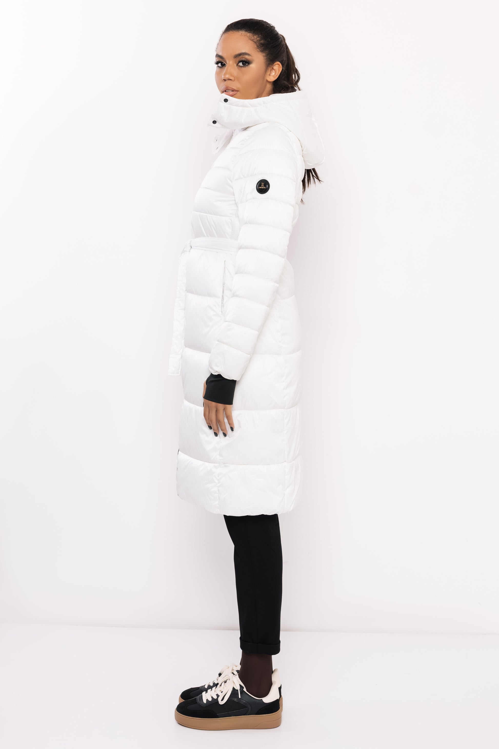 Az AMNESIA Blanka steppelt hosszú kabát a funkcionalitást és a nőies stílust tökéletesen ötvözi. Az öves fazon kiemeli a derekat, miközben a hosszított szabás és a bélelt kapucni maximális meleget biztosít. A cipzár és a finom fényű, steppelt orkán anyag modern, sportos eleganciát kölcsönöz. Viseld farmerrel és sportcipővel egy lezser városi napra, vagy hosszú szárú csizmával és kötött sapkával a nőies téli megjelenéshez. A kék, fehér és fekete színek között minden stílushoz megtalálod a tökéletes árnyalatot. Ha egy stílusos, megbízható kabátot keresel a hideg napokra, válaszd a Blanka kabátot – és vedd meg az amnesia.hu webshopon!