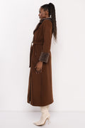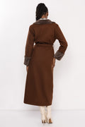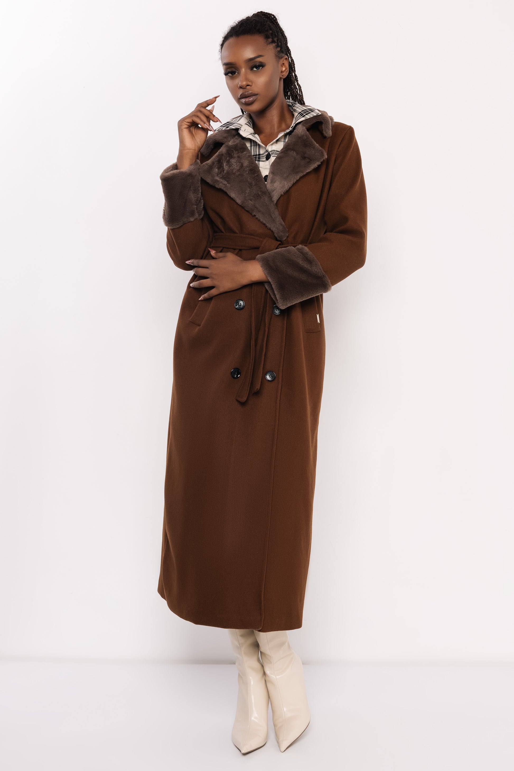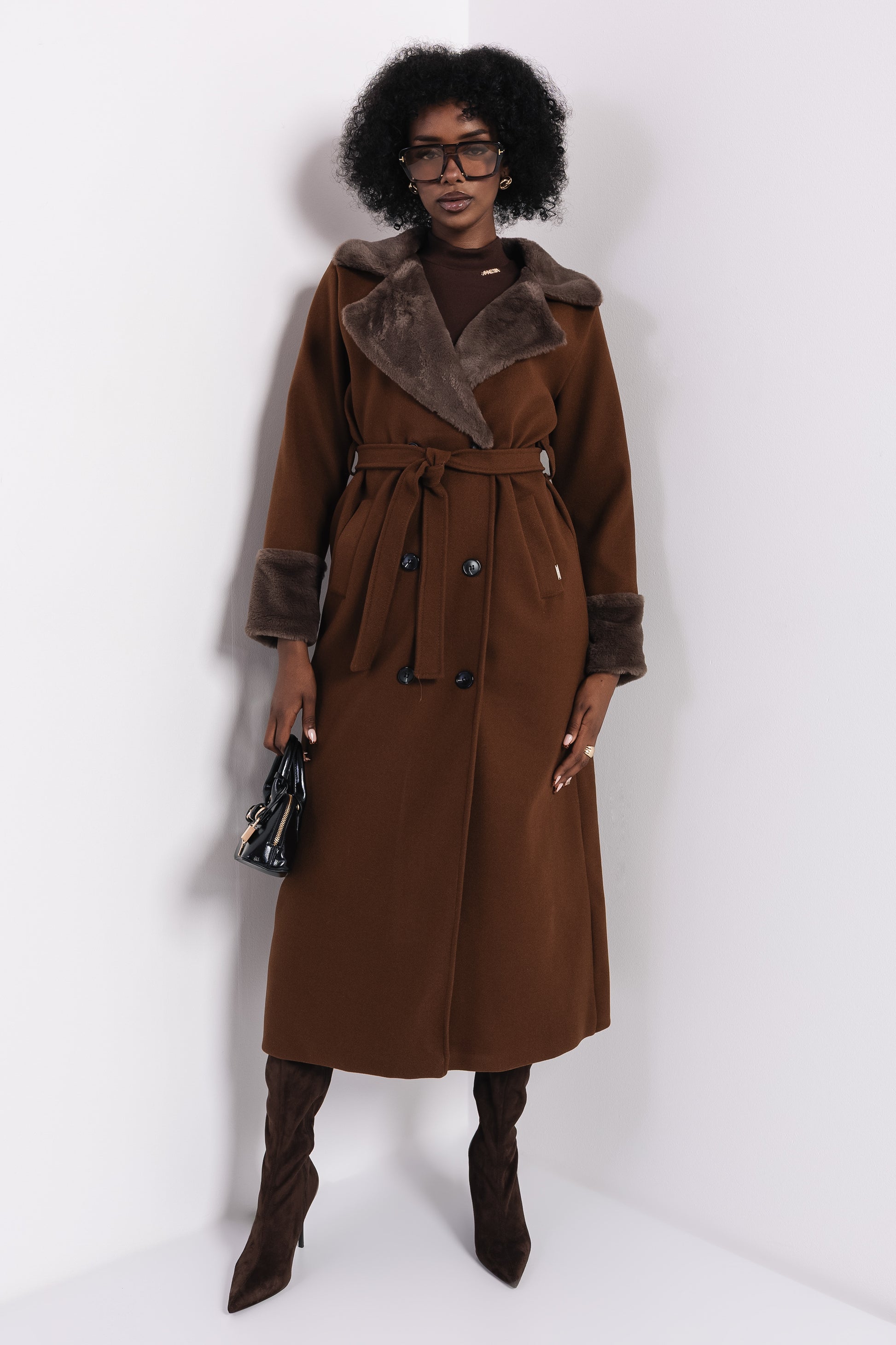 Az AMNESIA Foma szőrös galléros kabát elegáns, mégis karakteres darab a hideg napokra. A hosszított, öves fazon klasszikus nőies sziluettet ad, miközben a szőrmés gallér és mandzsetta különleges textúrát kölcsönöz a megjelenésnek. A dupla gombos záródás és a puha, meleg anyag gondoskodik a komfortérzetről és a kifinomult stílusról. Vaj, fekete, barna és khaki árnyalatban elérhető, így mindenki megtalálhatja a saját kedvencét. A szabásvonalak és a prémes részletek elegáns, mégis lezser hatást keltenek, amely tökéletes a városi, modern nő gardróbjába. Viseld bőrszoknyával és magassarkúval elegáns estére, vagy farmerrel és csizmával egy hétköznapi, de stílusos szettben. Fedezd fel a szezon egyik legikonikusabb kabátját, és szerezd be az amnesia.hu webshopon, amíg elérhető!