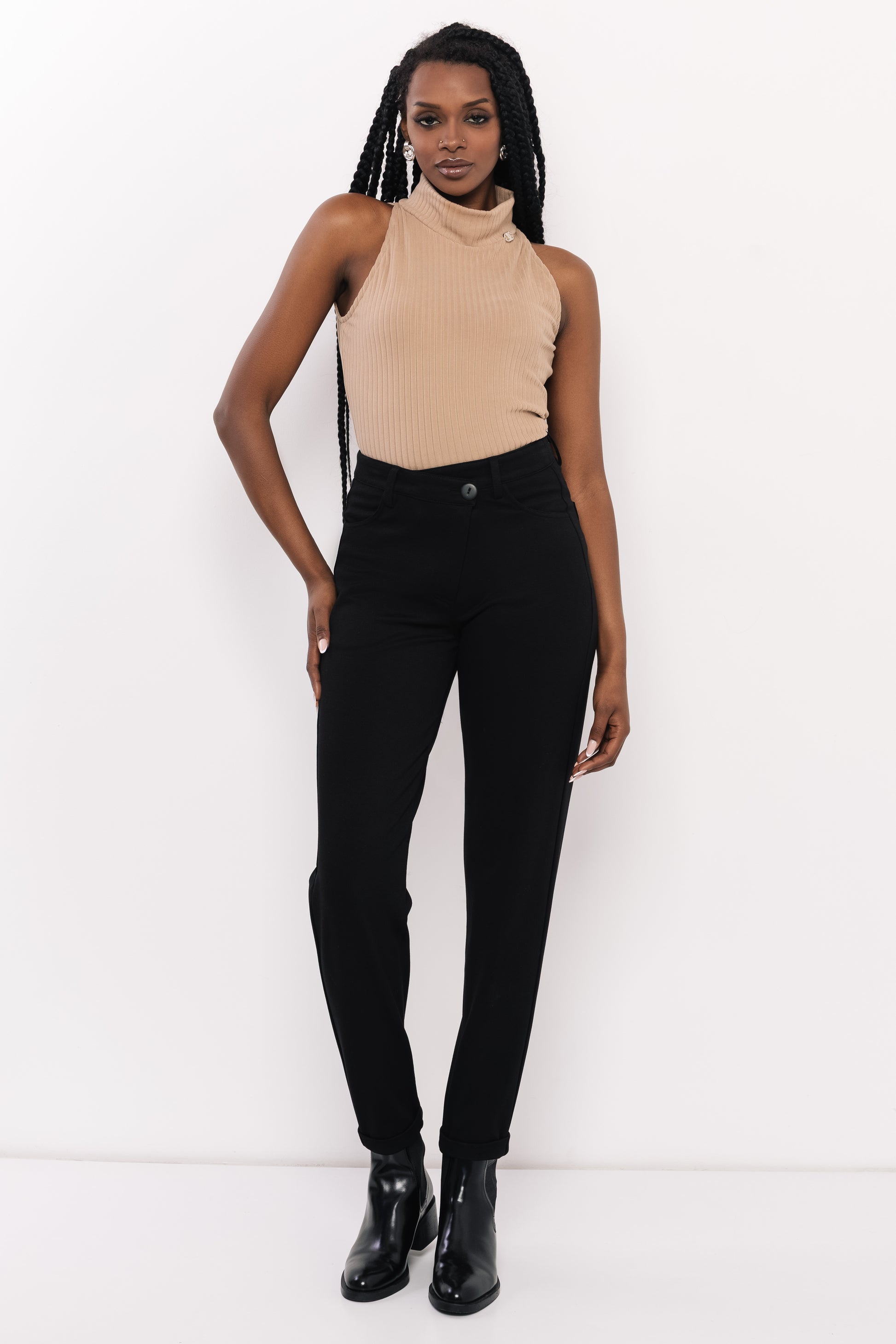 Az AMNESIA Kabul nadrág a modern, letisztult elegancia megtestesítője. A twill anyagból készült, enyhén szűkülő szárú fazon kényelmes, mégis határozott vonalakat ad a sziluettnek. A magasított derékrész optikailag nyújtja az alakot, a szabás pedig minden mozdulatnál tökéletes tartást biztosít. A fekete és csokibarna árnyalat klasszikus alapdarabbá teszi, amely jól kombinálható a kollekció logómintás felsőivel – például az AMNESIA Dini garbóval vagy az AMNESIA hosszú ujjú pólóval. Viseld magassarkú bokacsizmával a nőies megjelenésért, vagy sportcipővel egy laza, hétköznapi stílushoz. Ha egy olyan nadrágot keresel, ami minden alkalomhoz illik, a Kabul nadrág tökéletes választás – nézd meg, és rendeld meg az amnesia.hu webshopon!