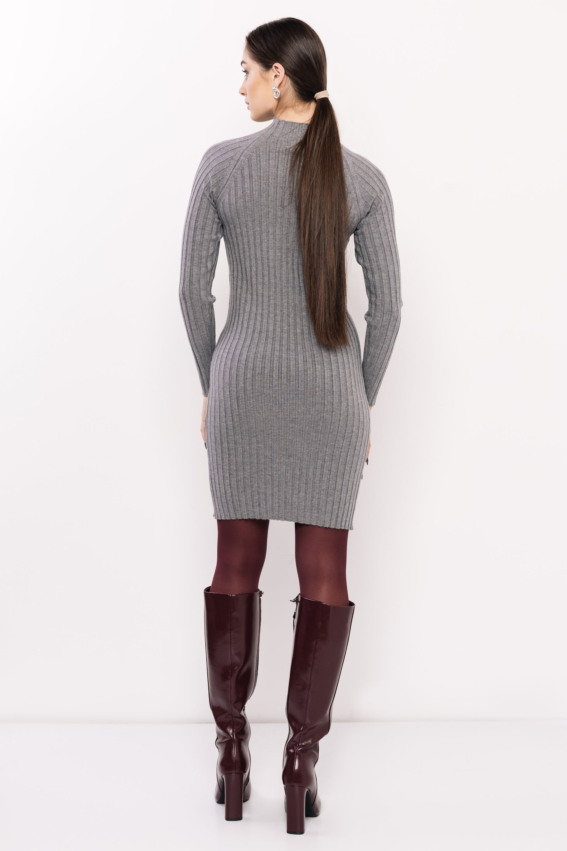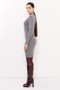 Az AMNESIA kötött szűk ruha a letisztult elegancia megtestesítője. Lágy, rugalmas kötött anyaga kényelmesen simul a testre, míg a magasított, bordás nyakrész és a hosszanti minta optikailag nyújtja az alakot. Egyszerre nőies, kényelmes és modern fazon, amely minden alkalomra tökéletes választás.
