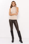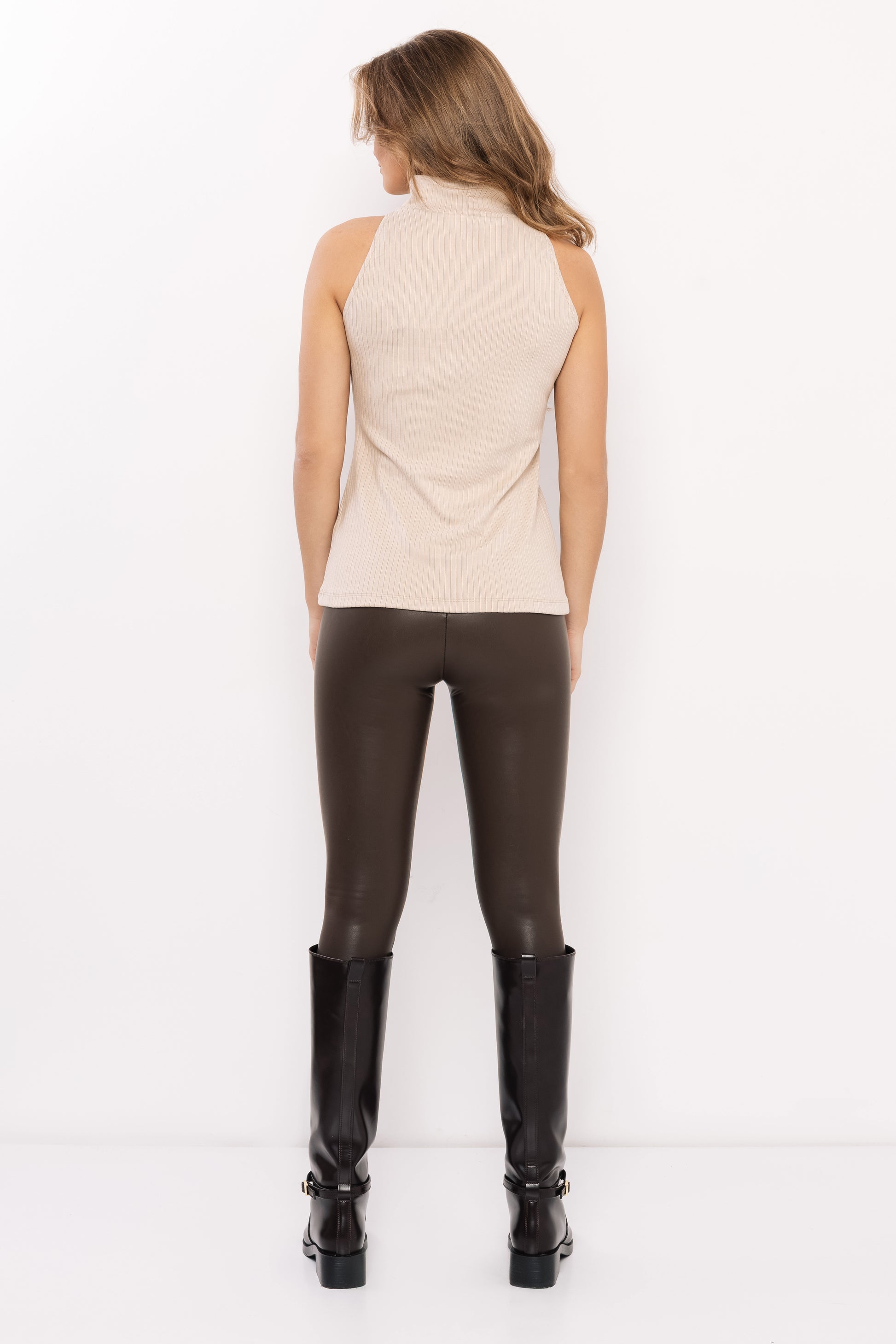 Az AMNESIA Moto top egy letisztult, mégis karakteres darab, amely tökéletesen illeszkedik a szezon rétegezős trendjeihez. A bordás plüss anyag puha tapintású és rugalmas, a magasított állógallér elegáns részlet, amely megnyújtja a nyakat és optikailag karcsúsít. Ujjatlan, testhezálló fazonja önmagában és blézer, zakó vagy kötött mellény alá is ideális. A camel és a bézs árnyalat természetes, meleg tónusai könnyen kombinálhatók más AMNESIA darabokkal, például a műbőr Aurora szoknyával vagy a Nomel mellénnyel. Alapdarabként helyet érdemel minden kapszulagardróbban, hiszen egyszerre nőies, kényelmes és sokoldalú. Ha olyan topot keresel, amit akár irodába, akár hétvégi programra is felkaphatsz, a Moto top tökéletes választás – vedd meg az amnesia.hu webshopon!