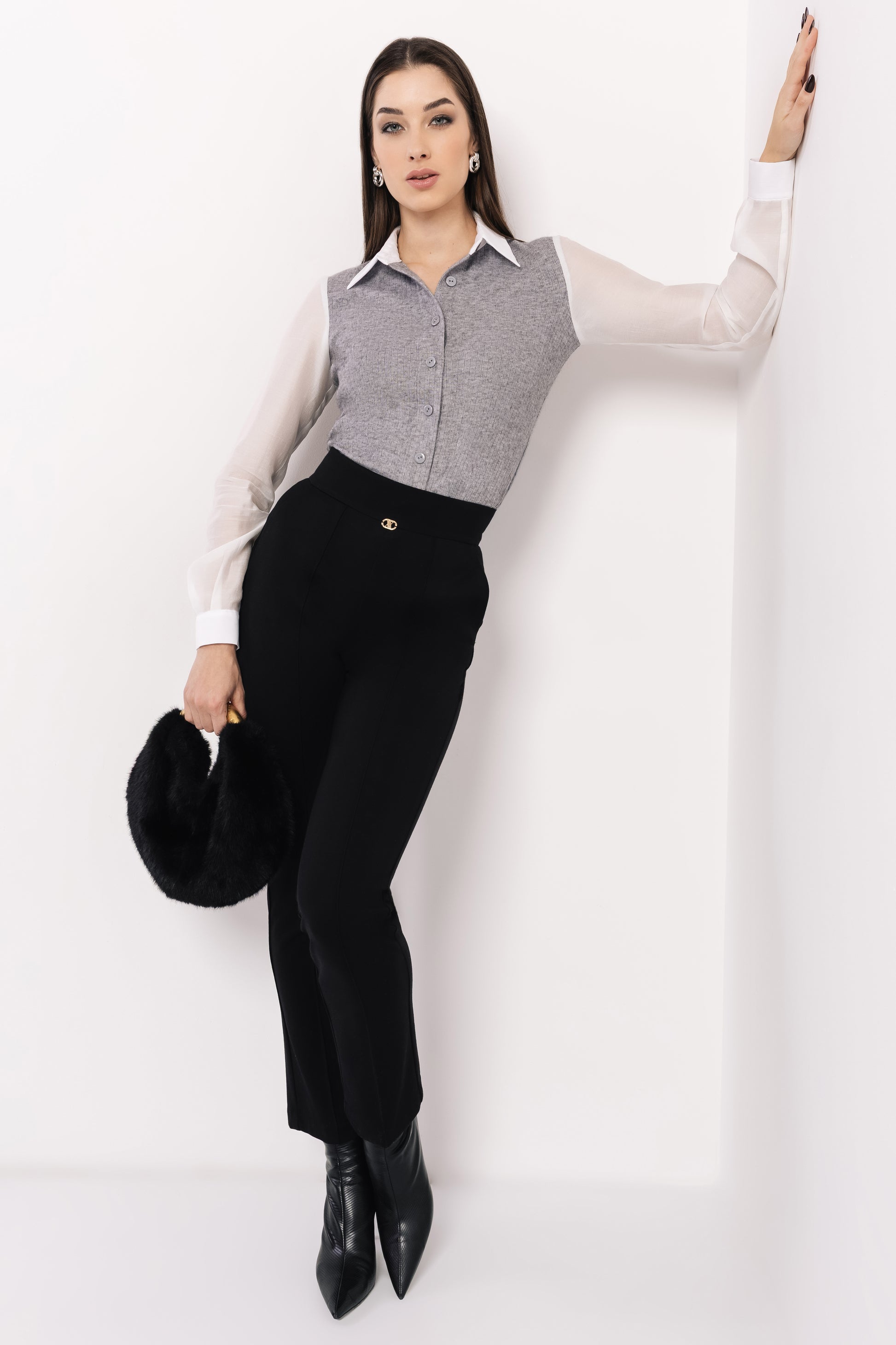 Az AMNESIA Peratu felső az örök klasszikus ing újragondolt, nőies verziója. A finom kötött anyag és az áttetsző ujjrész légies eleganciát ad, miközben karcsúsított szabása gyönyörűen formálja az alakot. Viseld irodába blézerrel és nadrággal, vagy egyenes szoknyával elegáns megjelenéshez – a fazon letisztultsága miatt bármilyen stílushoz illeszthető. Fekete, ekrü és szürke színekben elérhető, így könnyen megtalálhatod a saját kedvenc árnyalatod. Tedd időtlenné a gardróbod ezzel az alapdarabbal – válaszd ki kedvenc színed, és rendeld meg az amnesia.hu webshopon még ma!