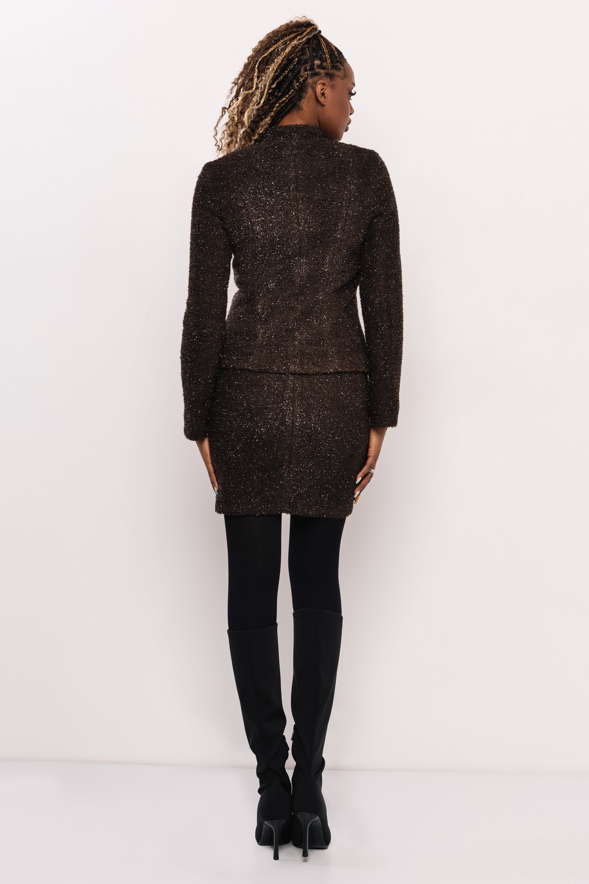 Az AMNESIA Petric blézer finoman elegáns, modern megjelenést ad – a lurex szövet visszafogott fénye pedig emeli az egész szett hangulatát. Könnyed, de karakteres darab, amely a hétköznapokban és alkalmakra is remek választás. A blézer letisztult fazonnal, kerekített nyakkivágással és enyhén karcsúsított vonalakkal készült, amelyek szépen formálják a felsőtestet. Lurex szövetből készül csoki és drapp színben, S és M méretben érhető el, a hozzá illő AMNESIA Frutta ruhával vagy szoknyával pedig harmonikus, elegáns összeállítást ad. Stílusban jól működik kötött garbókkal vagy testhezálló ruhákkal viselve. Ha egy időtlen, mégis különleges felsőt keresel, az AMNESIA Petric blézert érdemes most megrendelni az amnesia.hu webshopon.