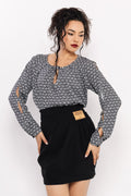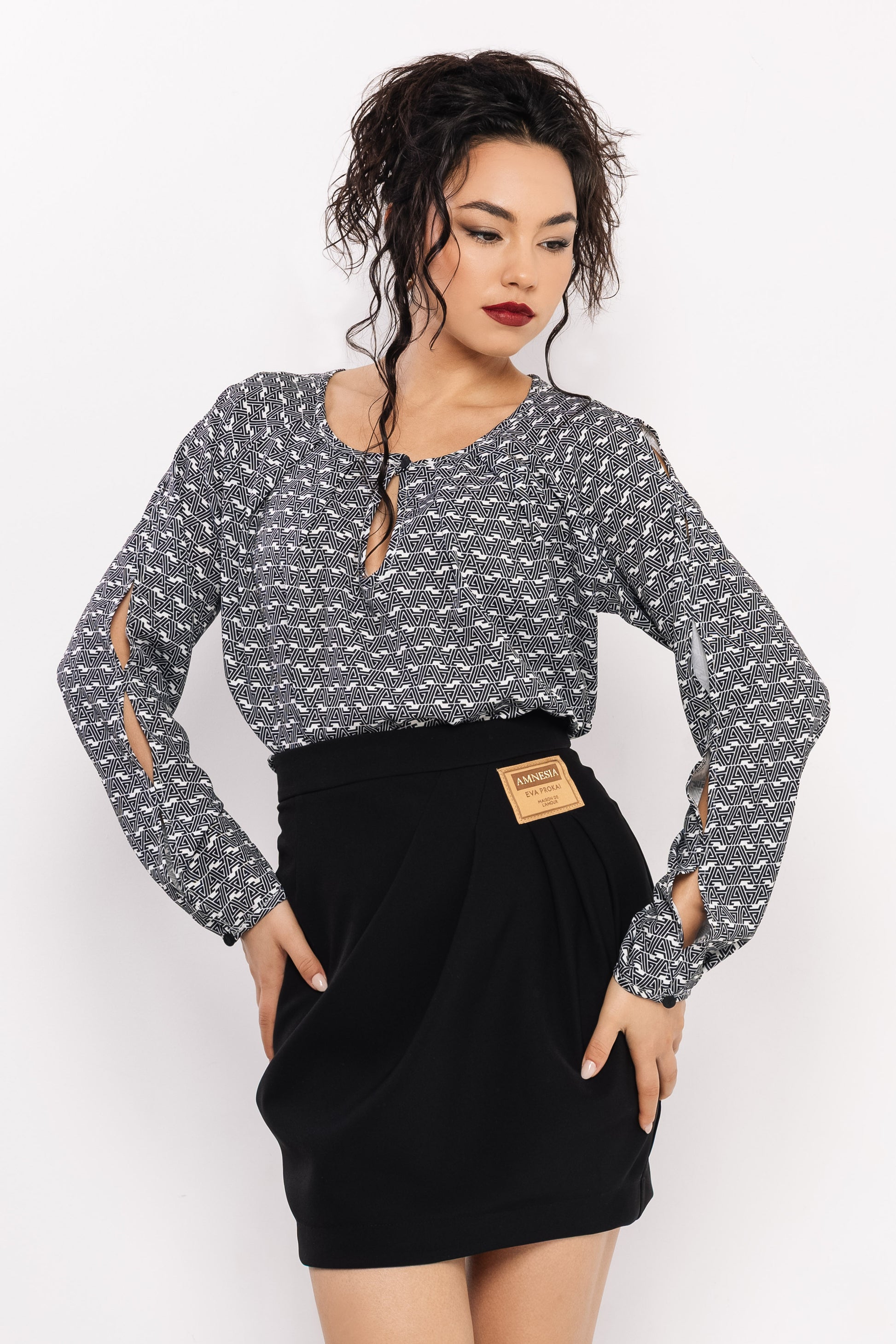 Az AMNESIA Meshi felső a különleges részletek kedvelőinek tökéletes választás. Könnyed latina anyagból készült, amely szép esésével és kellemes viseletével emeli ki a darab nőies karakterét. A fekete–ekrü „A” mintás változat modern, geometrikus, míg az egyszínű bézs verzió letisztult, elegáns alapdarabként illeszkedik a ruhatárba. A felső különlegessége a hosszú ujján végigfutó hasíték, amely egyszerre játékos és stílusos részlet. A kerek nyakkivágásnál található apró megkötő romantikus hangulatot ad, az egyméretes kialakítás pedig sokféle testalkathoz jól passzol. Akár szoknyával, akár nadrággal kombinálod, a Meshi felső garantáltan a figyelem középpontjába helyez. Fedezd fel ezt az egyedi darabot az amnesia.hu webshopban!