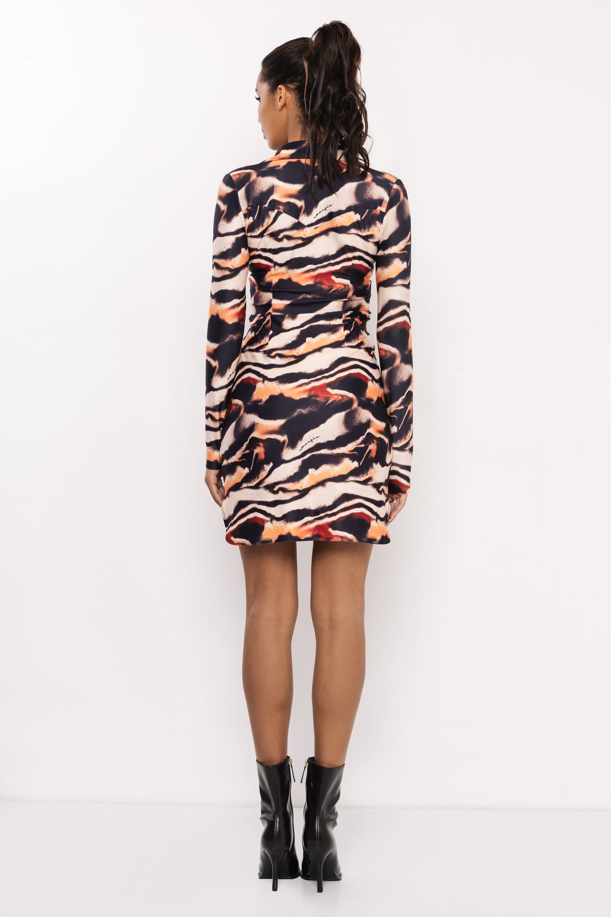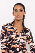 Fazonját klasszikus inggallér és gombos záródás határozza meg, amelyet a mellrészen elhelyezett zsebek egészítenek ki. Az AMNESIA logóval díszített, márványhatású minta modern, mégis időtálló karaktert ad a darabnak, amely biztosan nem marad észrevétlen.