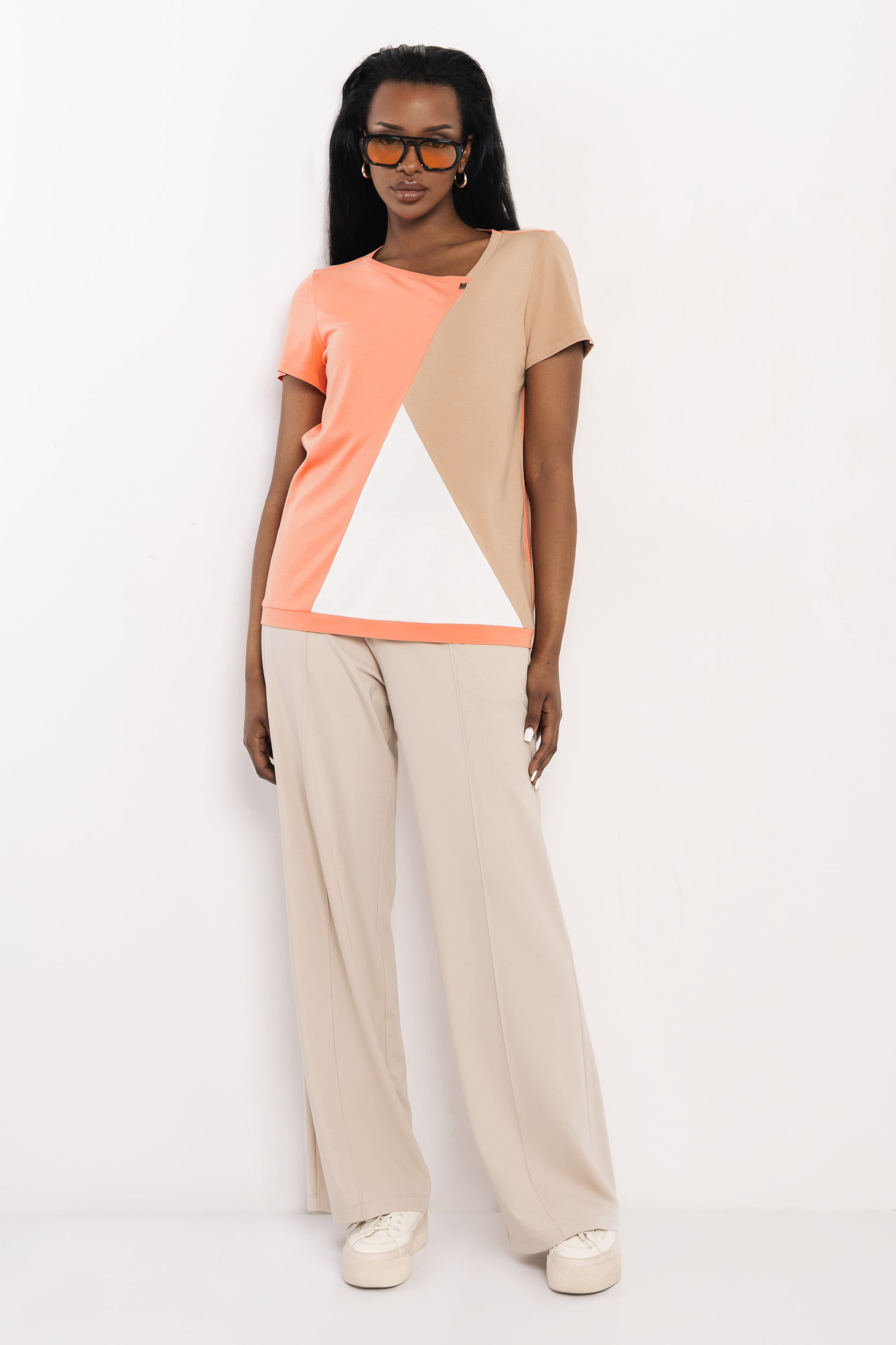 Az AMNESIA Kolo felső karakteres, geometrikus mintájával igazán figyelemfelkeltő darab. A kontrasztos színek játékossá teszik, miközben megmarad a letisztult, modern stílus. A vékony punto anyag rugalmas, puha és jól szellőzik, így egész nap komfortos viselet. Narancs-ekrü-bézs színben érhető el, egyméretben. Viseld egyszerű nadrágokkal, hogy a felső kapja a főszerepet. Szerezd be az amnesia.hu webshopon, amíg elérhető!