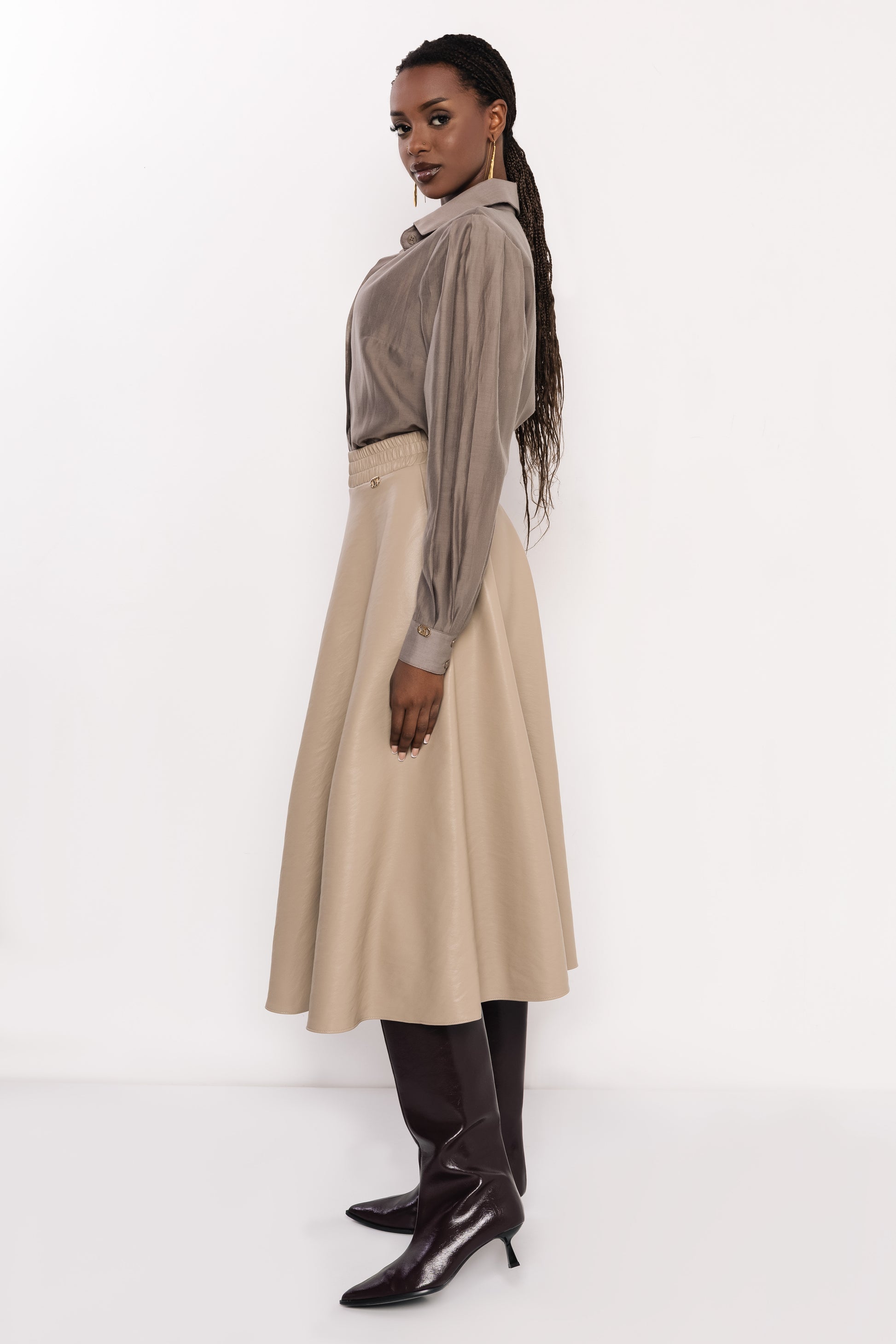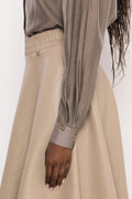 Az AMNESIA Rikarda blúz tökéletes választás, ha nőies, karakteres megjelenést szeretnél. A klasszikus inggallér és az enyhén puffos ujjak különleges karaktert adnak ennek a modern darabnak, miközben a ragyogó bordó árnyalat azonnal magára vonja a tekintetet. Kifinomult, mégis trendi választás a hétköznapokban és alkalmakra is. Puha voile anyagból készült, amely finom esésével és enyhe fényével luxus érzetet kölcsönöz viselőjének. A karcsúsított szabásvonal kiemeli a nőies sziluettet, a mandzsettákon található apró gombdíszítés pedig visszafogott eleganciát sugároz. A kényelmes viseletet a természetes anyag biztosítja, amely kellemes tapintású és jól szellőzik. Viseld bőrhatású nadrággal egy karakteres, esti megjelenéshez, vagy párosítsd szövetszoknyával, ha elegáns, irodai szettet szeretnél. Fedezd fel az AMNESIA Rikarda blúzt az amnesia.hu webshopon, és emeld új szintre az őszi outfited stílusát!