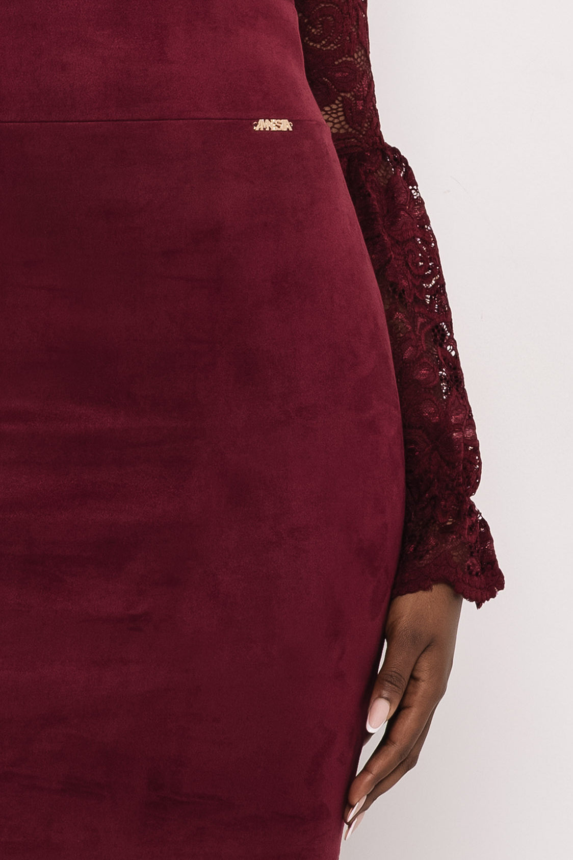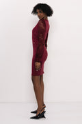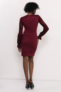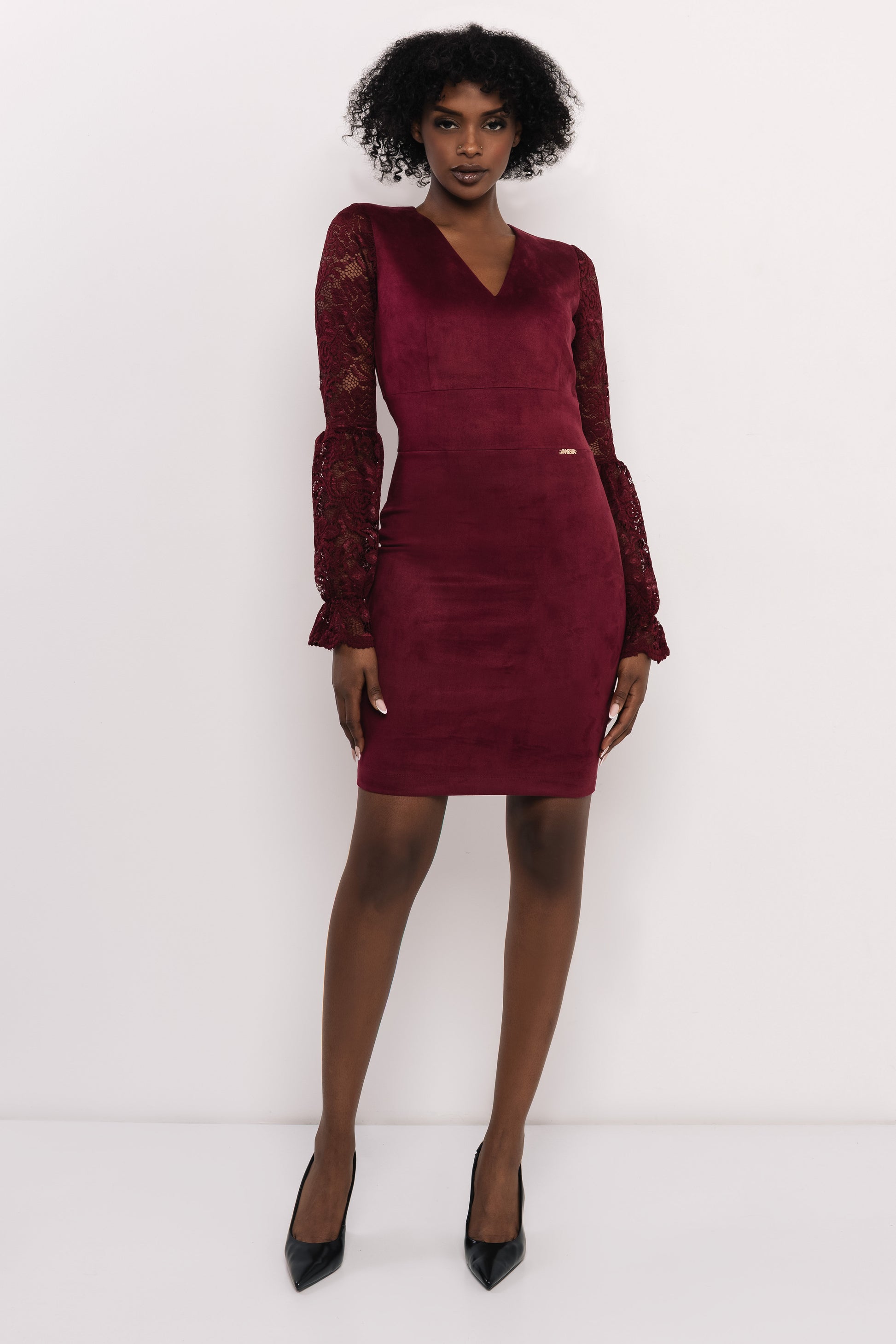 Az AMNESIA Dotio ruha egy igazi különleges alkalmi darab: elegáns, nőies és látványos. A puha velúr és a finom csipke találkozása egyszerre ad modern és klasszikus hangulatot – pontosan azt a fajta kifinomultságot, amit egy ünnepi vagy esti megjelenés megkíván. A fazon karcsúsított, térd fölé érő szabással formálja az alakot, a V-kivágás pedig szépen nyújtja a felsőtestet. A hosszú, csipkés ujjak, a végükön bájos fodorral, elegáns, romantikus karaktert adnak a ruhának. A puha velúr gyönyörűen simul, miközben komfortos viseletet ad. Bordó és fekete színben is elérhető. Styling tipp: viseld letisztult magassarkúval és apró ékszerekkel, hogy a csipke igazán érvényesüljön. Hűvösebb estékre jól mutat hozzá egy rövid fazonú AMNESIA kabát vagy műszőrme mellény is. Ha egy igazán nőies, alkalmi ruhát keresel, amiben magabiztosnak érzed magad, a Dotio ruha nem fog csalódást okozni — fedezd fel az amnesia.hu webshopon!