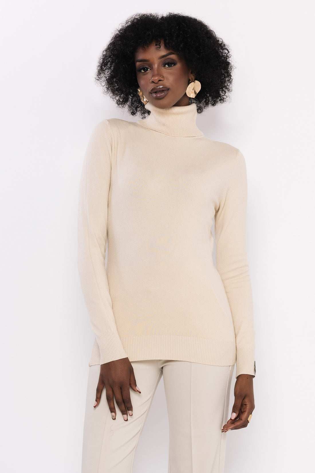 Bodza garbónyakú pulóver homok