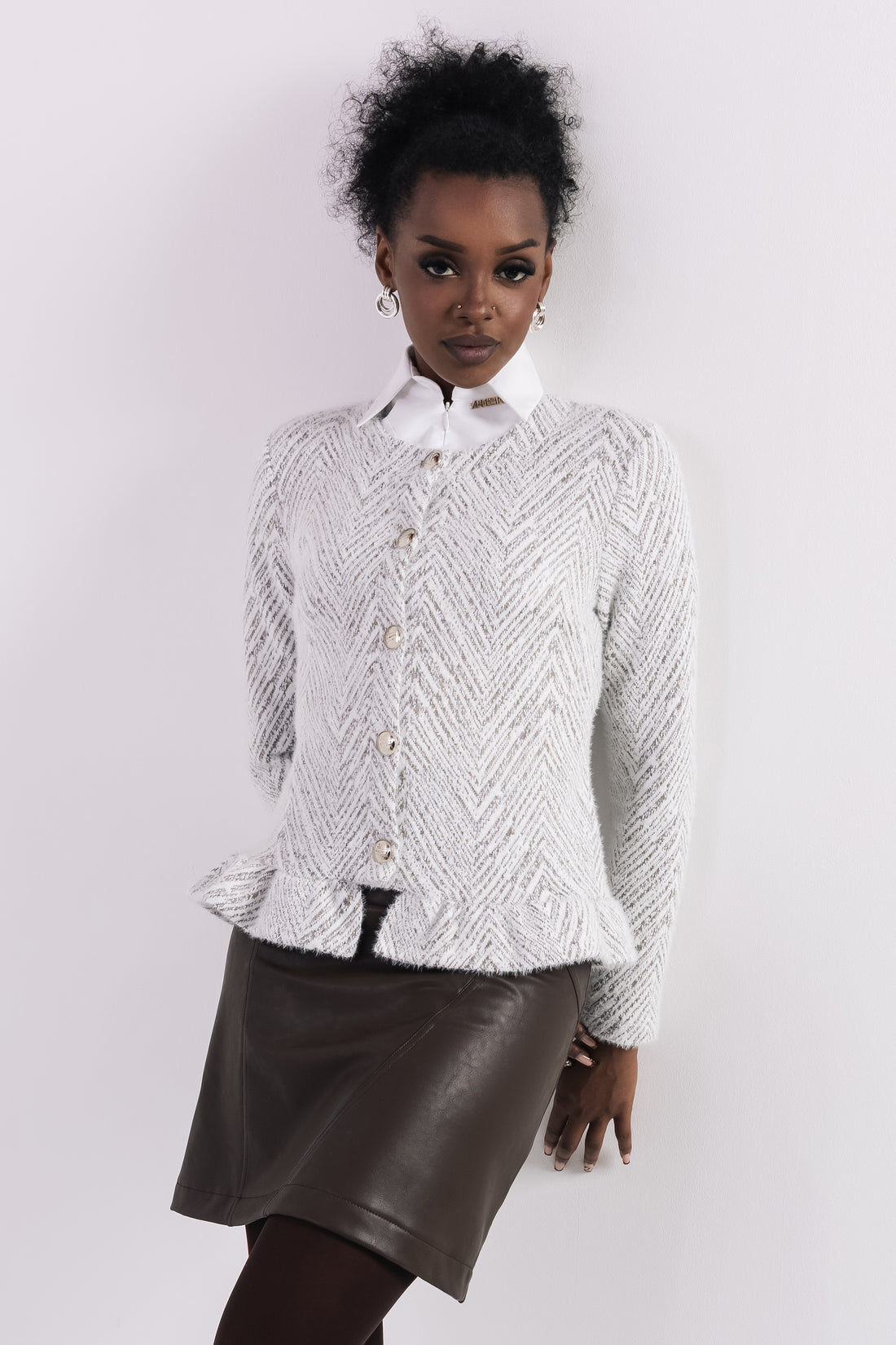 Az AMNESIA Hogja kardigán a klasszikus elegancia és a modern nőiesség találkozása. A szőrös jacquard...