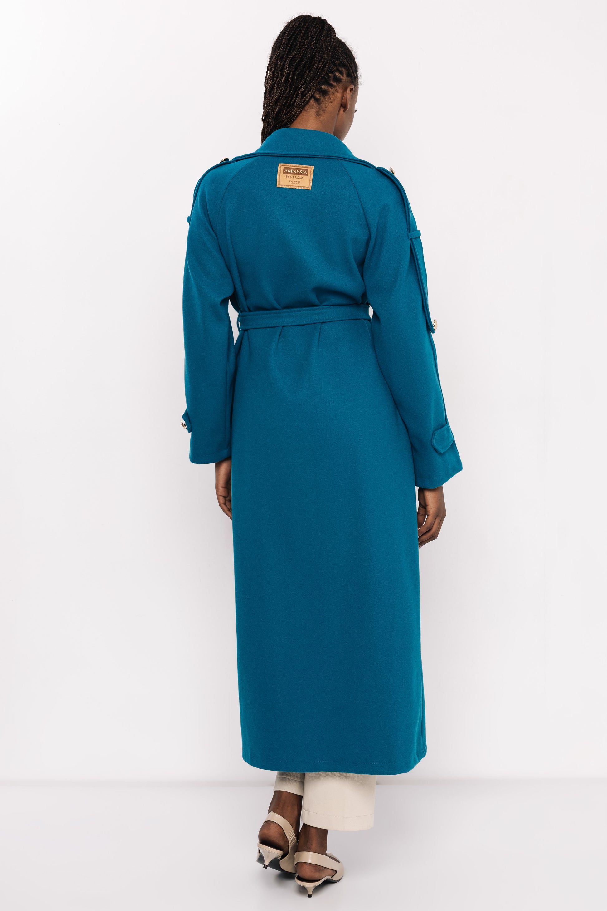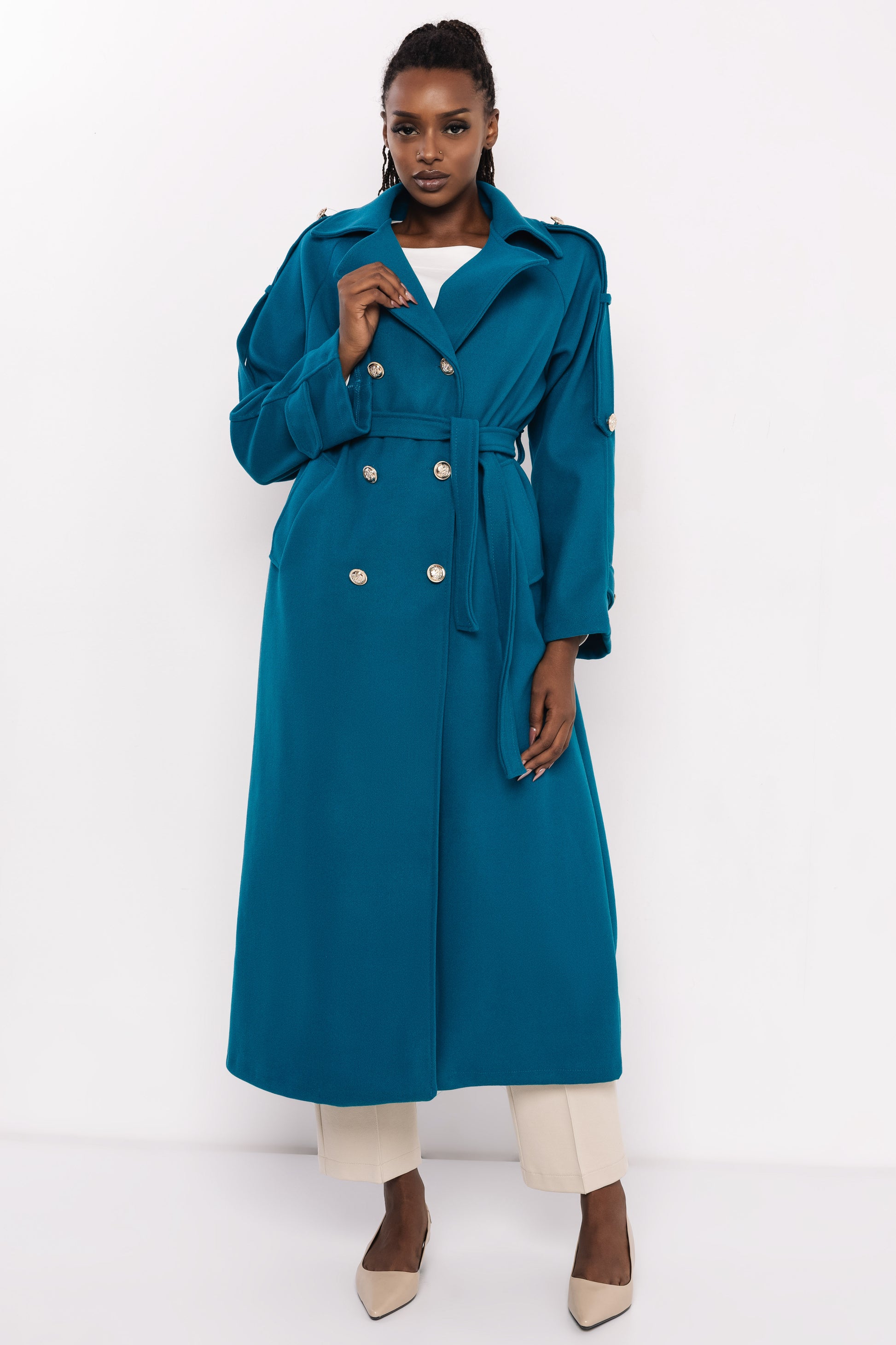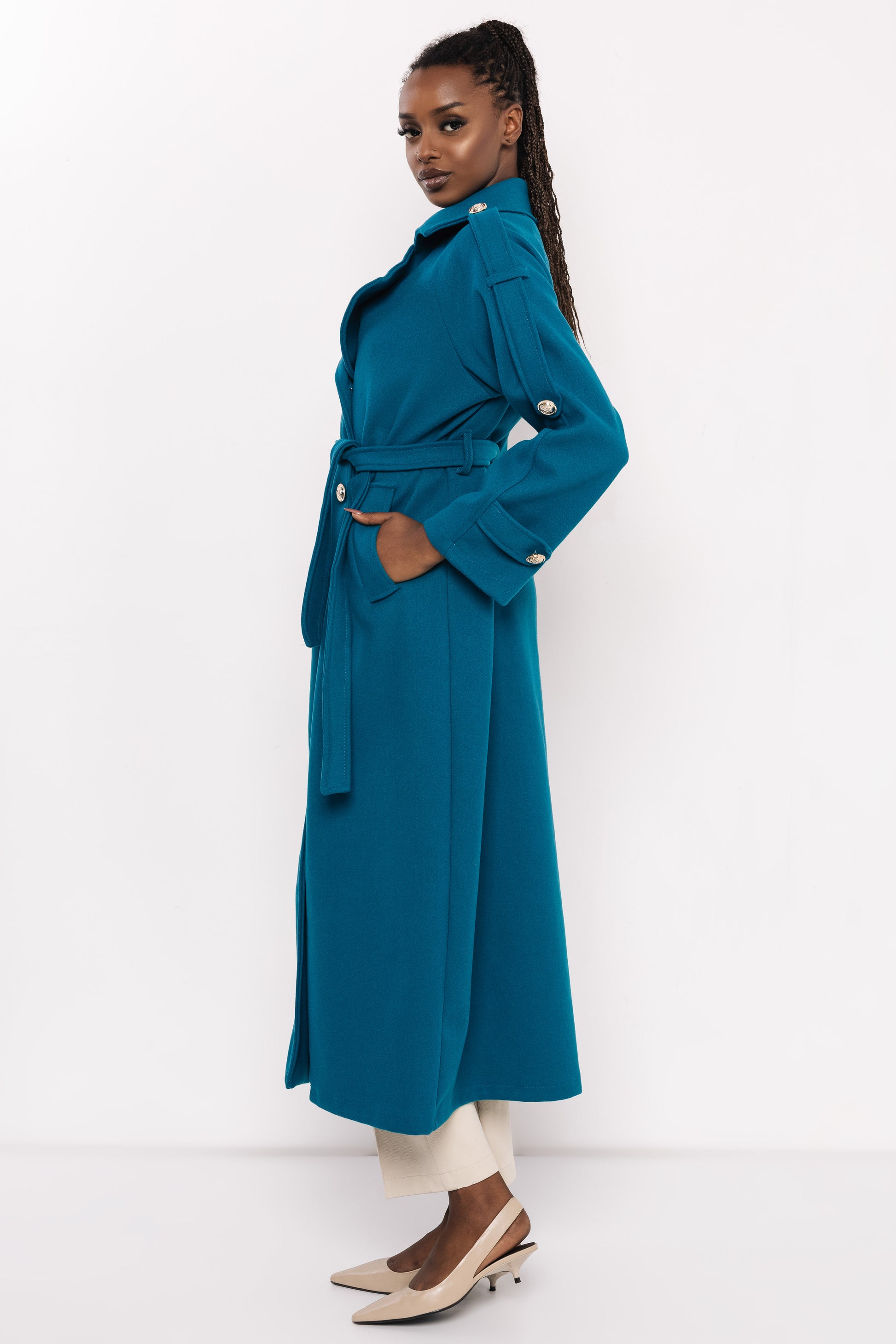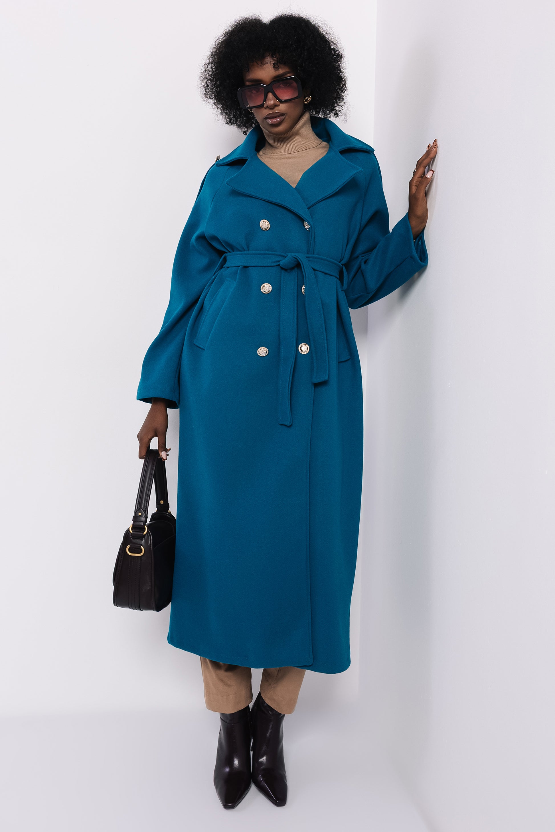 Az AMNESIA Admira aranygombos kabát elegáns és karakteres darab, amely az őszi-téli szezon egyik legkülönlegesebb stílusát képviseli. A klasszikus, kétsoros gombolás és a vállpántok határozott, mégis nőies megjelenést kölcsönöznek, a derékban megkötős fazon pedig gyönyörűen formálja az alakot. A finom esésű anyag és a markáns gombdíszítés tökéletesen ötvözi a modern eleganciát és a letisztult stílust.
