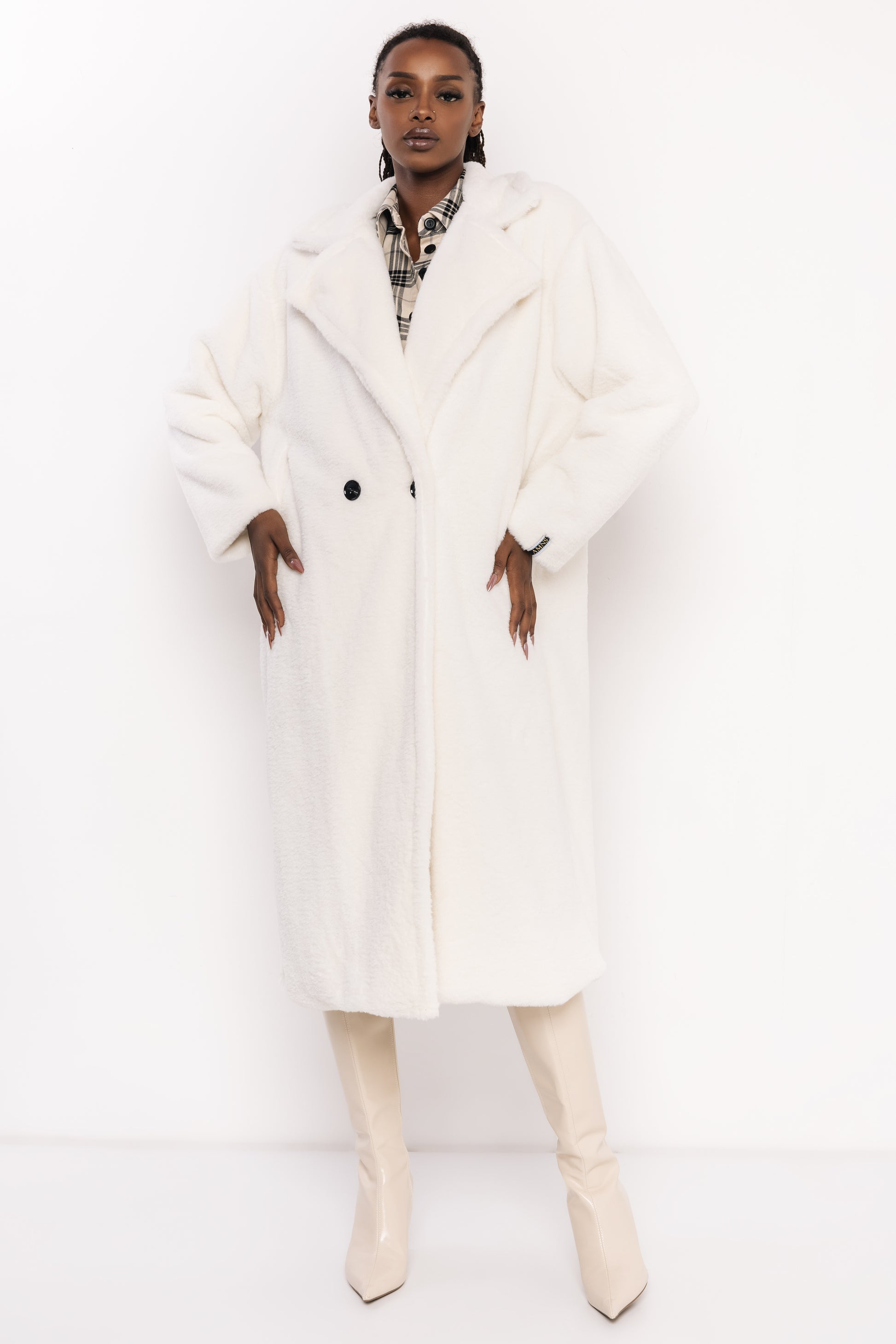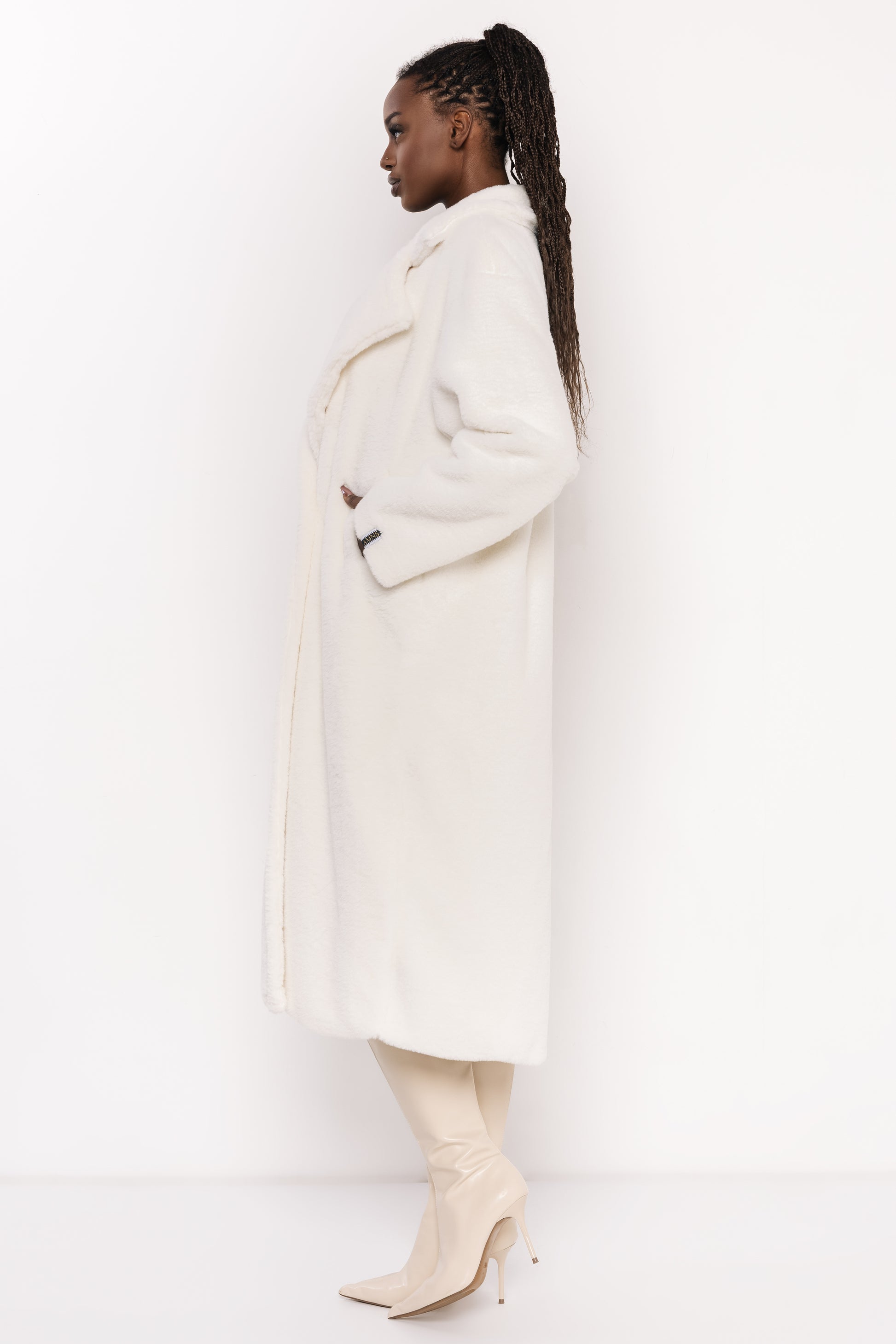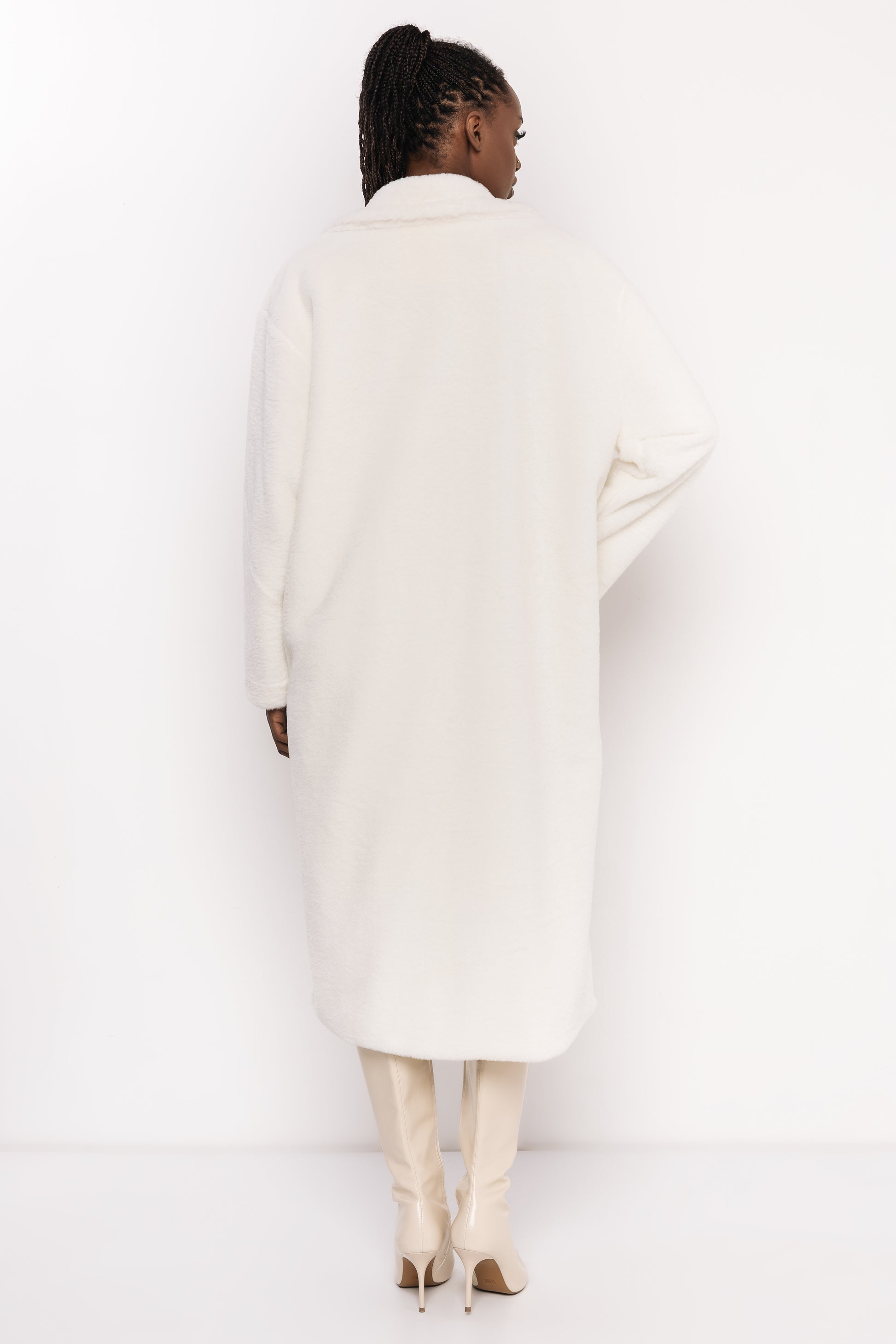 Az AMNESIA Floris szőrme kabát az igazi őszi-téli kedvenc, amely egyesíti a stílust és a kényelmet. Klasszikus, térd alá érő, egyenes szabású darab, karakteres hajtókás gallérral és oldalsó zsebekkel. A kabát prémium minőségű, puha tapintású műszőrméből készült, amely melegen tart a hideg napokon, miközben elegáns megjelenést biztosít.