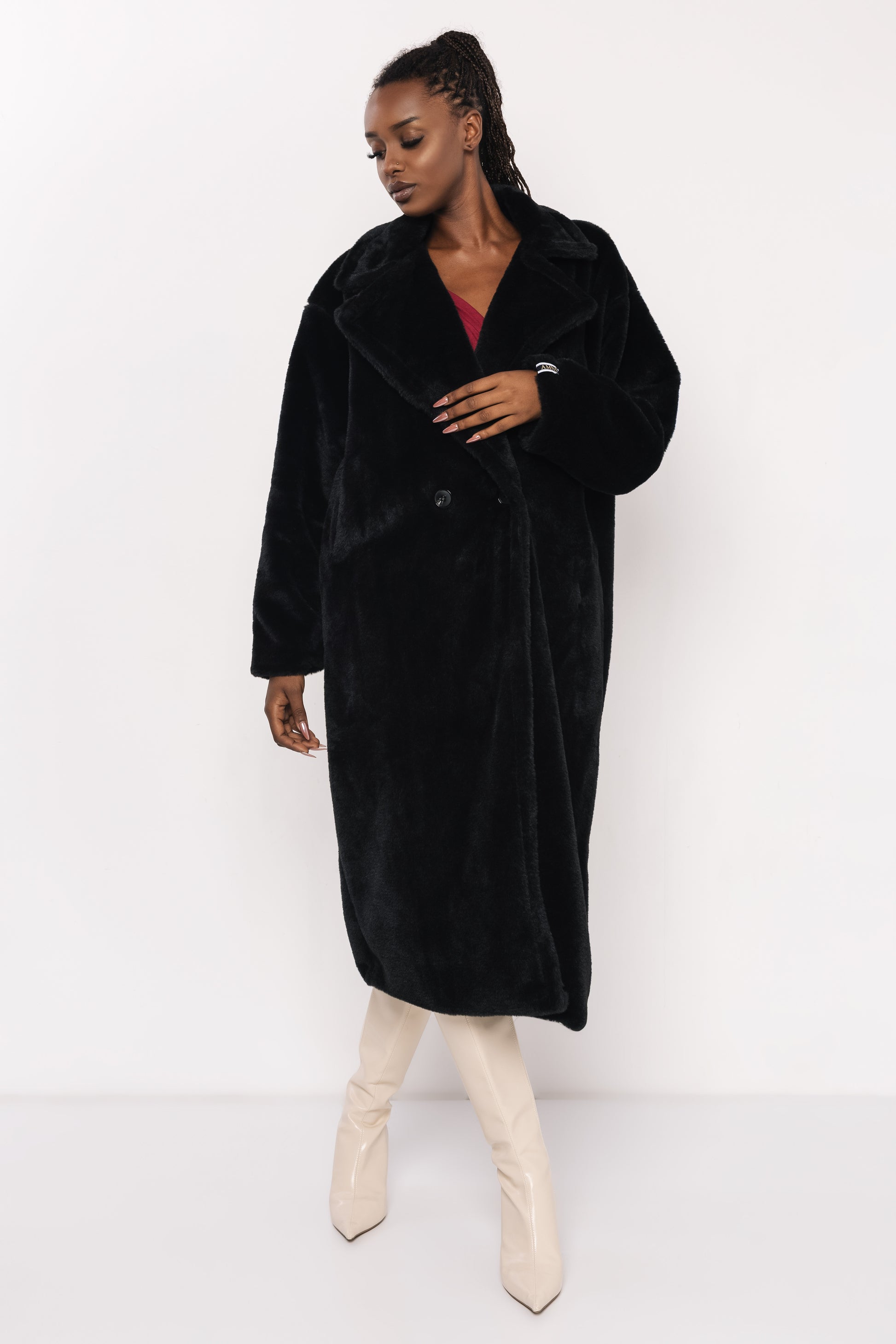 Az AMNESIA Floris szőrme kabát az igazi őszi-téli kedvenc, amely egyesíti a stílust és a kényelmet. Klasszikus, térd alá érő, egyenes szabású darab, karakteres hajtókás gallérral és oldalsó zsebekkel. A kabát prémium minőségű, puha tapintású műszőrméből készült, amely melegen tart a hideg napokon, miközben elegáns megjelenést biztosít.