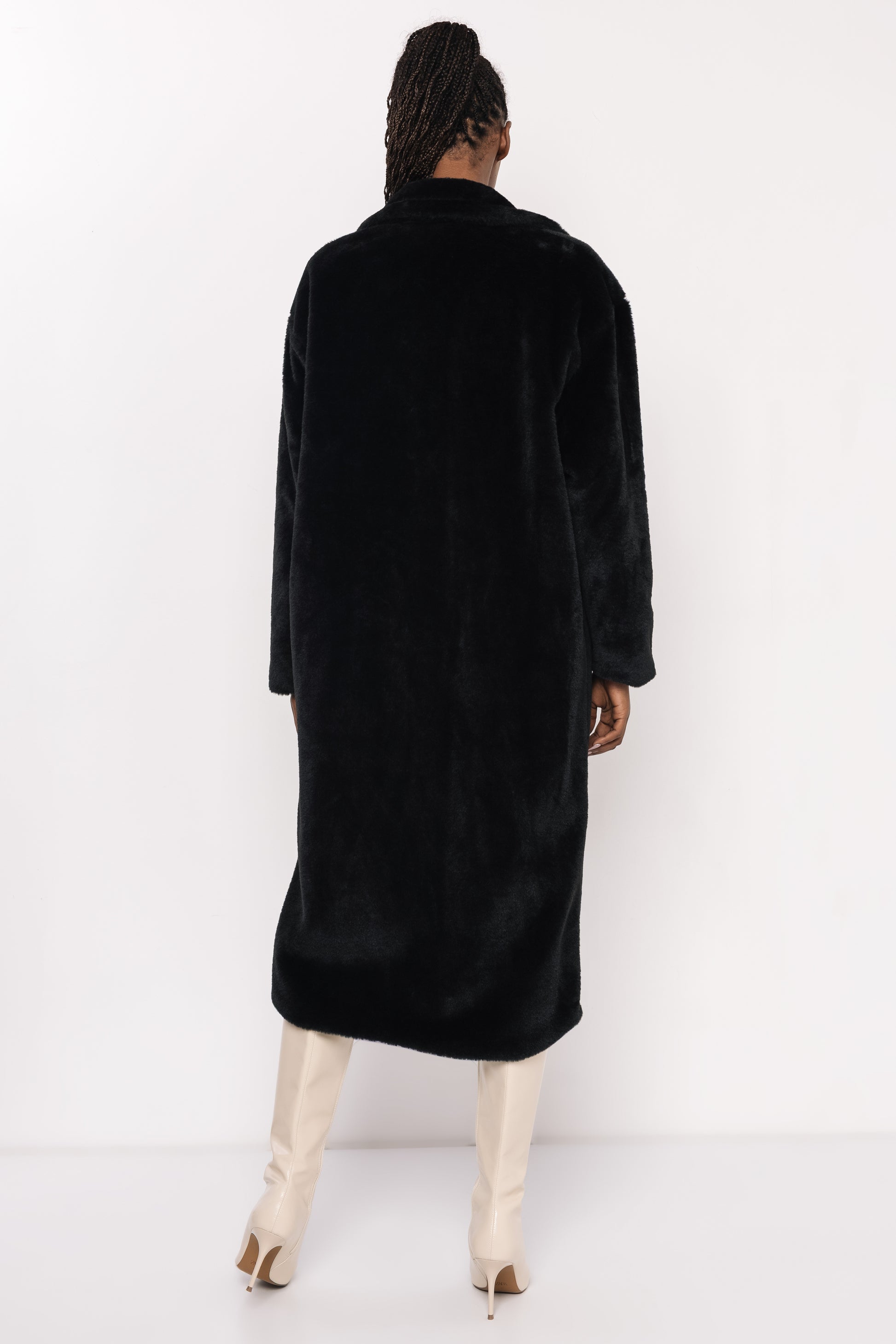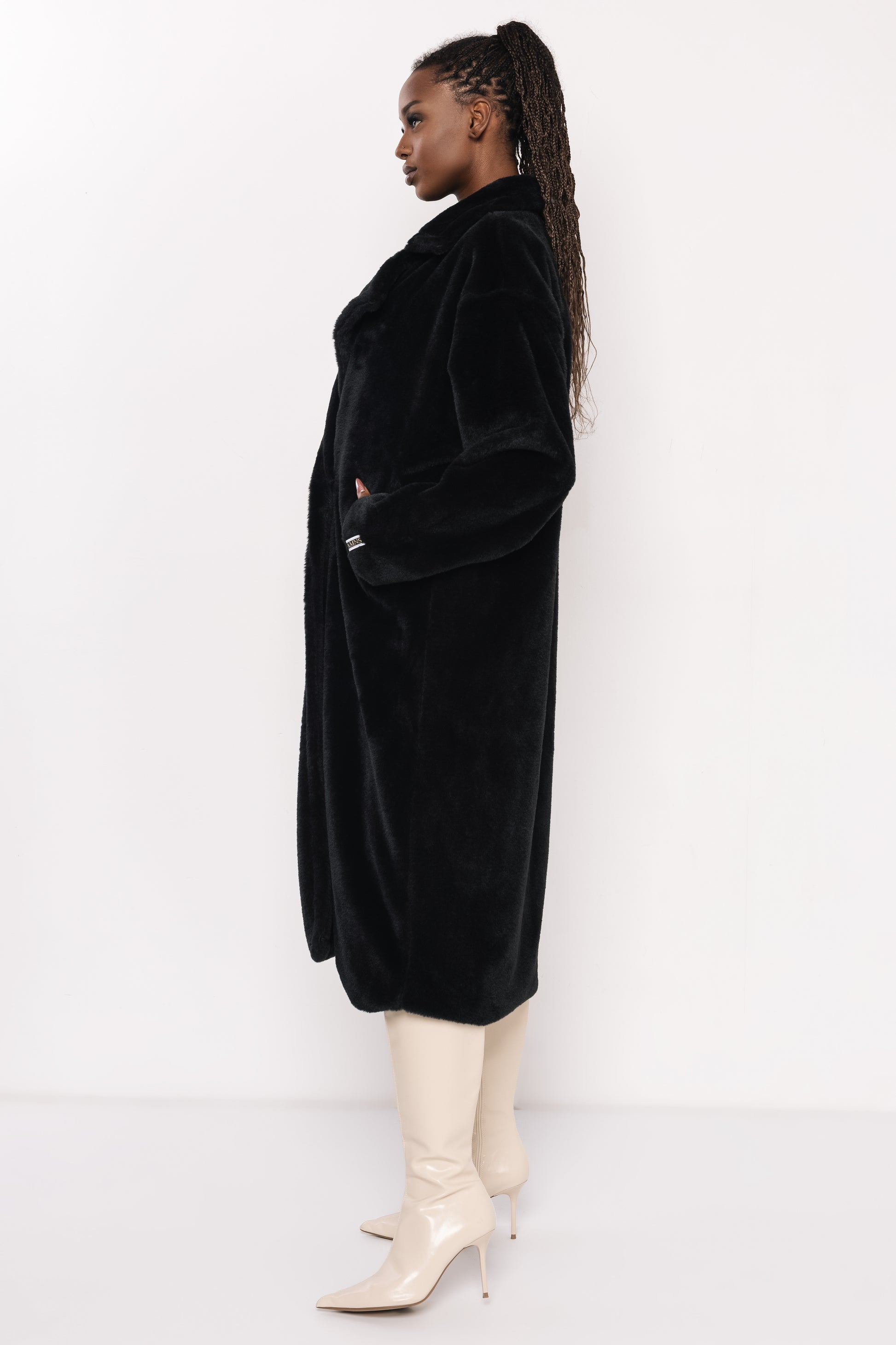 Floris szőrme hosszú kabát fekete