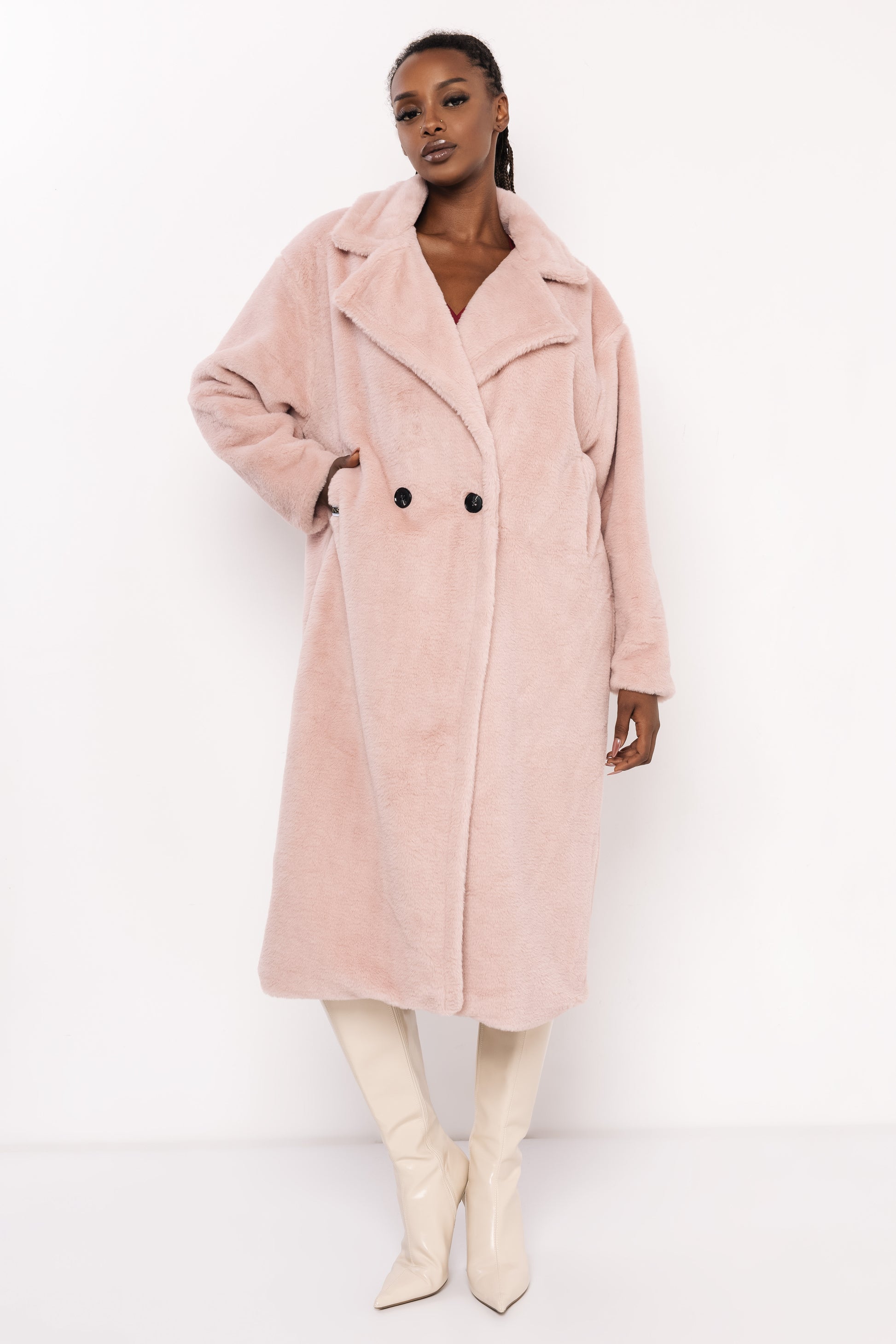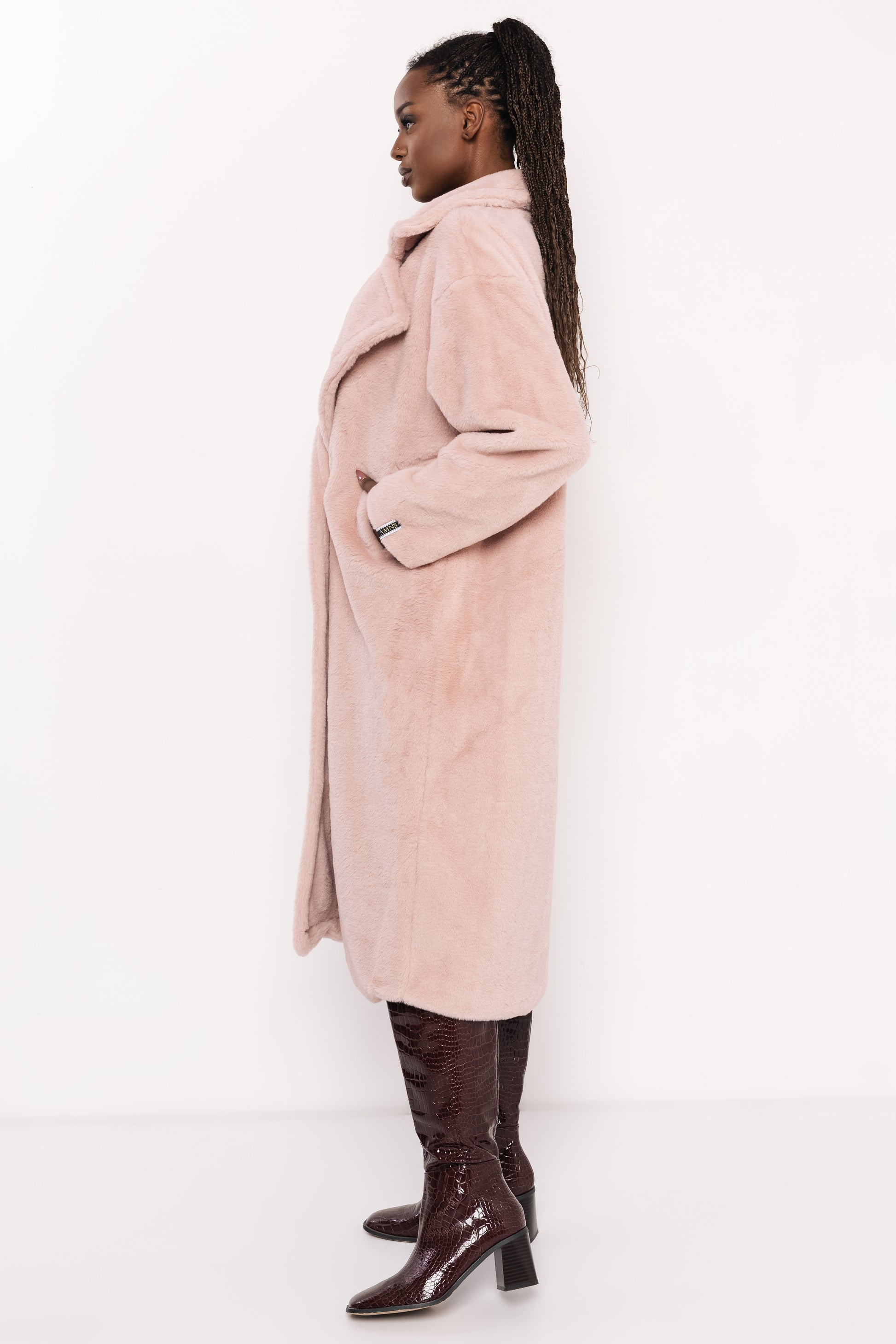 Az AMNESIA Floris szőrme kabát az igazi őszi-téli kedvenc, amely egyesíti a stílust és a kényelmet. Klasszikus, térd alá érő, egyenes szabású darab, karakteres hajtókás gallérral és oldalsó zsebekkel. A kabát prémium minőségű, puha tapintású műszőrméből készült, amely melegen tart a hideg napokon, miközben elegáns megjelenést biztosít.