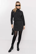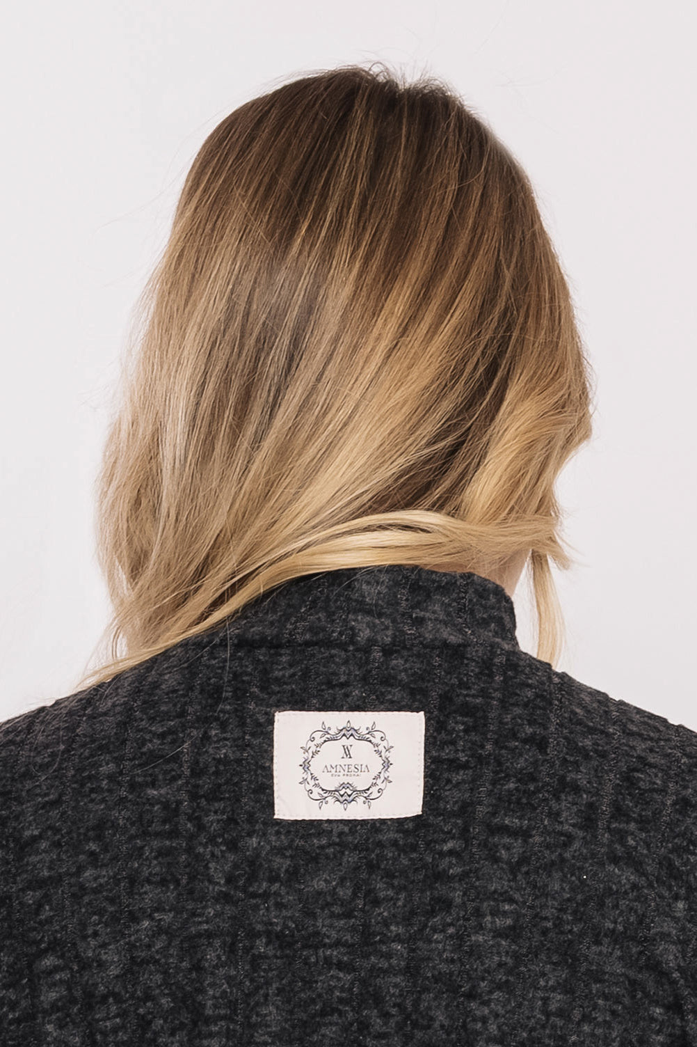 Az AMNESIA Mietta ruha bordás kötött anyagból készült, amely kényelmes viseletet biztosít és lágyan követi a test vonalait. A magasított nyakrész és az enyhén ejtett vállvonal modern, visszafogott eleganciát sugall, míg a minihossz játékos, fiatalos hatást ad. Fekete és csokibarna színben is elérhető, hogy mindig a hangulatodhoz illőt választhasd.