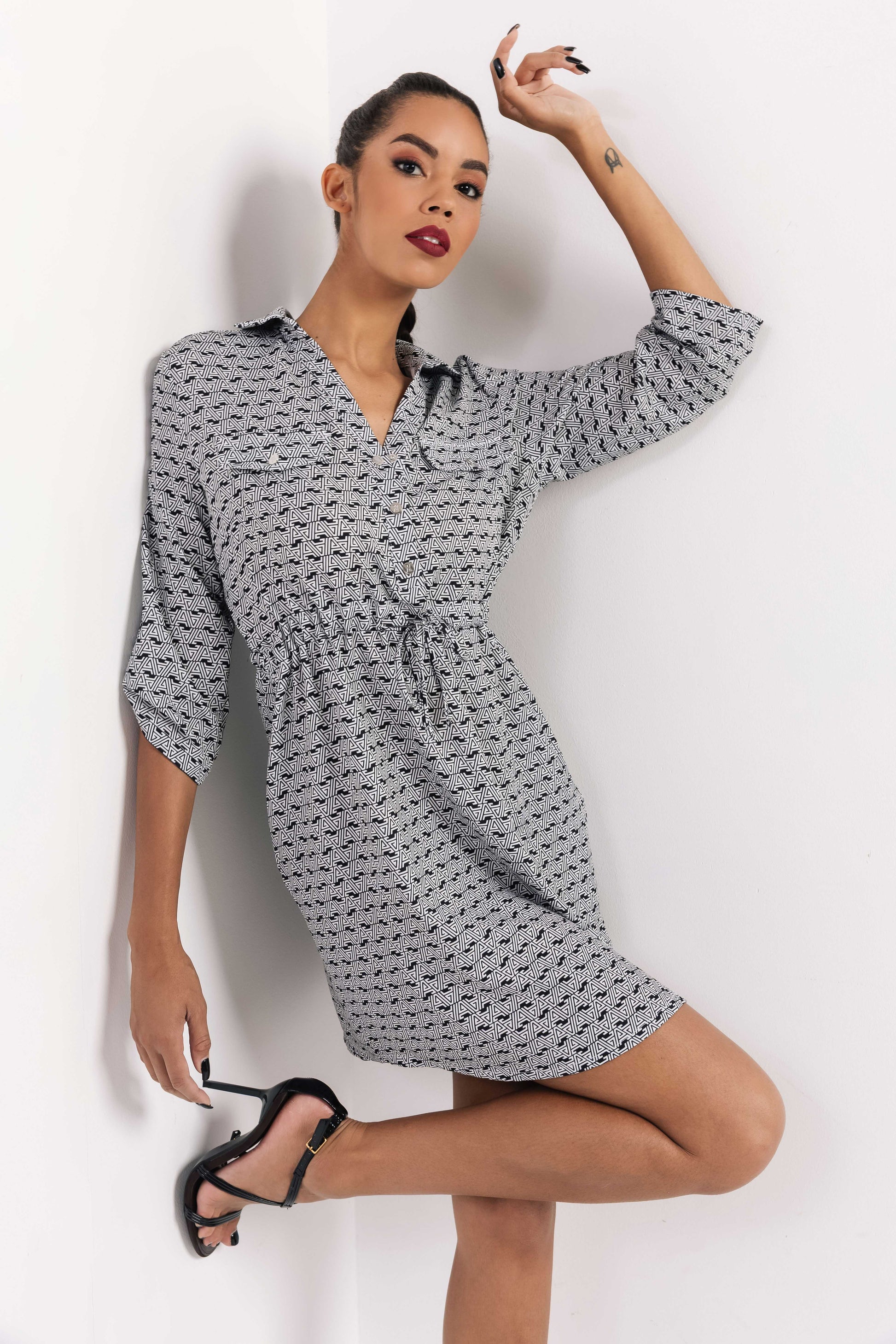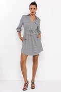 Az AMNESIA Narivo ruha modern, mégis könnyed darab, amely azonnal feldobja a mindennapi megjelenést. Különleges latina anyagának köszönhetően kényelmes és elegáns megjelenést biztosít. A fekete–ekrü „A” mintás print játékos, mégis letisztult, így egyszerre stílusos és időtálló választás.