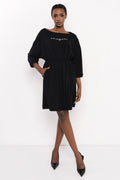 Egyméretben elérhető, fekete és camel színben, így minden gardróbba könnyedén beilleszthető. A visszafogott logóminta és a háromnegyedes ujjhossz sportosan nőies karaktert ad a tunikának. Különösen előnyös darab az őszi szezonban, hiszen variálhatósága miatt egyszerre hordható hétköznapi és elegánsabb összeállításokban.