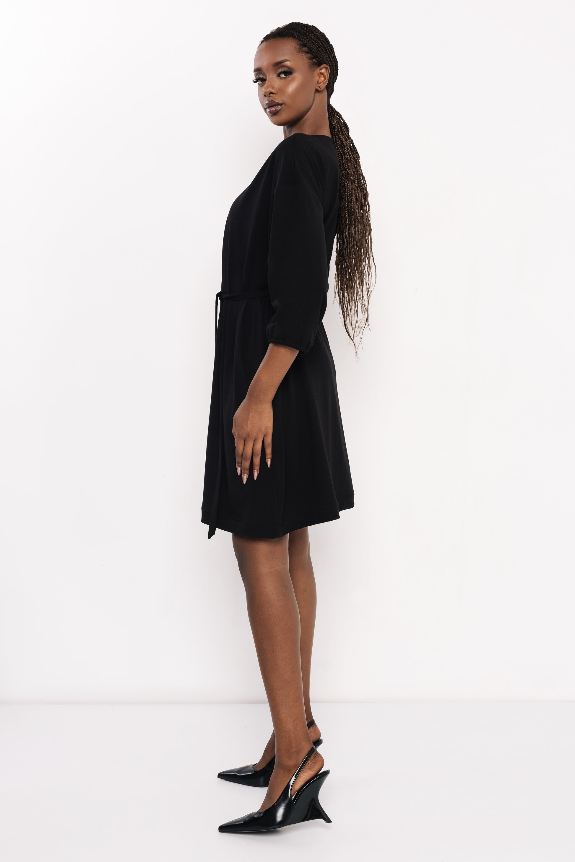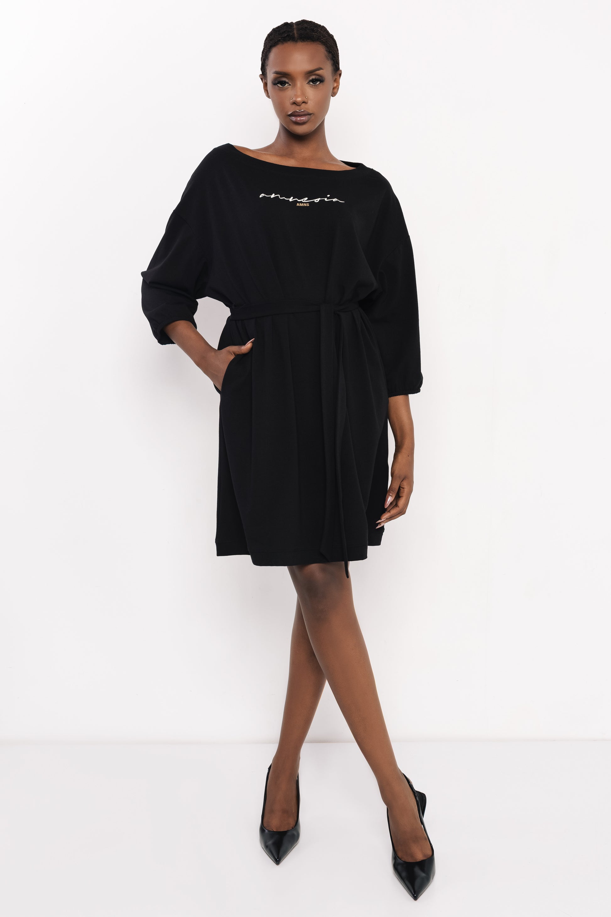 Az AMNESIA Natu tunika bővebb fazonjával és megkötős övével minden testalkaton előnyösen mutat. A pamut anyag könnyed esést biztosít, miközben egész nap komfortos viseletet nyújt. Fazonját a bő szabásvonal és a derékon megkötős öv határozza meg, amely kiemeli az alakot, míg a csónaknyak finom aszimmetriája modern, sikkes megjelenést kölcsönöz.
