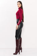 Tökéletes alapdarab blézer vagy szövetkabát alá – a bordó, fekete és mogyoró árnyalatok minden outfithez jól illenek. Stílusos választás irodai viselethez vagy esti megjelenéshez is, például az AMNESIA Cray szoknyával kombinálva.